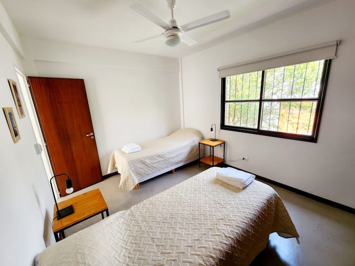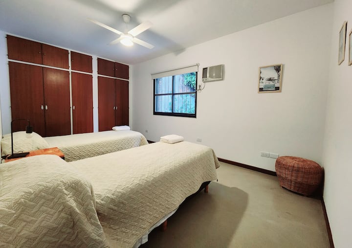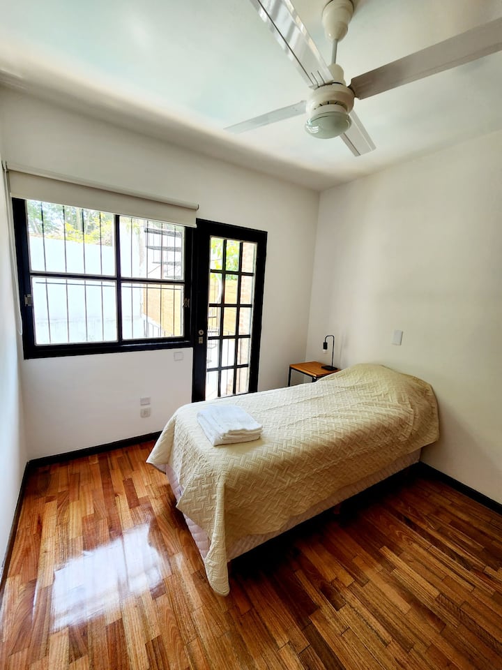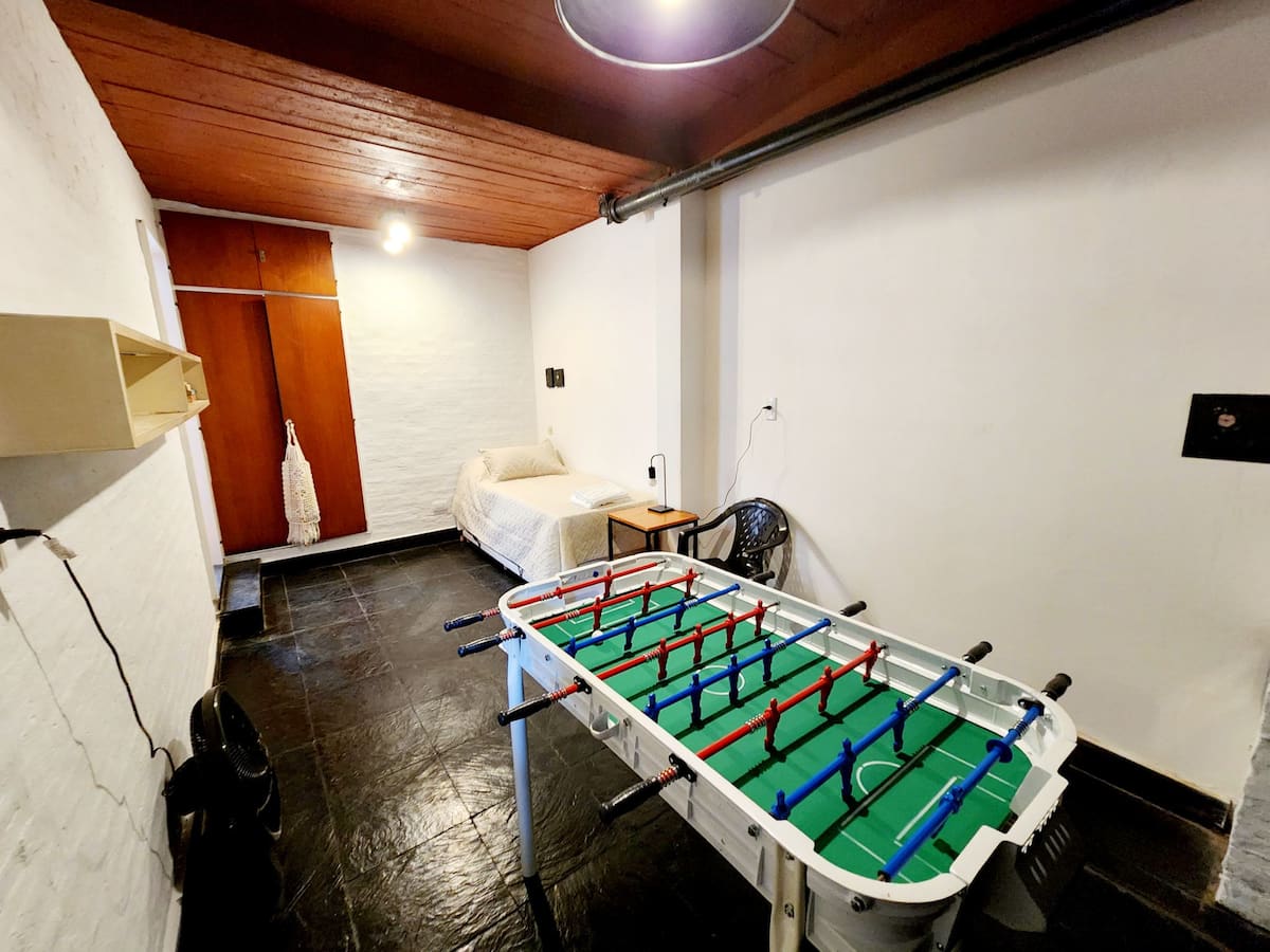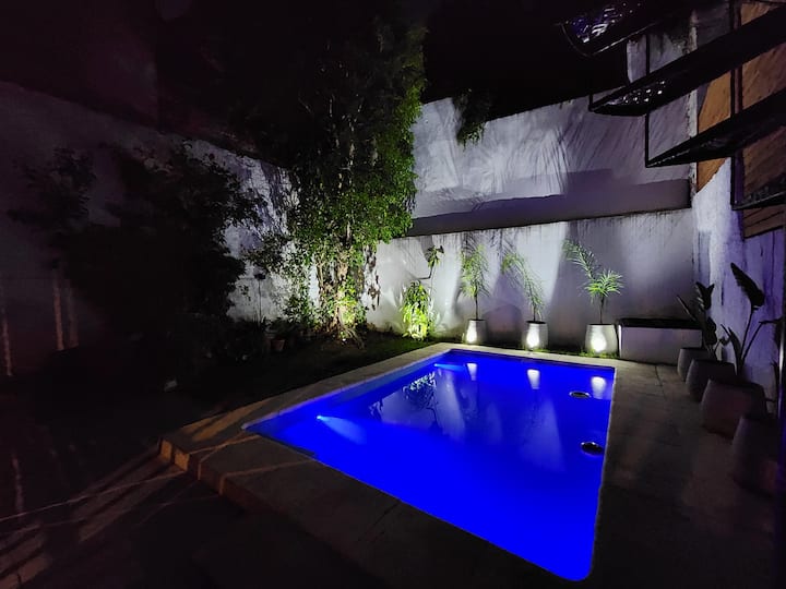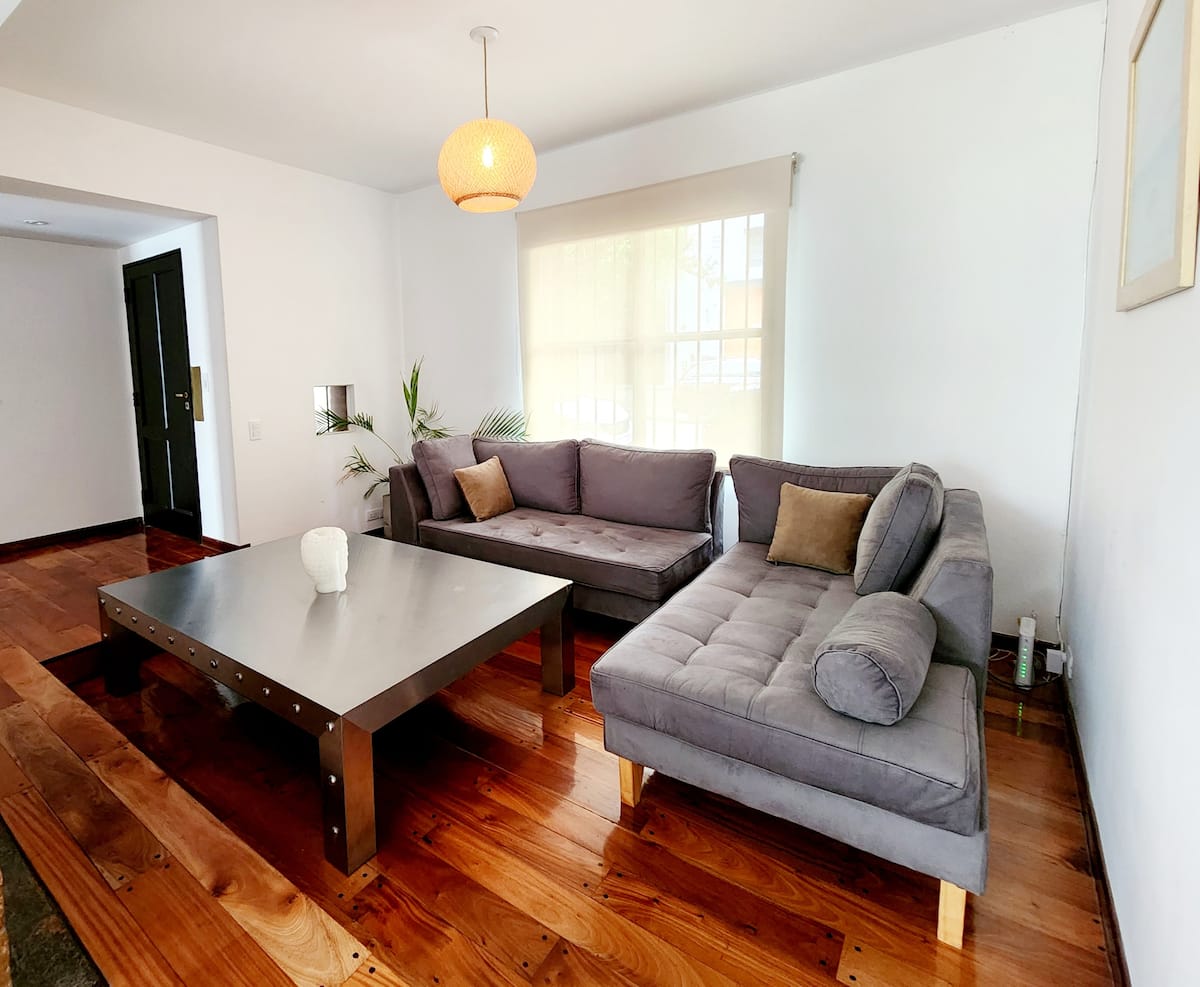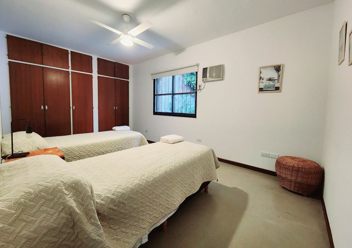 Casa tipo sobrado em Palermo Soho, com piscina, jardim e pátio. Tem 5 dormitórios, 4 banheiros e capacidade para 10 pessoas. Inclui sala com TV a cabo, área de jantar com mesa grande, cozinha e um dormitório no térreo com sala de jogos. O imóvel tem terraço e área de churrasco (BBQ); a piscina tem bomba automática. Não é adequada para festas ou eventos, nem para música alta. Devem ser respeitados horários de silêncio em dias de semana das 23:00 às 8:00 e em fins de semana ou feriados, sem ultrap