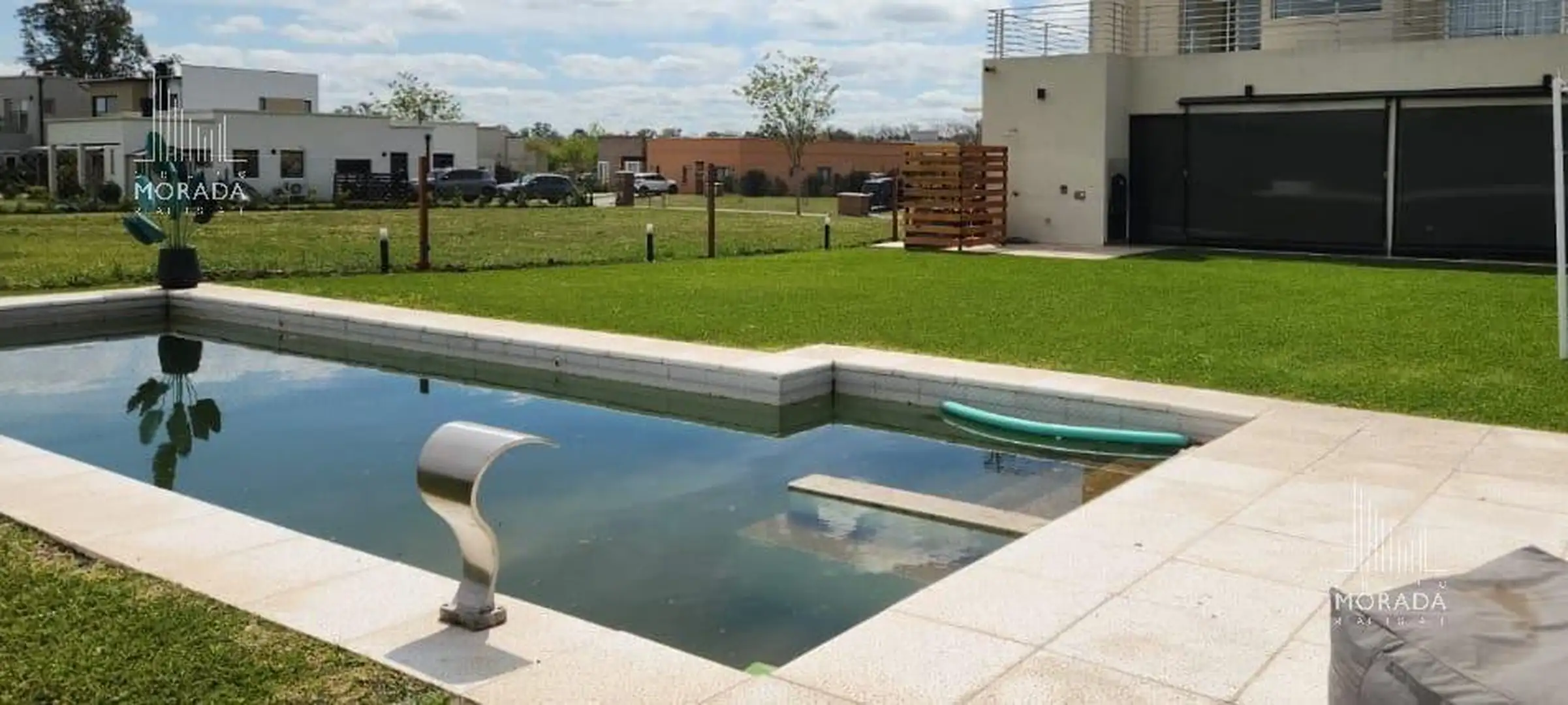 Casa nova em bairro privado com 5 quartos, piso térreo e dois andares. No térreo: sala de estar e jantar, lavabo, playroom com smart TV de 55 polegadas, ampla cozinha, lavanderia e galerias, sendo uma delas com área de estar e a outra com churrasqueira grande. Há jardim com piscina, espreguiçadeiras, fogonero e cama elástica, além de garagem coberta para 2 carros. No andar superior: 3 dormitórios, incluindo 1 suíte com smart TV, grande closet e banheiro com ducha, pia dupla e hidromassagem; os o
