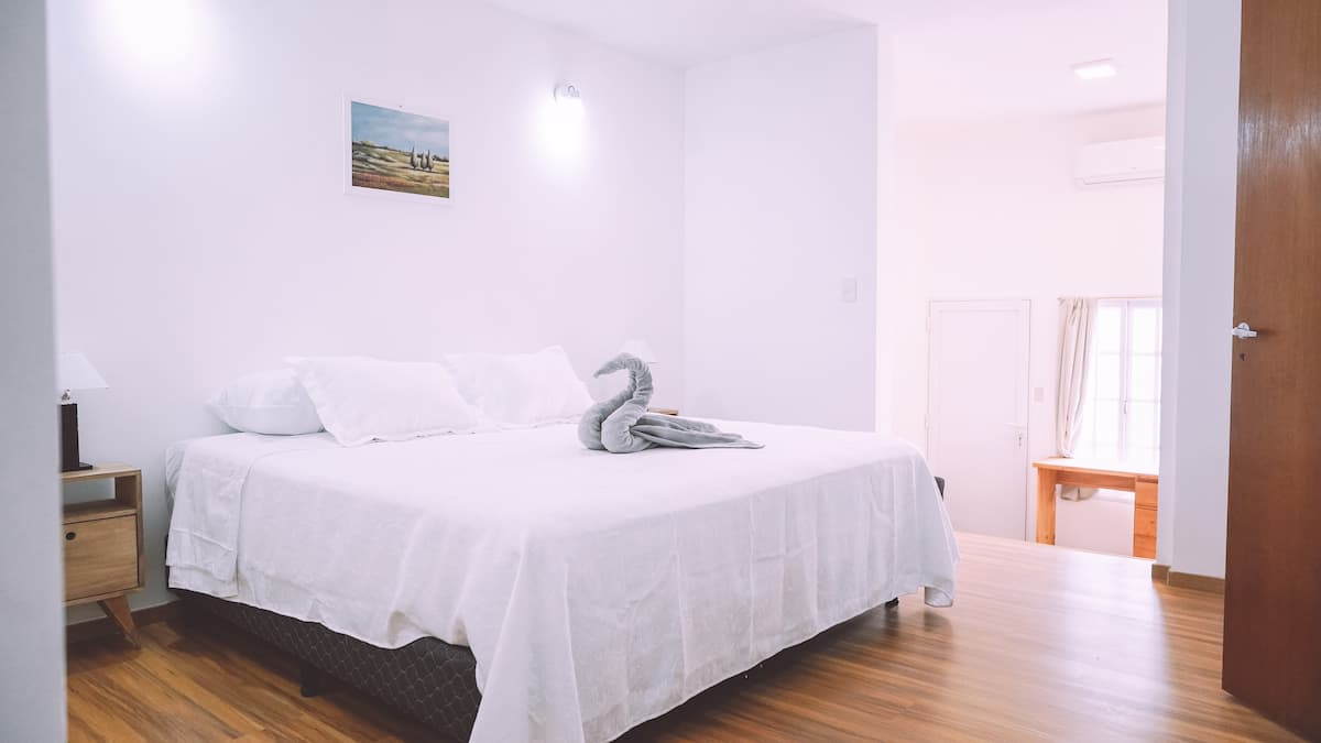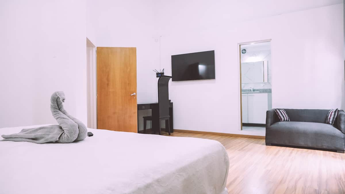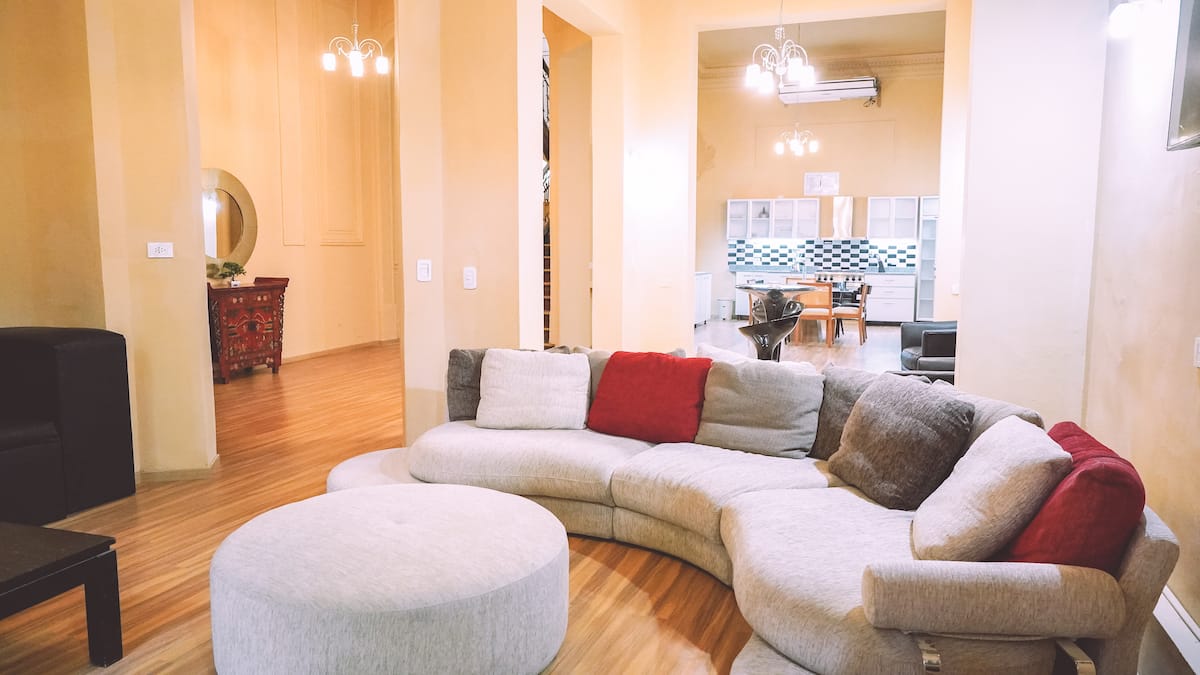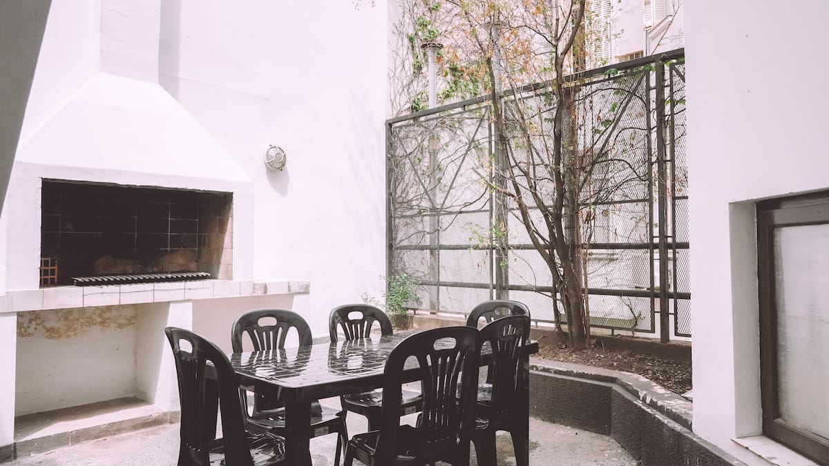 Mansão em Recoleta com 680 m² e 5 dormitórios. Há suítes com banheiros privativos, ar-condicionado individual e TVs, além de um quarto infantil com quatro camas tipo beliche. A casa tem área externa com pátio e churrasqueira, e o andar de baixo conta com área de bar com cozinha comercial, além de dois salões com lareiras a gás e lavanderia; a área de spa reúne sauna, jacuzzi e mesa de massagem. O uso do bar do porão para eventos comporta até 60 pessoas mediante prévio arranjo e autorização; exis