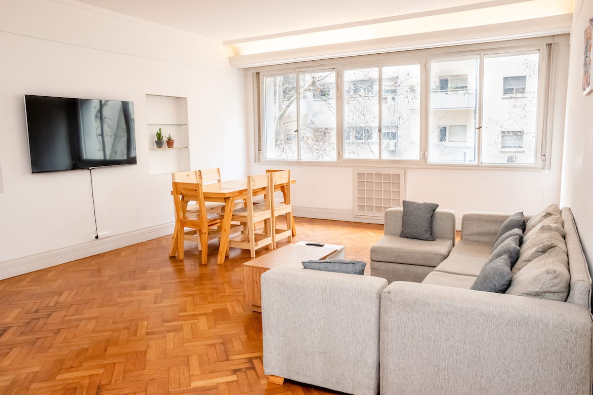 Apartamento grande com 185 m² (2000 pés quadrados) com 5 quartos e 3 banheiros. Inclui serviço de limpeza semanal e WiFi de 500 MB. A acomodação é indicada apenas para estudantes Erasmus ou internacionais.