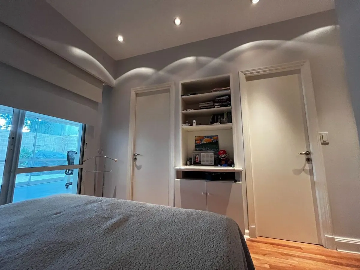 Apartamento com 5 quartos, 230 m², no primeiro piso, de frente para a Plaza Barrientos, em Recoleta. Possui living, sala de jantar, cozinha separada com refeitório diário de duplo acesso, lavadero, quarto de serviço e hall privativo. Há 3 banheiros completos e lavabo, além de varanda com vista para a praça e pátio, com academia ou playroom, garagem (cobertura no anúncio) e entradas separadas por elevador principal e elevador de serviço.