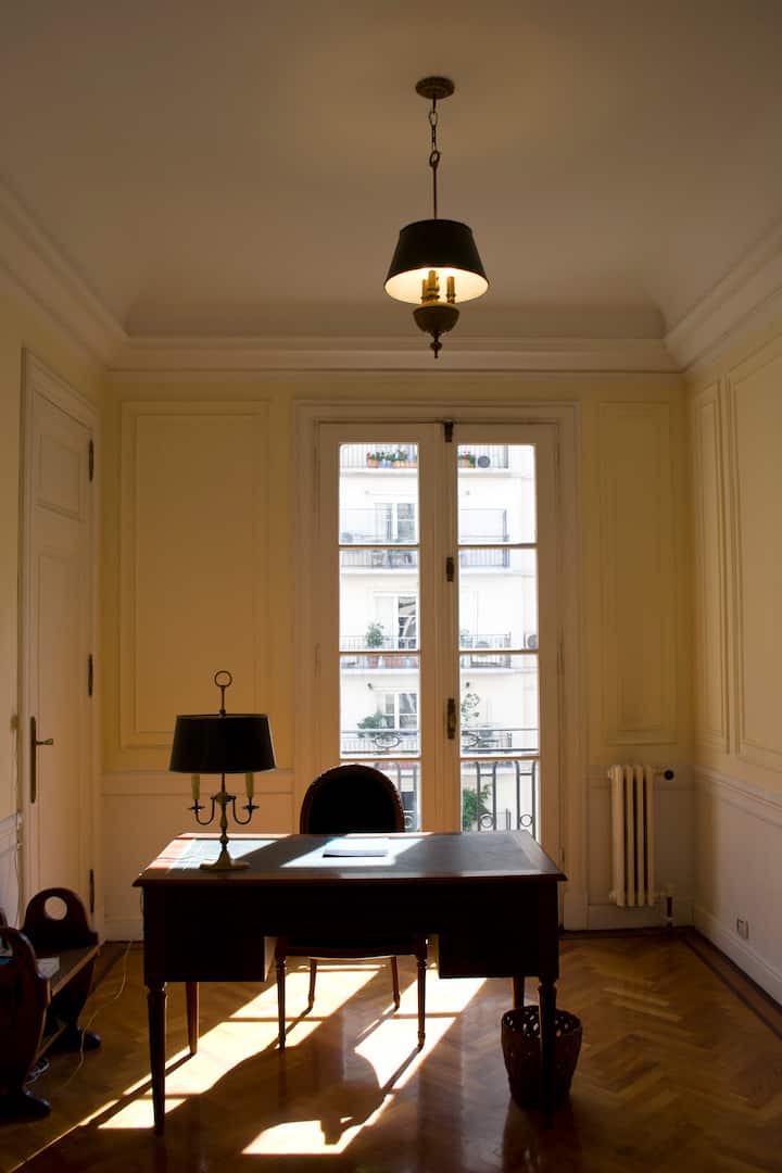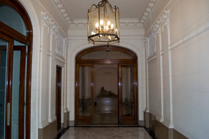 Apartamento em Recoleta, Buenos Aires, com 5 quartos. A localização fica próxima ao Cementerio de la Recoleta, à Basilica del Pilar e à Av. Alvear, com acesso fácil ao transporte público. Há ônibus 10, 17, 37, 59, 67, 102, 110, 124 e 130, além do metrô: Linha D, estações Av. Callao e Córdoba, e Linha H, estações Las Heras e Pueyrredón ou Faculdade de Direito.