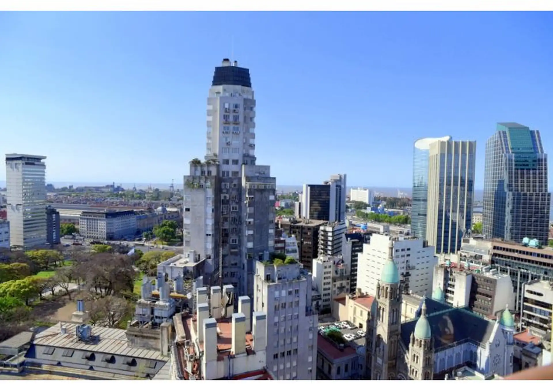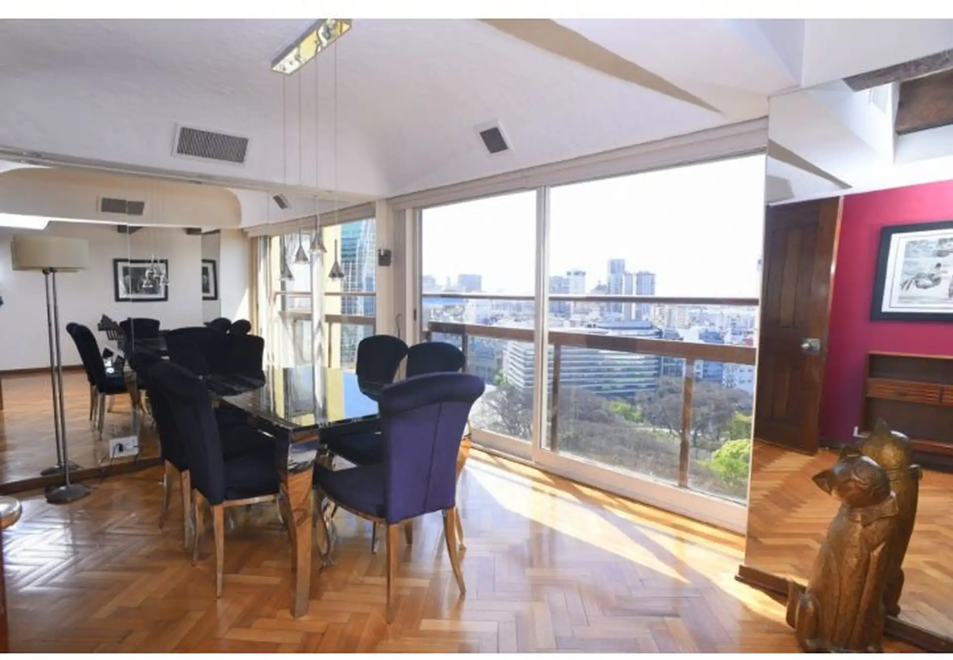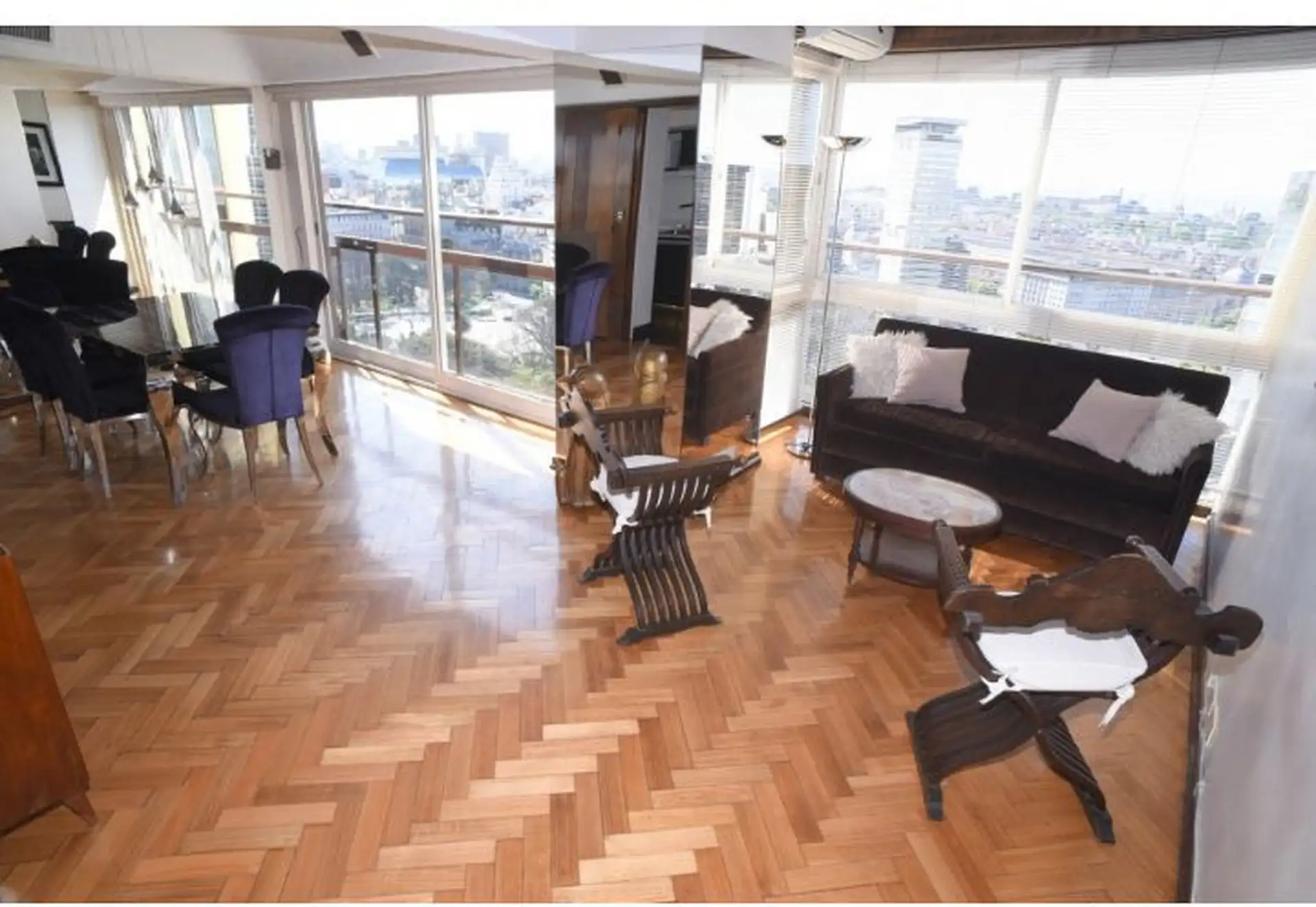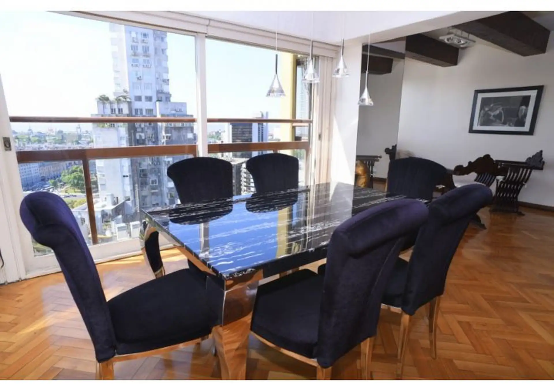 Apartamento tipo cobertura (penthouse) em dois andares, nos pisos 22 e 23, com 230 m². Fica em torre de frente ao Edificio Kavanagh, a cerca de 50 m da Plaza San Martín e a alguns quarteirões da Av. Florida. São 5 dormitórios, com 3 suítes e dependência de serviço, além de 2 salas de jantar integradas e terraço privativo coberto de 50 m² com piscina particular. O imóvel é mobiliado e equipado com ar-condicionado, aquecimento por piso (losa radiante) e hidromassagem, com vaga de garagem e despesa