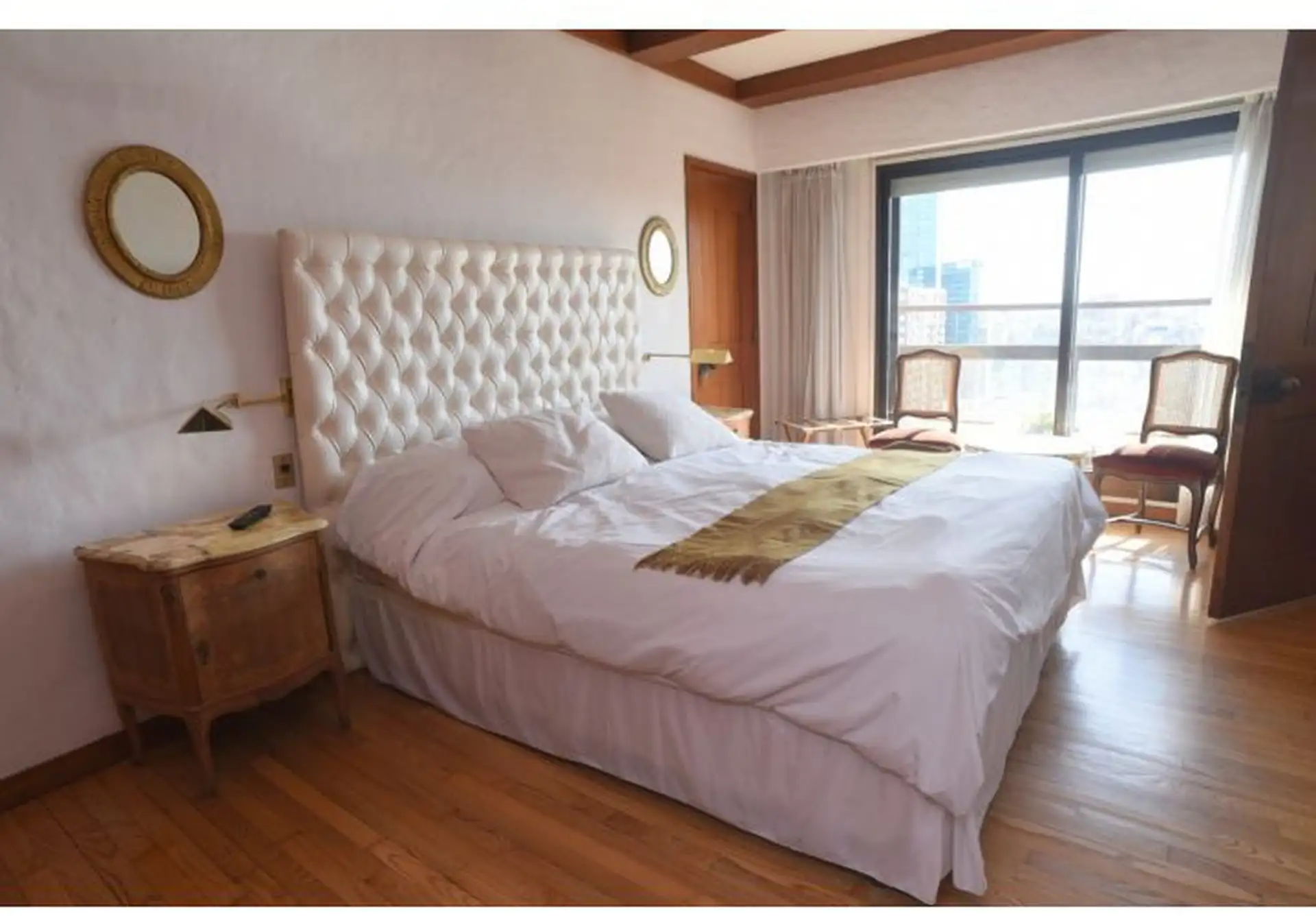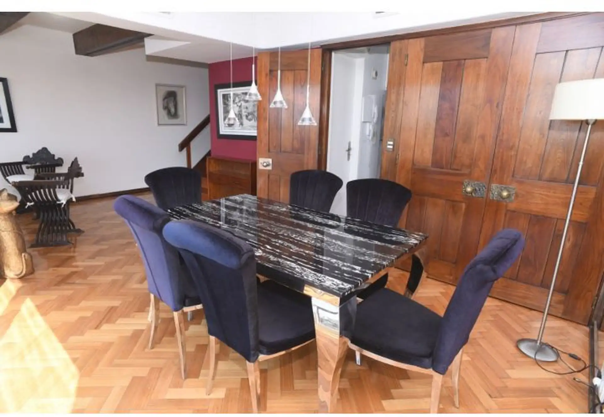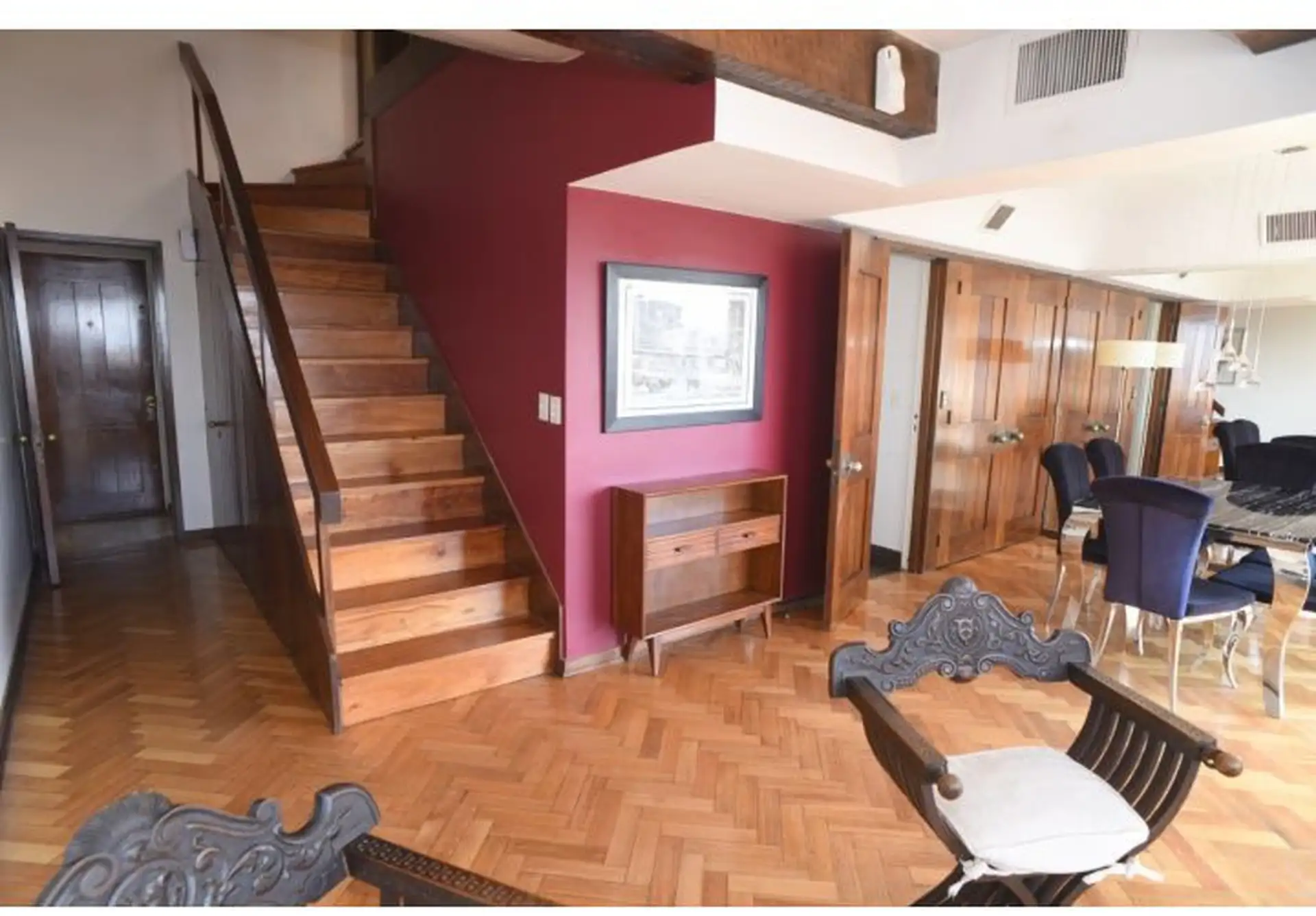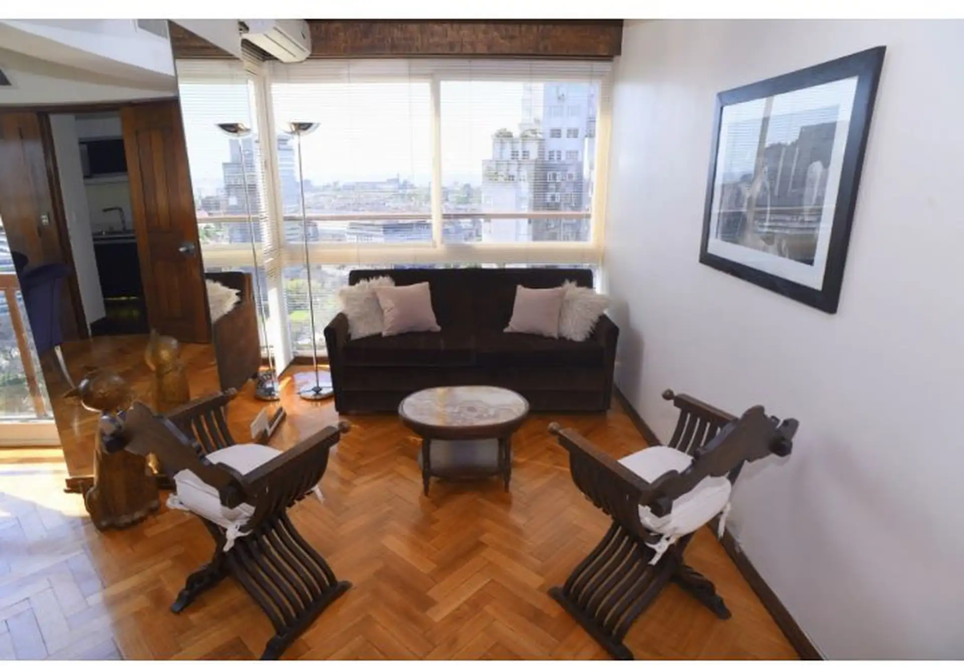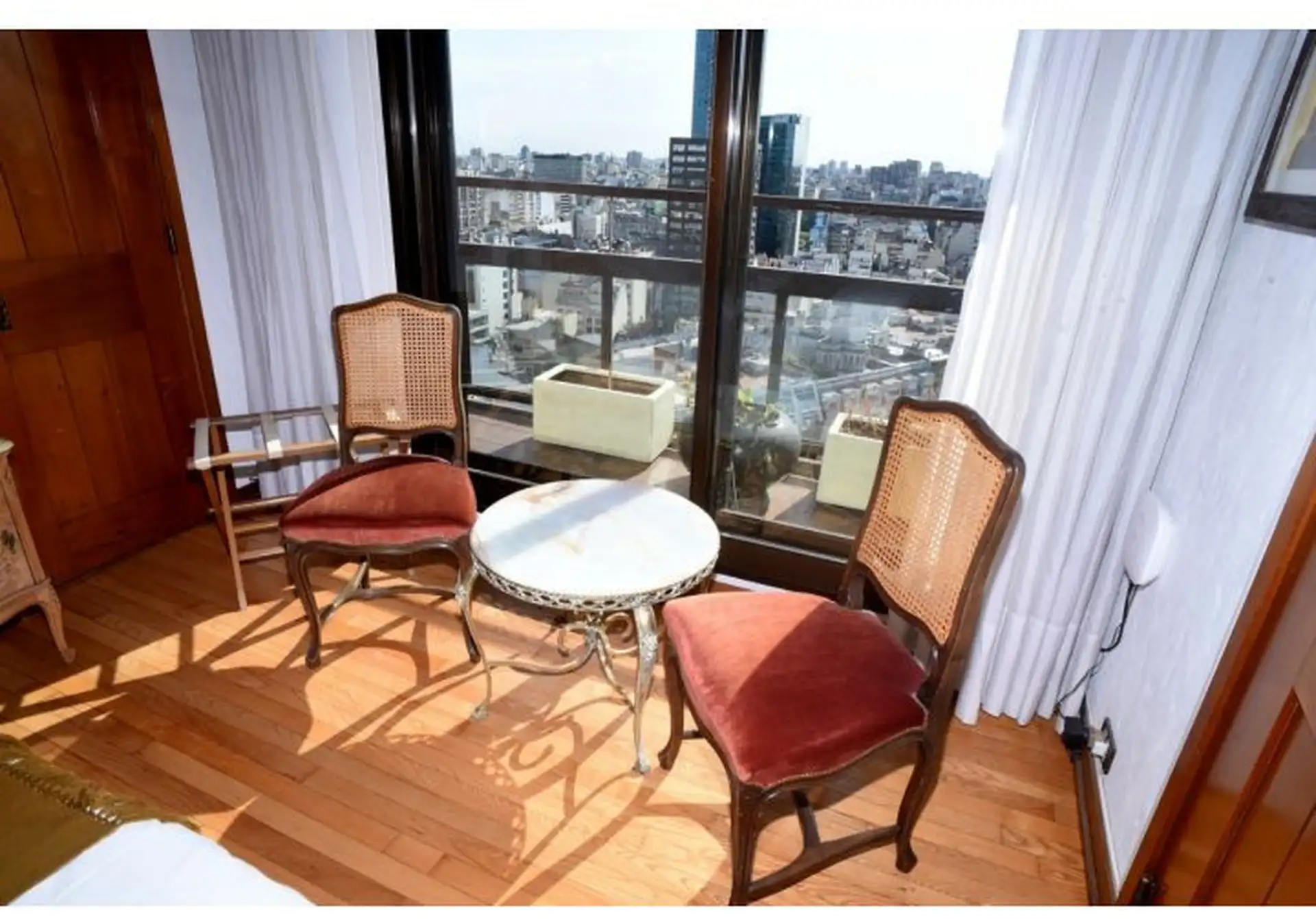 Apartamento tipo cobertura (penthouse) em dois andares, nos pisos 22 e 23, com 230 m². Fica em torre de frente ao Edificio Kavanagh, a cerca de 50 m da Plaza San Martín e a alguns quarteirões da Av. Florida. São 5 dormitórios, com 3 suítes e dependência de serviço, além de 2 salas de jantar integradas e terraço privativo coberto de 50 m² com piscina particular. O imóvel é mobiliado e equipado com ar-condicionado, aquecimento por piso (losa radiante) e hidromassagem, com vaga de garagem e despesa