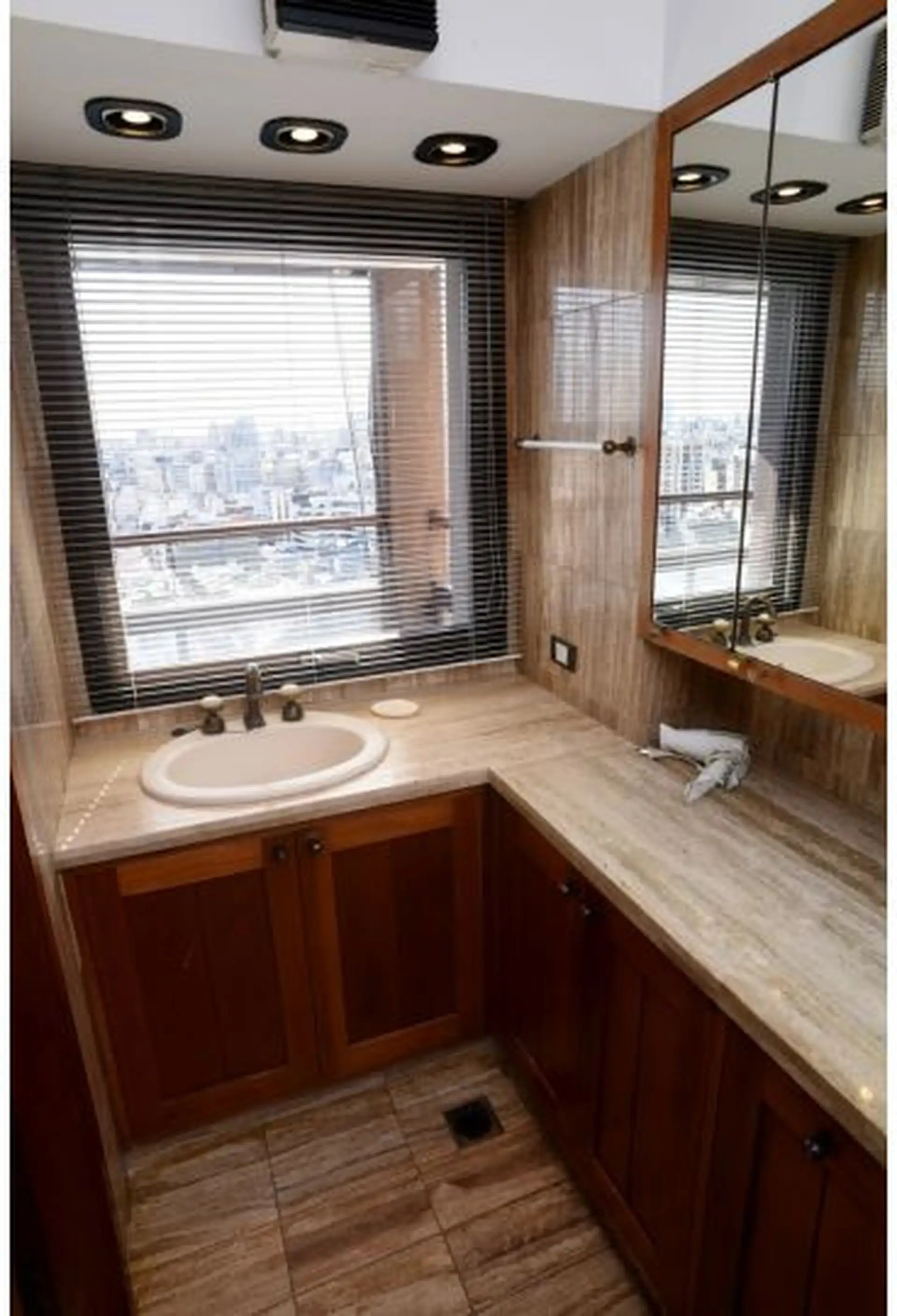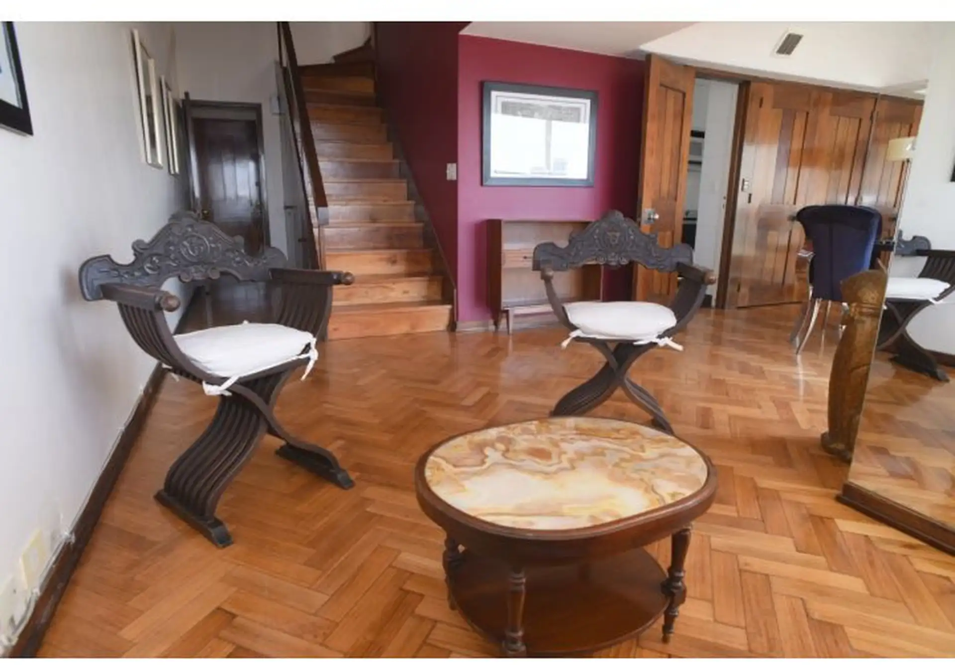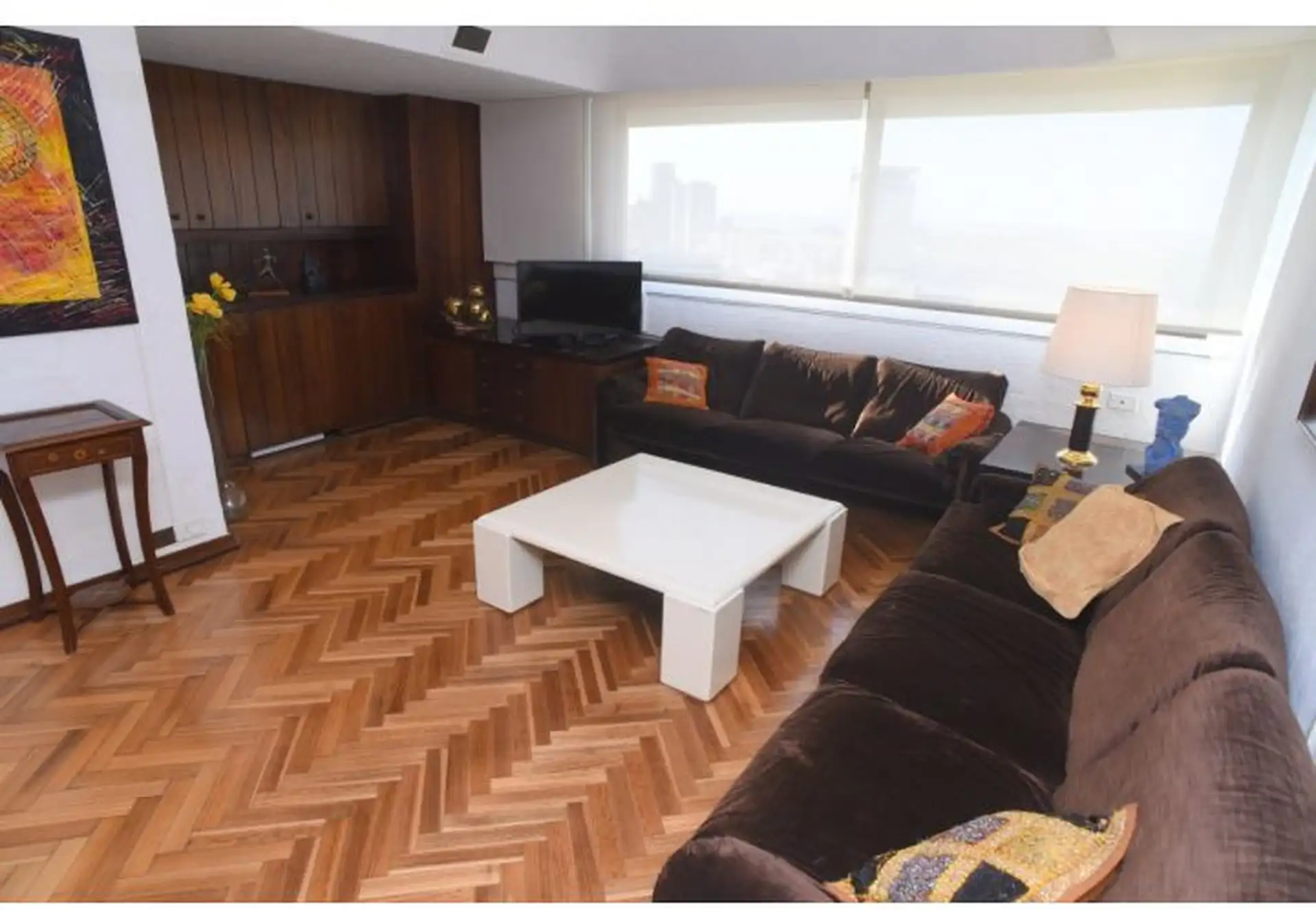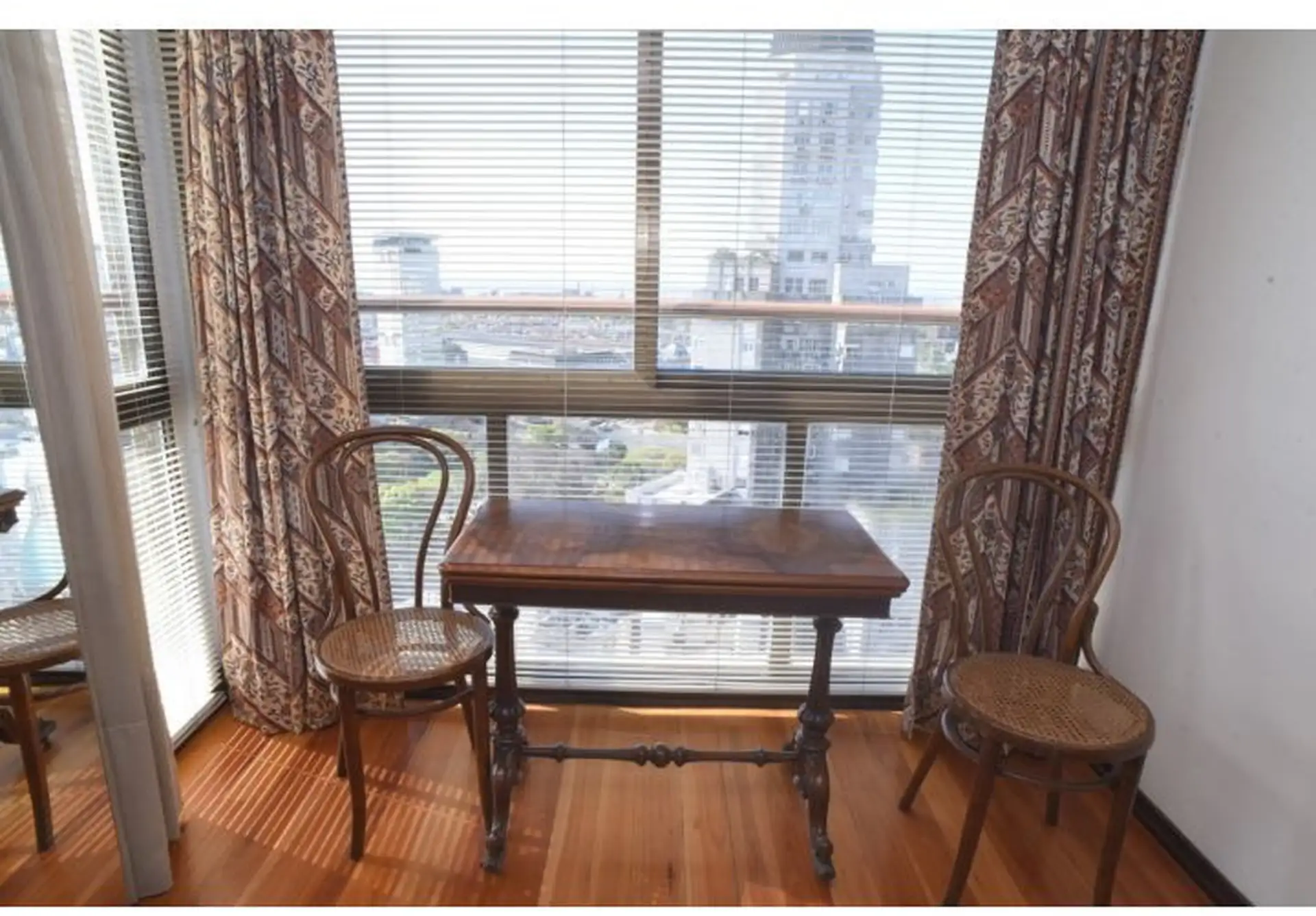 Apartamento tipo cobertura (penthouse) em dois andares, nos pisos 22 e 23, com 230 m². Fica em torre de frente ao Edificio Kavanagh, a cerca de 50 m da Plaza San Martín e a alguns quarteirões da Av. Florida. São 5 dormitórios, com 3 suítes e dependência de serviço, além de 2 salas de jantar integradas e terraço privativo coberto de 50 m² com piscina particular. O imóvel é mobiliado e equipado com ar-condicionado, aquecimento por piso (losa radiante) e hidromassagem, com vaga de garagem e despesa