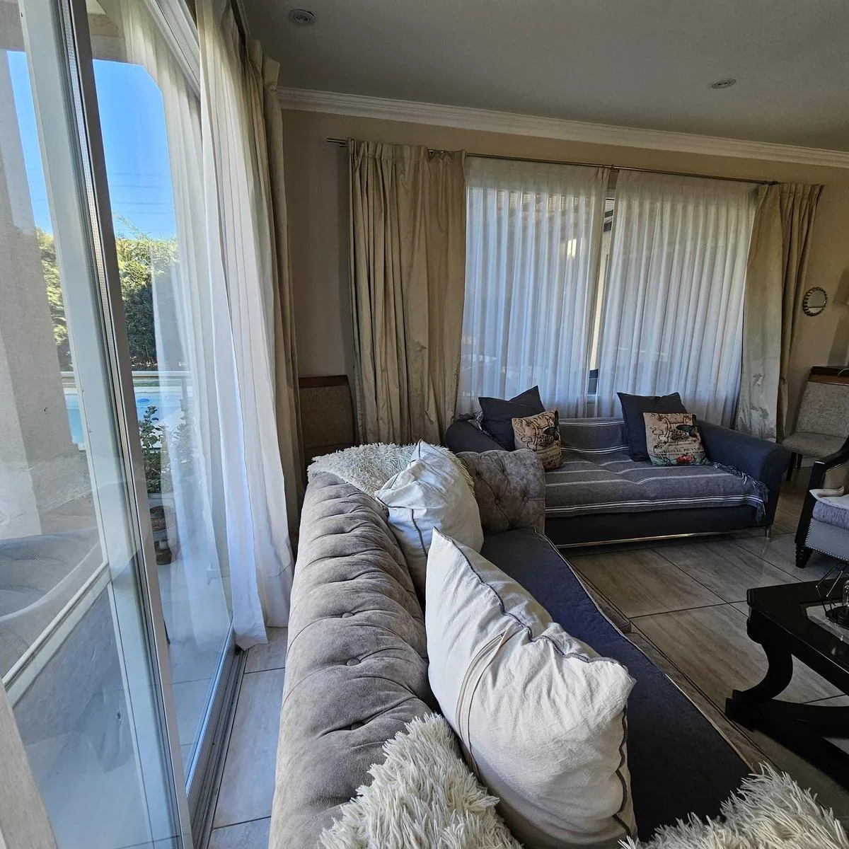 Casa em Las Tipas Nordelta, Tigre, em lote interno com frente para um bulevar. Construção em 2 plantas, mobiliada, com 5 dormitórios. No térreo há amplo hall de entrada, escritório, cozinha e living; inclui quarto de serviço com banheiro e área de lavanderia. No andar superior, três dormitórios com varanda compartilham 1 banheiro, além da master suite com grande closet, banheiro compartimentado e sub-varanda com vista para o jardim. No exterior há galeria com área de churrasco e piscina com cerc