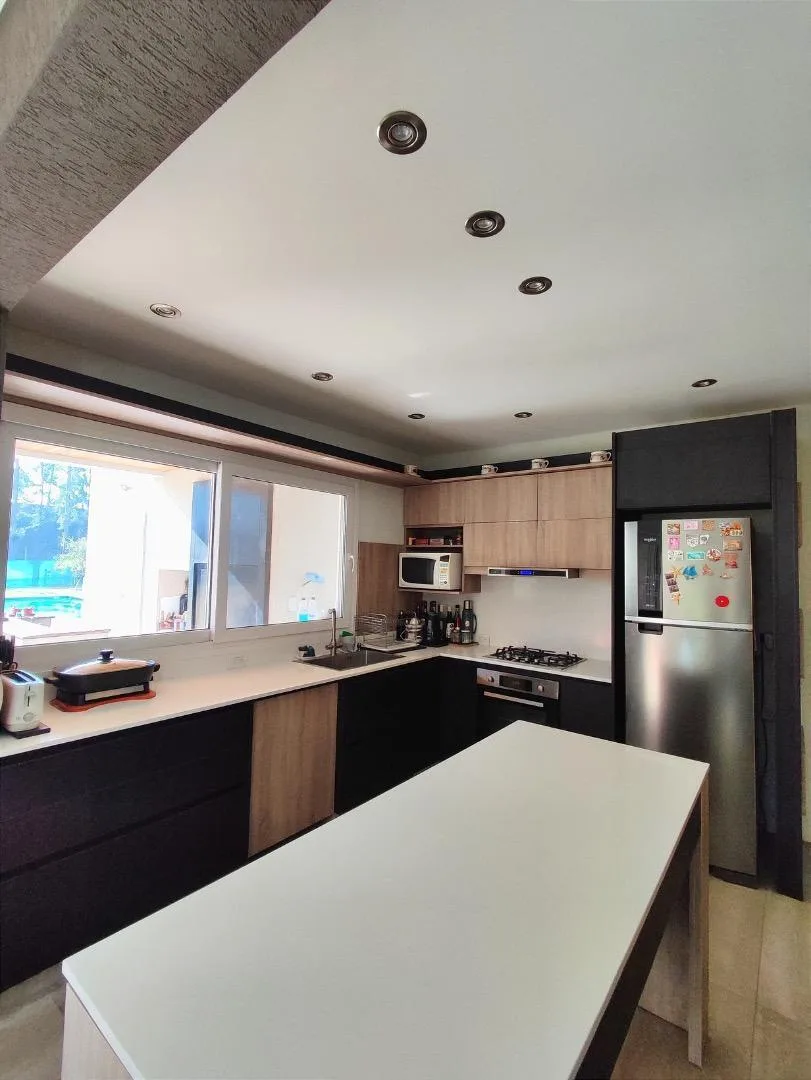 Casa em dois andares em Santa Teresa, Tigre. Tem sala de estar e jantar integradas, cozinha semi separada com amplo espaço de armazenamento, dependência, lavanderia, lavabo e escritório ou dormitório para hóspedes, além de um segundo dormitório no andar térreo. No andar superior ficam três dormitórios, um deles em suíte, e banheiro completo com banheira em compartimentação. Possui galeria coberta com área de churrasco (parrilla), jardim grande e piscina.