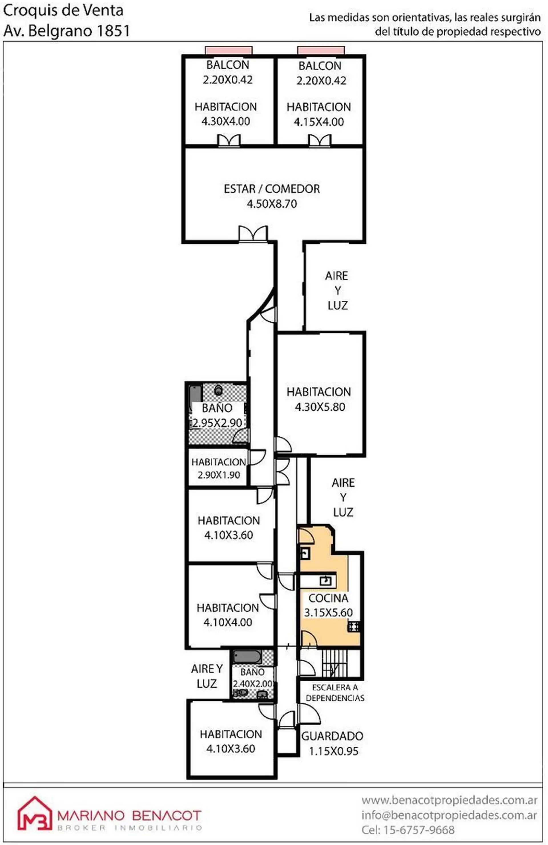Apartamento no 2º andar, com elevador, em prédio de 3 andares, em Balvanera. São 322 m² totais, 239 m² cobertos e 83 m² descobertos, com 8 ambientes e varanda francesa de frente para a rua. Possui living e sala de jantar de grande porte com 2 quartos de frente, um segundo living/sala de jantar para reuniões, 6 quartos no total, 2 banheiros completos e 1 lavabo, cozinha completa, área de serviço e churrasqueira. Há piso de parquet e portero visor. Valores informados: ABL mensal de ARS 110.000, co