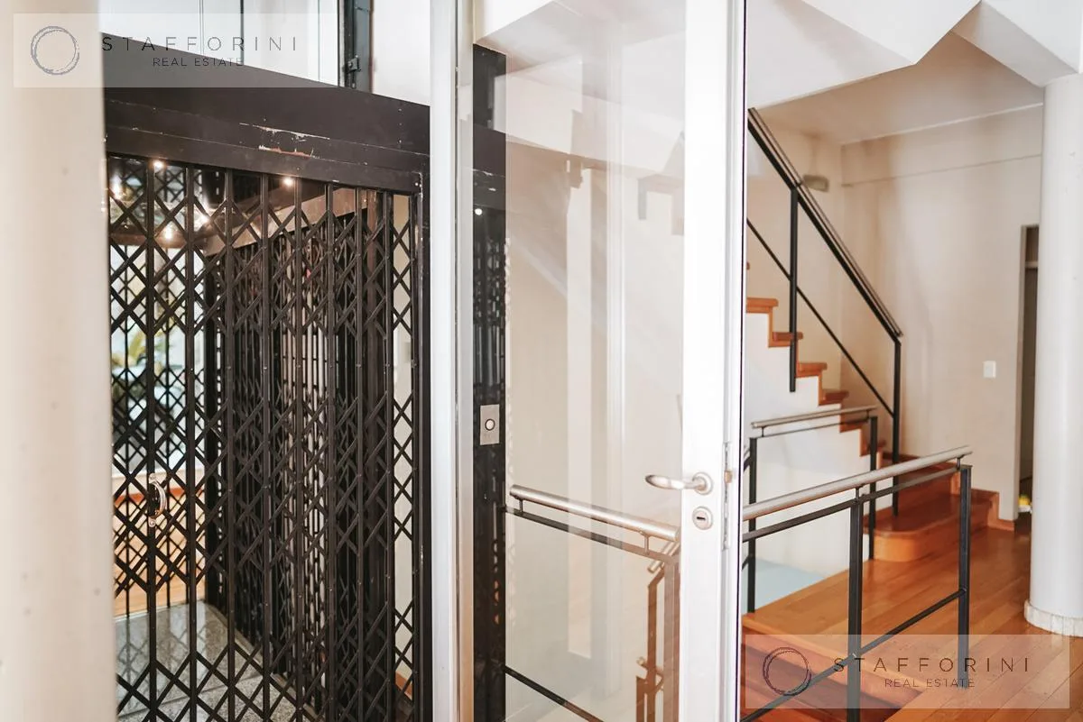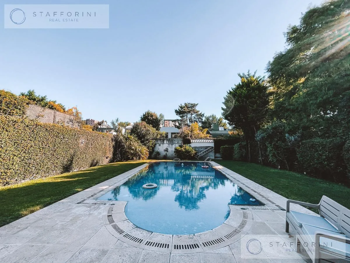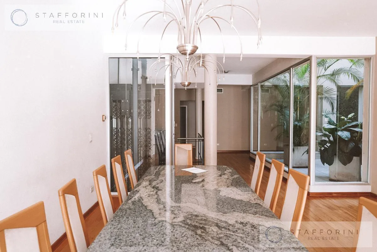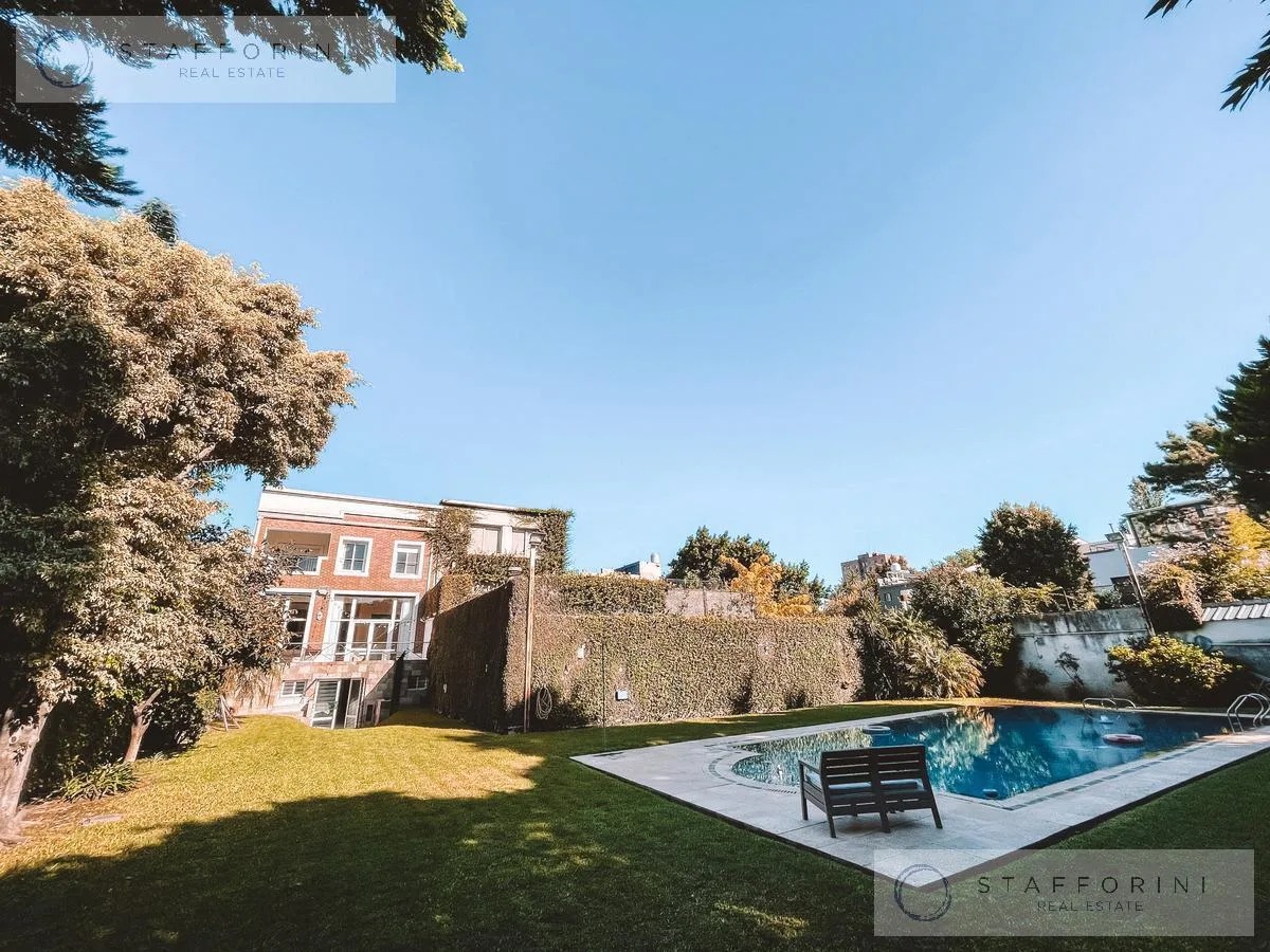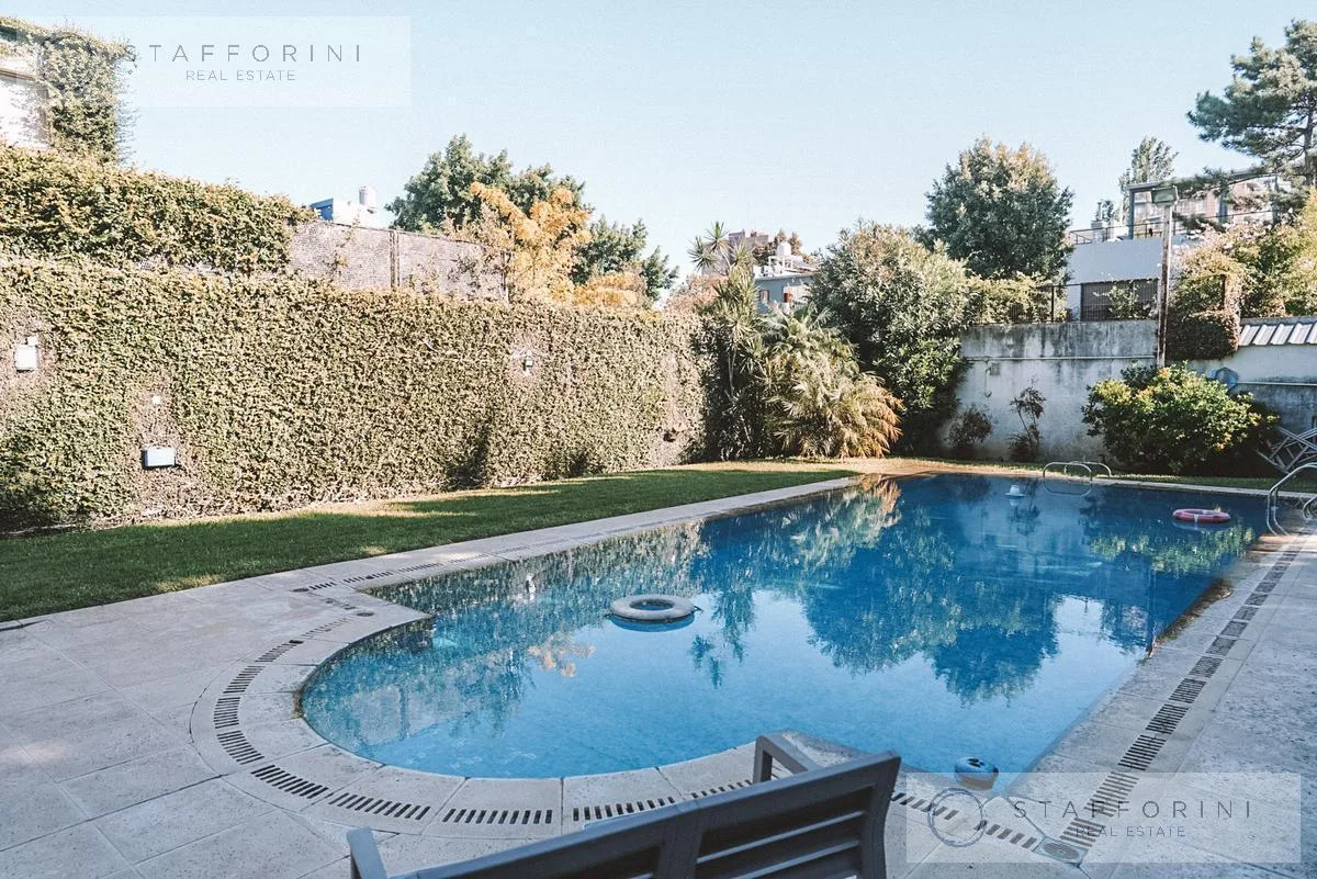 Casa de 7 ambientes em Belgrano Chico, com 600 m² cobertos, 1130 m² totais e terreno de 800 m², distribuída em 3 plantas com elevador. Conta com 6 dormitórios, além de dependência completa de serviço, garagem coberta para 5 carros com portões automáticos, lavanderia e saída para o jardim. A área social inclui salão com lareira e envidraçados do piso ao teto ligados à galeria e ao jardim; no andar superior há 4 dormitórios, sendo 1 suíte com pé-direito duplo, closet, jacuzzi, ducha e sauna, além