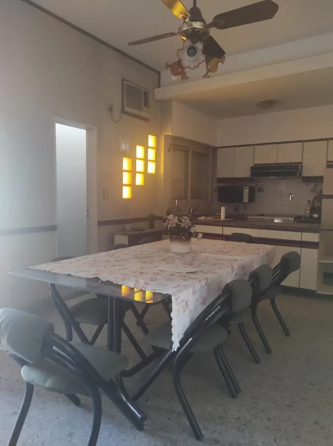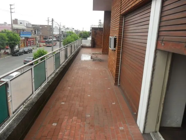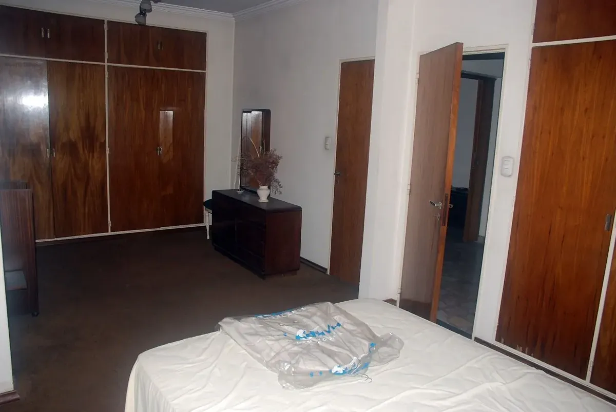 Apartamento no 1º andar, sobre Av. Mosconi al 900, com cozinha com armário sob a bancada, despensa e fogão. Sala de estar e jantar com janela voltada para a frente, 6 dormitórios e 2 banheiros. Inclui terraço e pátio de 200 m². Contrato de 3 anos, com 1 mês de adiantamento e 1 mês de depósito. A comissão imobiliária de 4% e o seguro contra incêndio ficam a cargo do locatário.