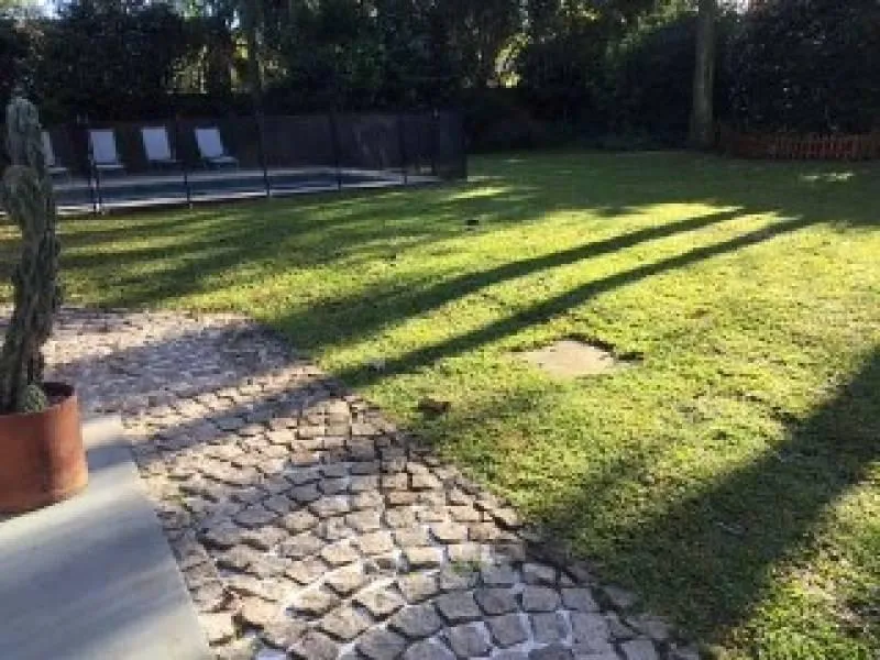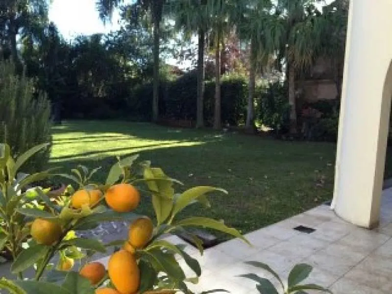 Casa em Beccar em 3 andares, com 5 dormitórios. No térreo há entrada principal, hall, play com lareira e vista para o jardim, sala e jantar em desníveis, cozinha grande com refeitório diário, entrada de serviço, lavanderia independente e dependência independente. O imóvel tem piscina com cerca revestida com mosaicos, galeria com toldos automatizados e grande jardim. No 2º andar há hall com possibilidade de escritório ou play, suíte principal com varanda, grande closet e área para vestir, banheir