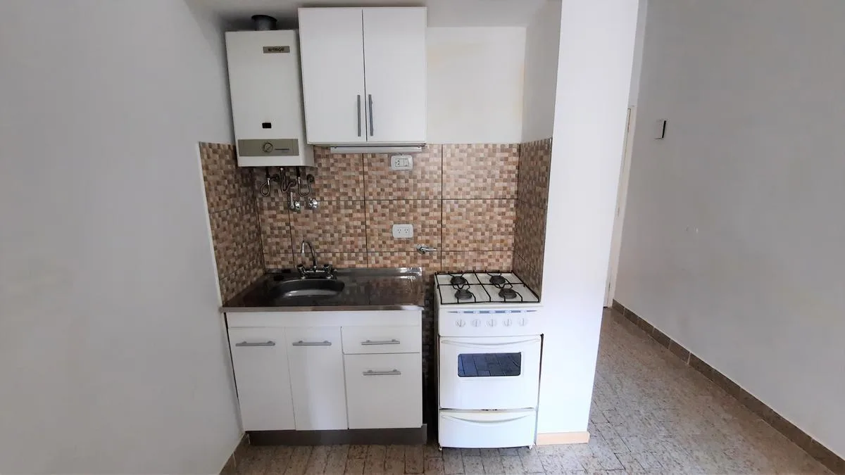 Kitnet (monoambiente) reformada com 13 m² no 2º andar, com acesso por escada, em prédio de 2 andares. Cozinha americana e banheiro com bidê e ducha. Cozinha e forno a gás, com aquecedor elétrico de água. O condomínio é baixo; contrato de 2 anos com reajustes trimestrais pelo IPC. Depósito de $ 440.000.