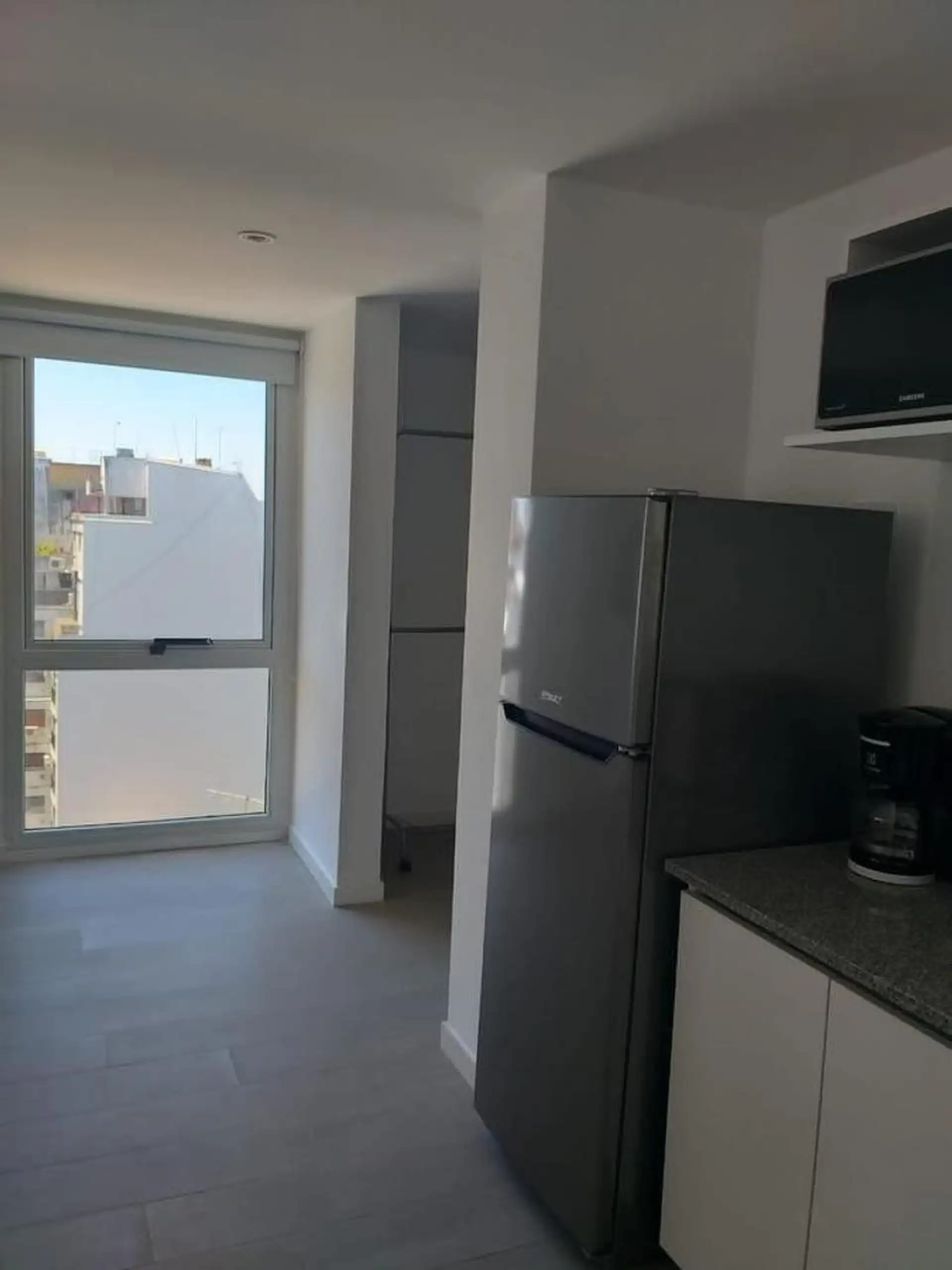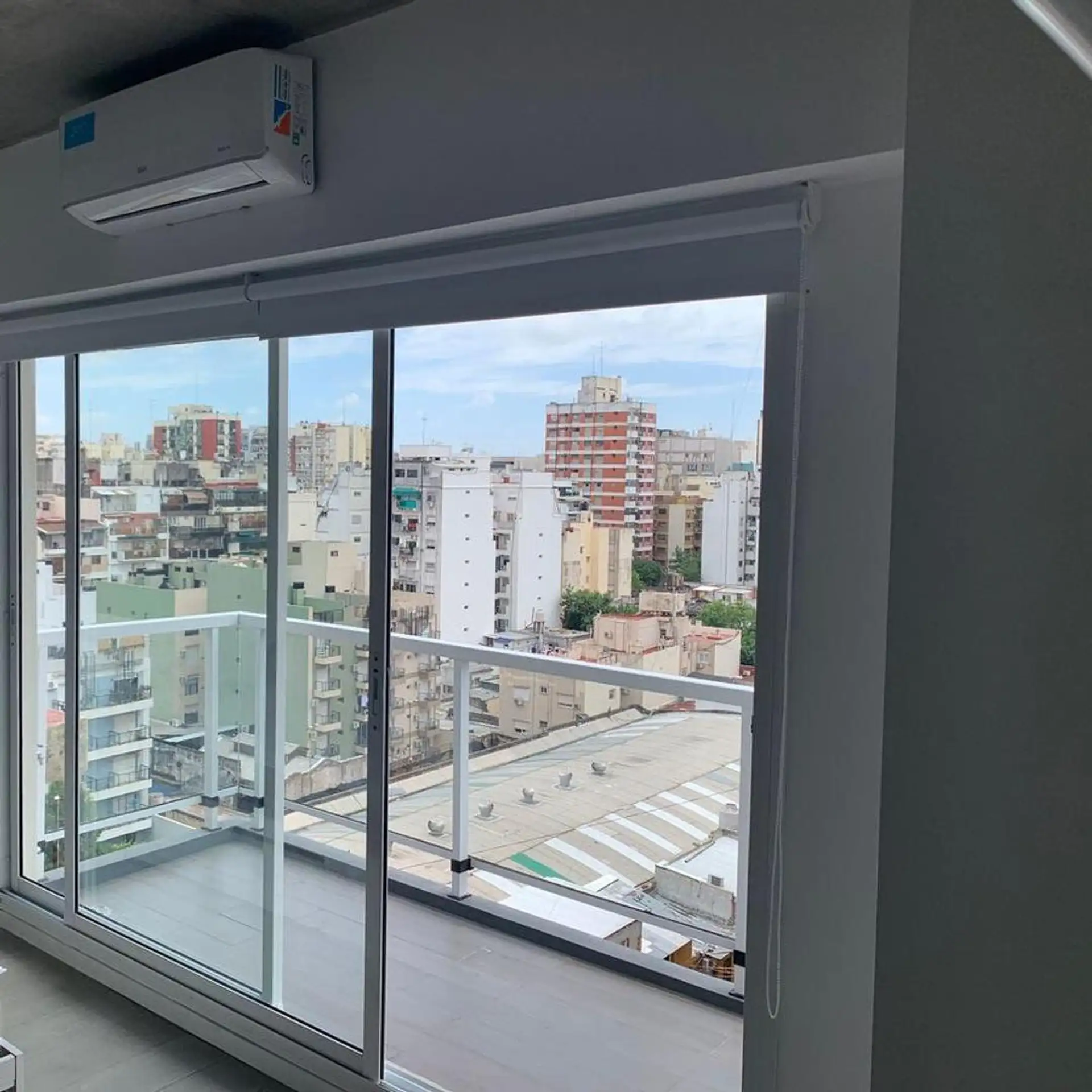 Kitnet mobiliada em Almagro, com 55 m² totais no último andar, de fundos (contrafrente), com 1 banheiro completo e varanda em estilo terraço. Possui ar-condicionado split frio/calor, geladeira e outros itens para chegada imediata, além de serviço de Wi‑Fi. O prédio tem portaria e acesso para pessoas com mobilidade reduzida. O aluguel temporário pode ser por 3 noites até 3 meses, com opção de renovação, com valor diário de 49.000 e mensal de 1.200.000. Em frente fica o Hospital Italiano, a poucos