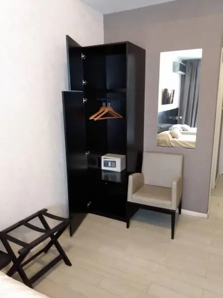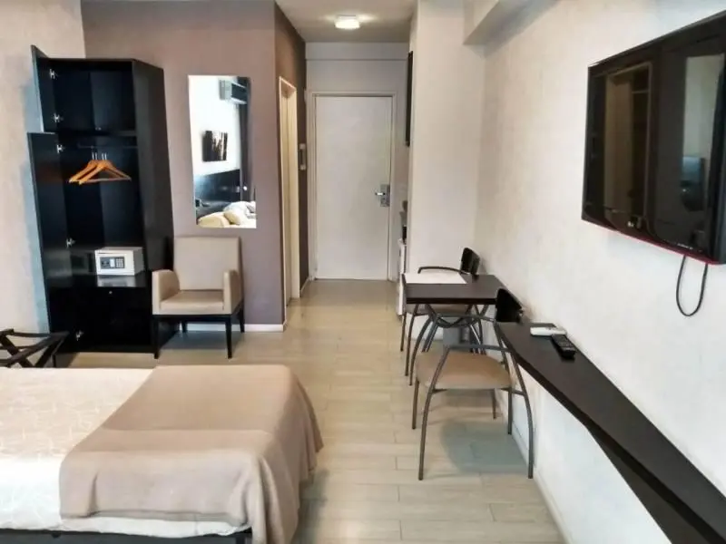 Kitnet mobiliada em Almagro, de frente para o Hospital Italiano. Possui ar-condicionado frio e quente, geladeira e TV 32, além de área com sofá e cama tipo colchão (pode ser de casal ou duas camas individuais). O condomínio inclui água quente do edifício. O valor não inclui água, luz e internet. O prédio tem piscina, laundry, academia, solarium e segurança 24 horas.