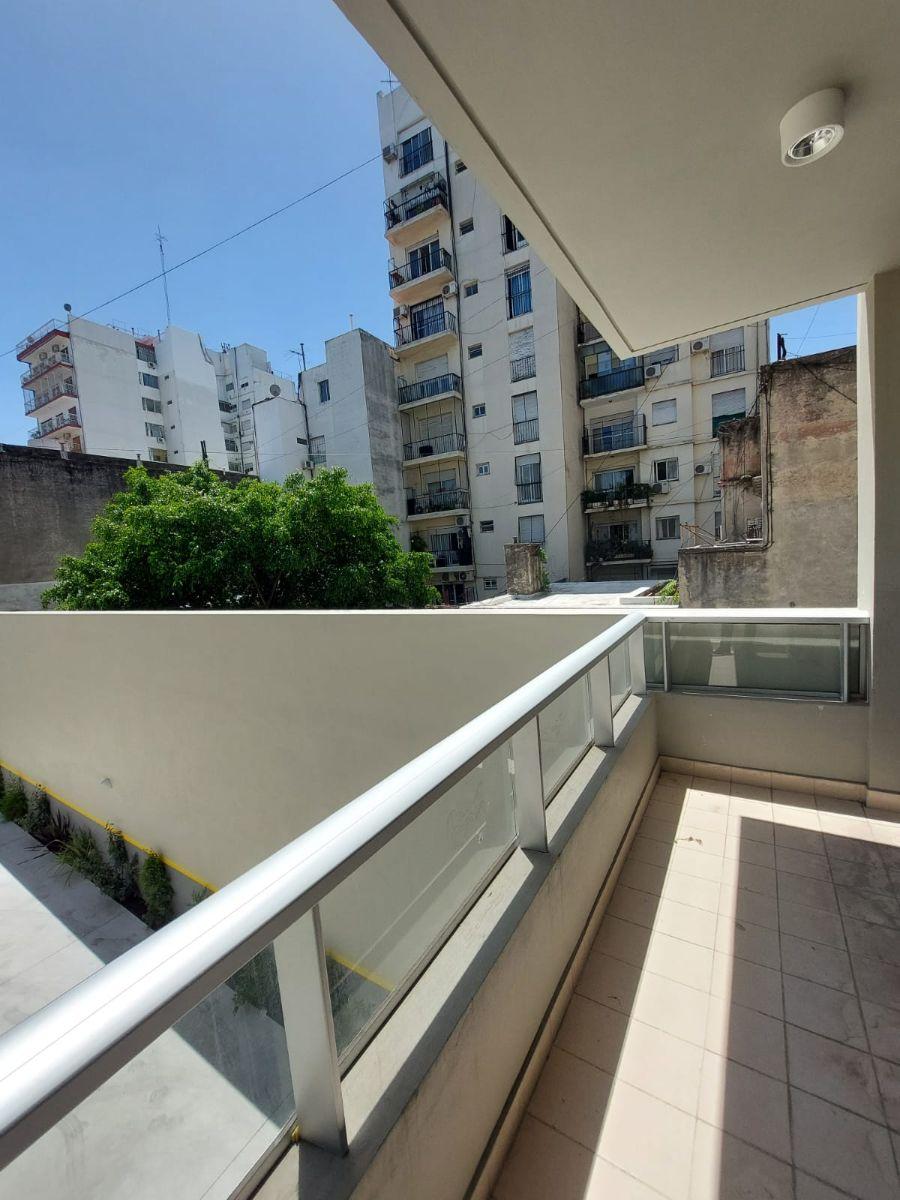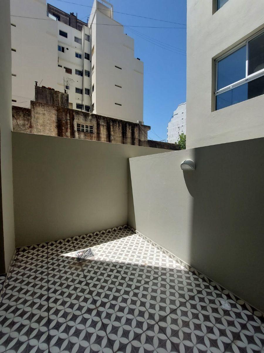 Kitnet de fundos (contrafrente) em Almagro, com ambiente divisível e área de sala contígua. A unidade tem varanda contínua, cozinha totalmente equipada e ventilada, banheiro completo e amplo armário. Inclui um espaço de uso exclusivo com chave no corredor, onde ficam o boiler/termotanque e a conexão para máquina de lavar. O prédio tem lavanderia e área externa com grande terraço e churrasqueira, na gascon 268, a poucos metros da Av. Díaz Vélez.