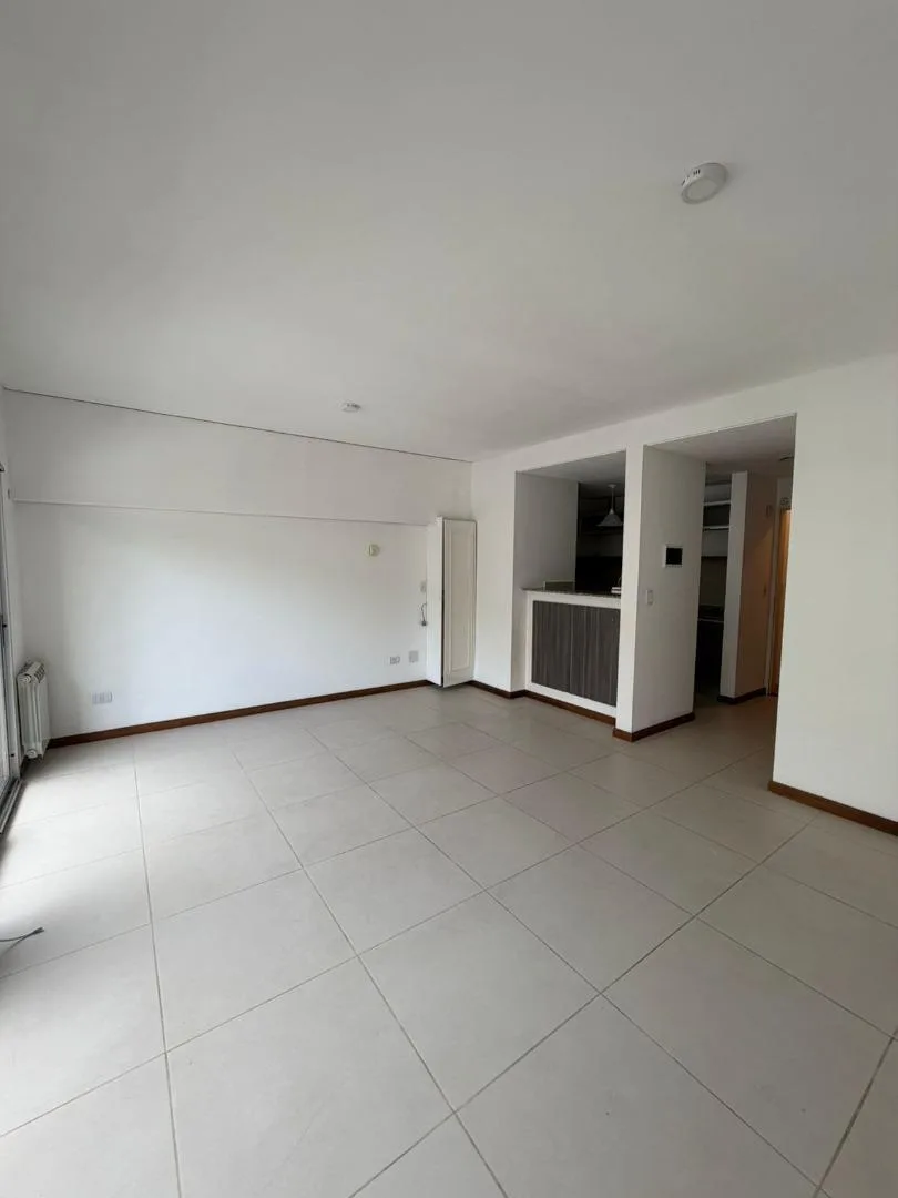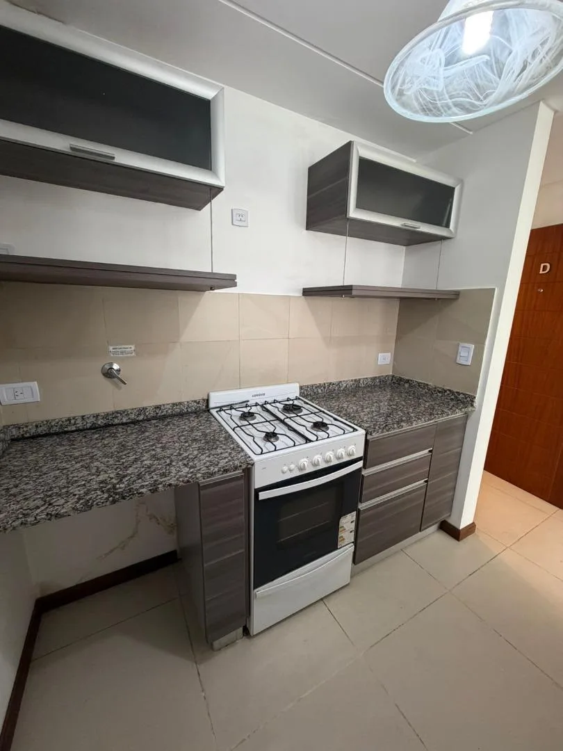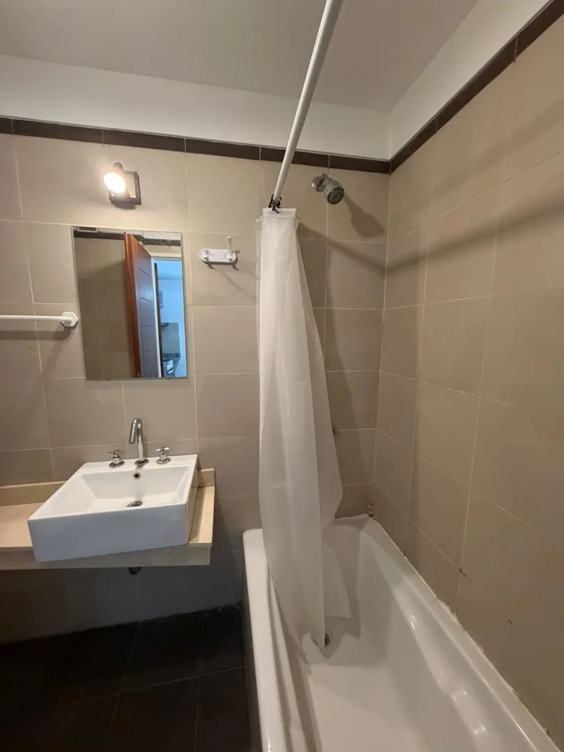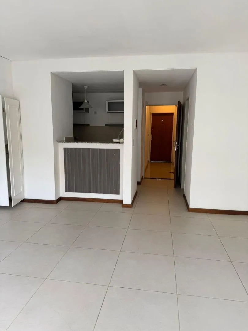 Apartamento de 1 ambiente no segundo andar do segundo corpo, com 1 ambiente amplo e duas portas-janelas, com possibilidade de divisão. Cozinha com bancada, armários sob a bancada, armários aéreos e balcão tipo desayunador. Banheiro com banheira e pia sobre a bancada. O edifício tem piscina.