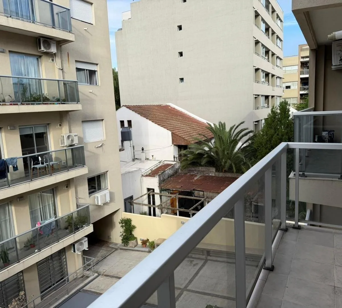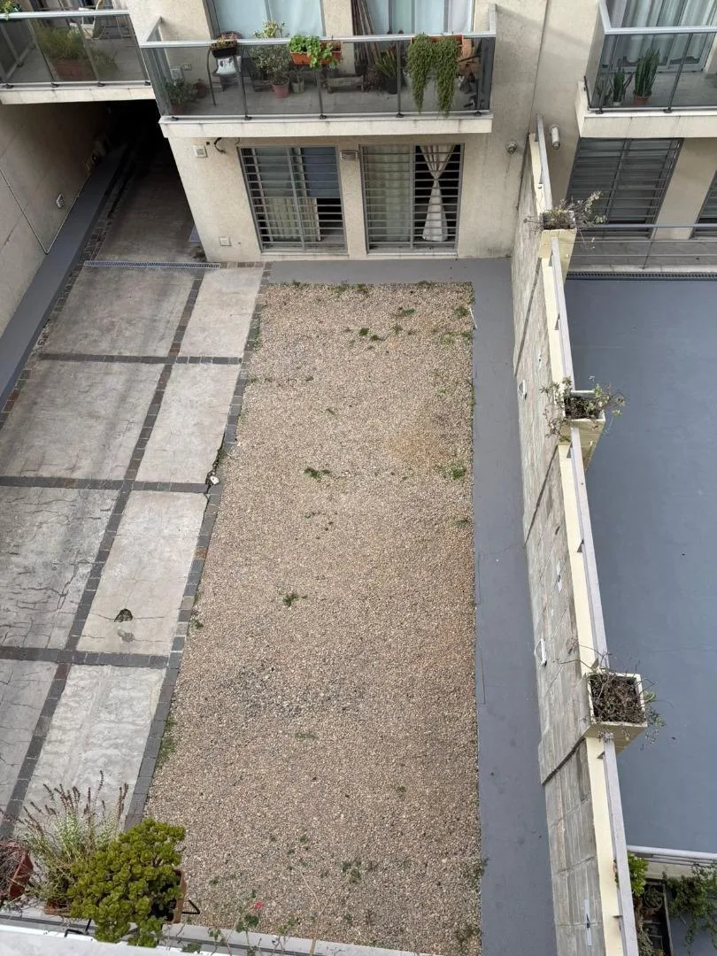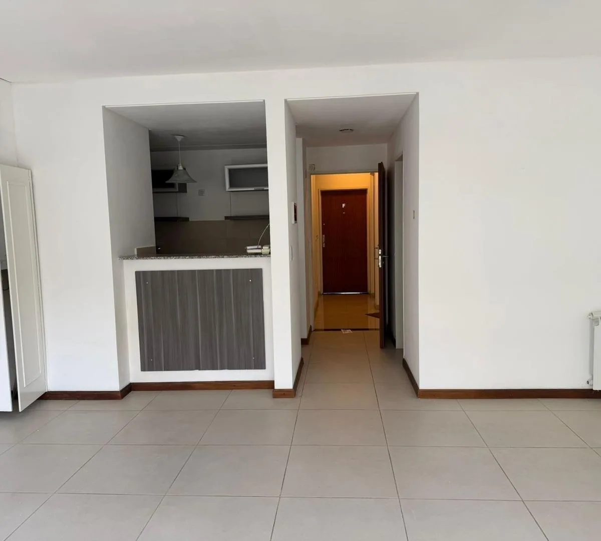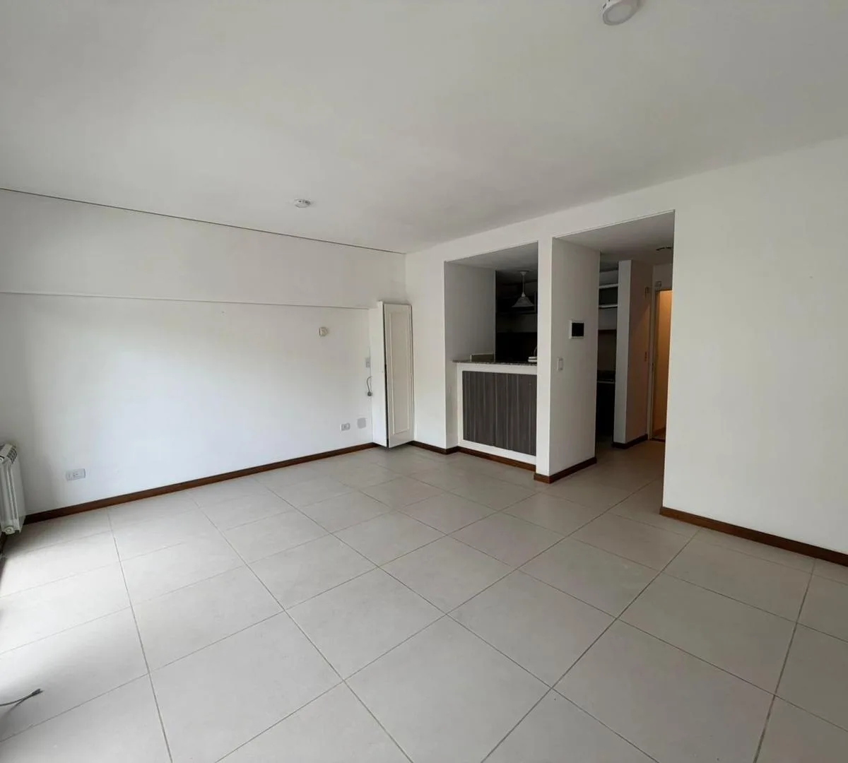 Apartamento de 1 ambiente no segundo andar do segundo corpo, com 1 ambiente amplo e duas portas-janelas, com possibilidade de divisão. Cozinha com bancada, armários sob a bancada, armários aéreos e balcão tipo desayunador. Banheiro com banheira e pia sobre a bancada. O edifício tem piscina.
