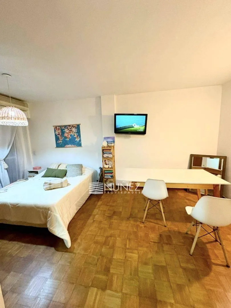 Kitnet (1 ambiente) com varanda de frente para a rua, em Wilde, Avellaneda. O imóvel tem piso de parquet plastificado, grande janela e acesso direto à varanda, além de armário. Cozinha independente com reforma em andamento do piso, banheiro completo, área de serviço independente e dependências. Contrato de 24 meses com atualização trimestral conforme ICL (Índice de Contratos de Locação do BCRA).