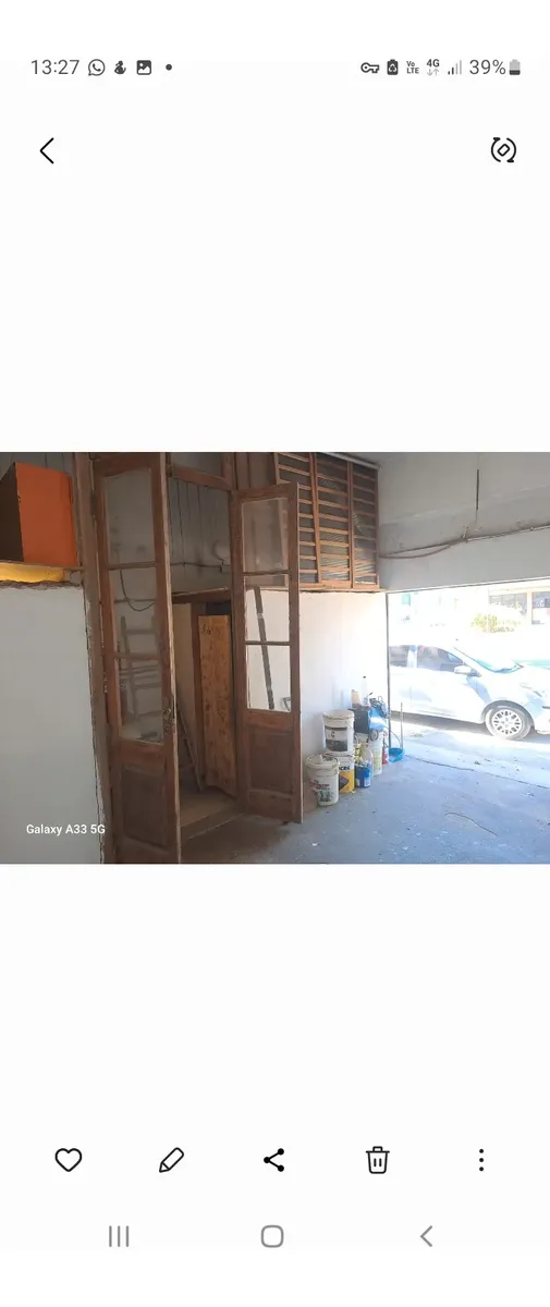 Espaço para locação tipo oficina ou garagem em Avellaneda, com acesso direto pela rua. Há área principal ampla, setor com bancada e pia, instalação de água e banheiro próprio. Inclui portão com acesso pela rua e mezanino/área de armazenamento superior.