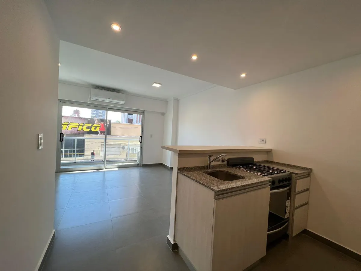Kitnet em aluguel em Wilde Centro, em um 5º andar de frente. Inclui área de estar e jantar integradas com cozinha completa, banheiro completo e varanda com vista para a frente. O edifício tem SUM, piscina, academia, área de duchas e área de churrasco, além de vigilância 24 horas via “El Ojo del Halcón” (Prosegur) e lojas na planta térrea. As despesas de condomínio incluem AYSA e TSG; outros serviços são cobrados à parte. Não são permitidos animais. Contrato de 2 anos com reajuste trimestral conf