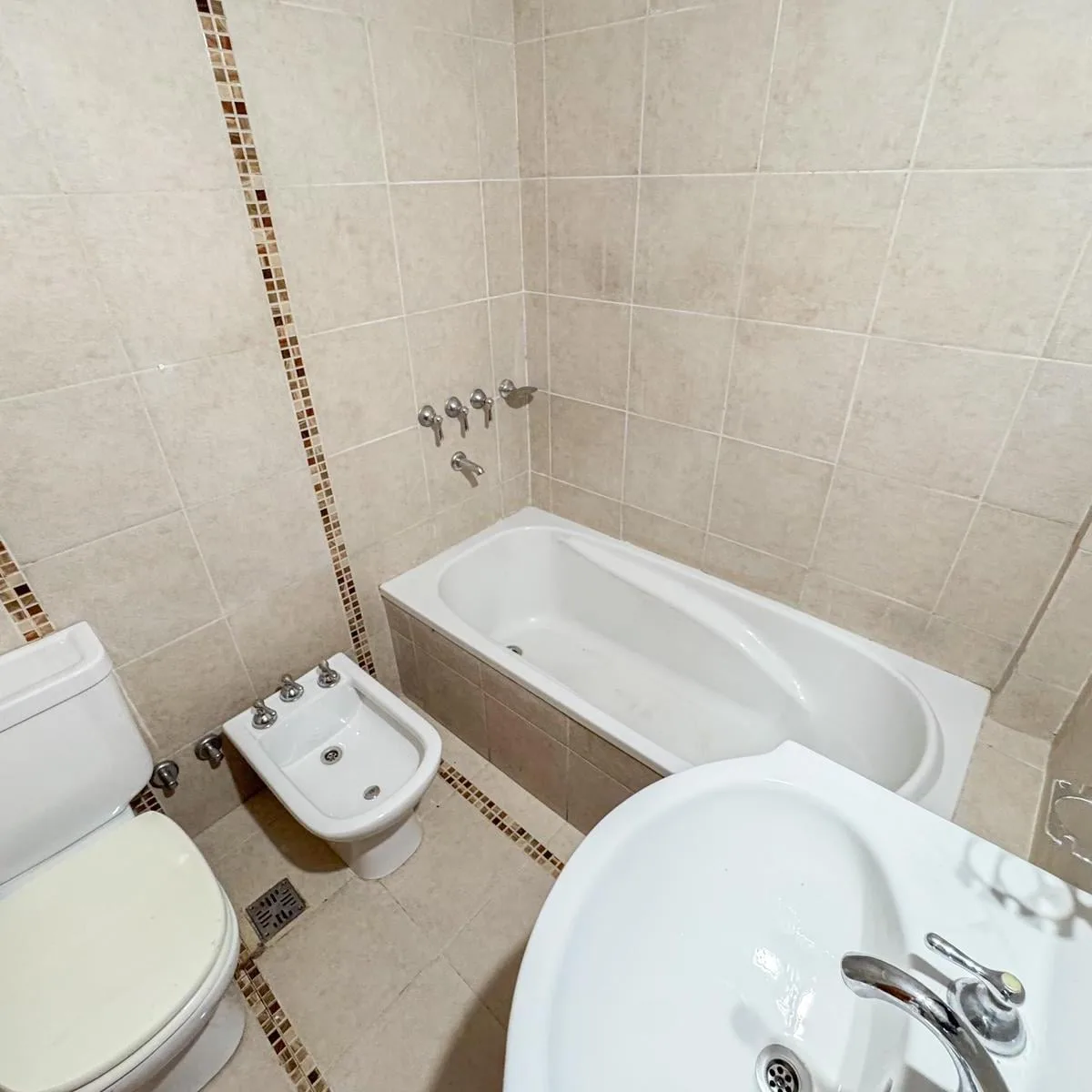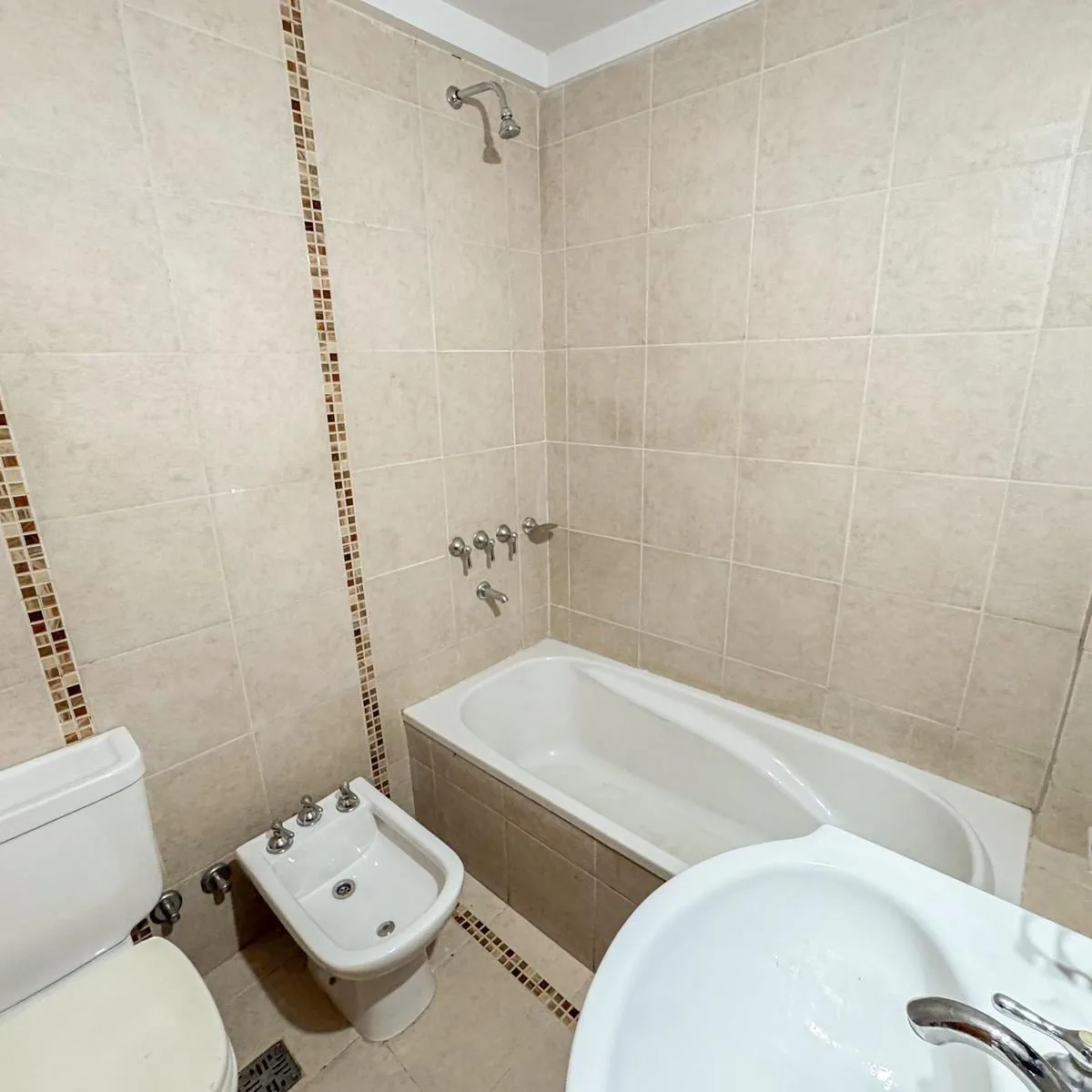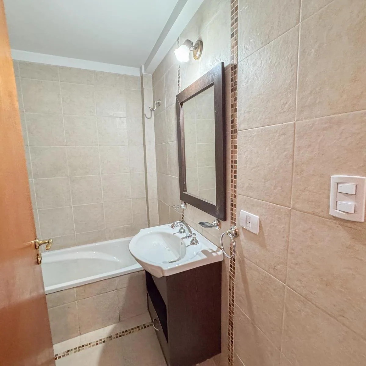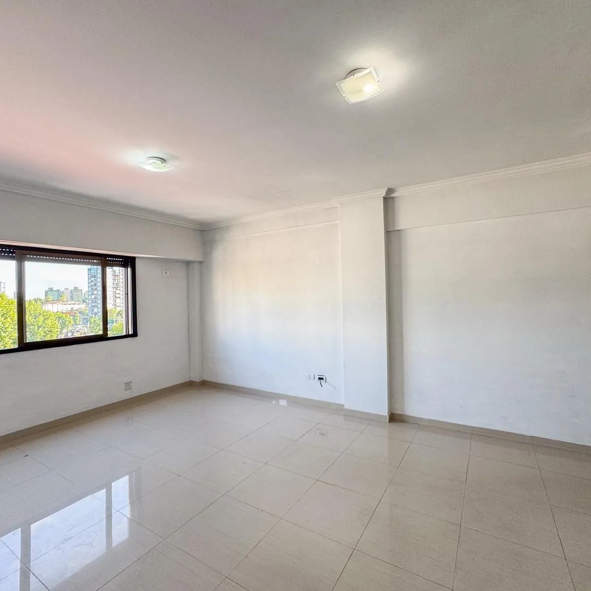 Kitnet de 1 ambiente para aluguel em Avellaneda. Possui 1 banheiro completo com banheira, piso de porcelanato e cozinha integrada com móveis planejados (alto e baixo) e fogão novo (a estrenar). Há janela com persianas, orientação suroeste, ventilação e iluminação natural.