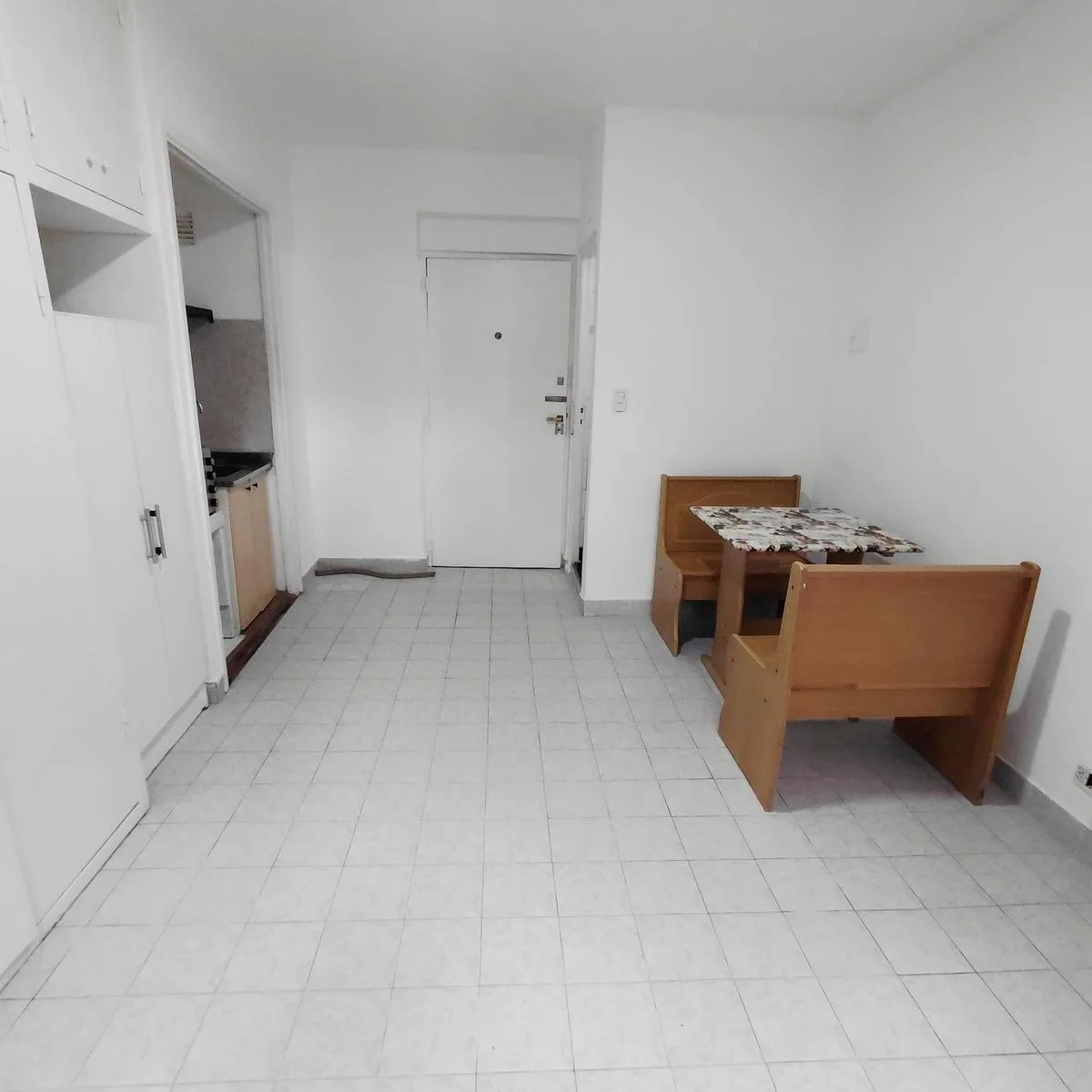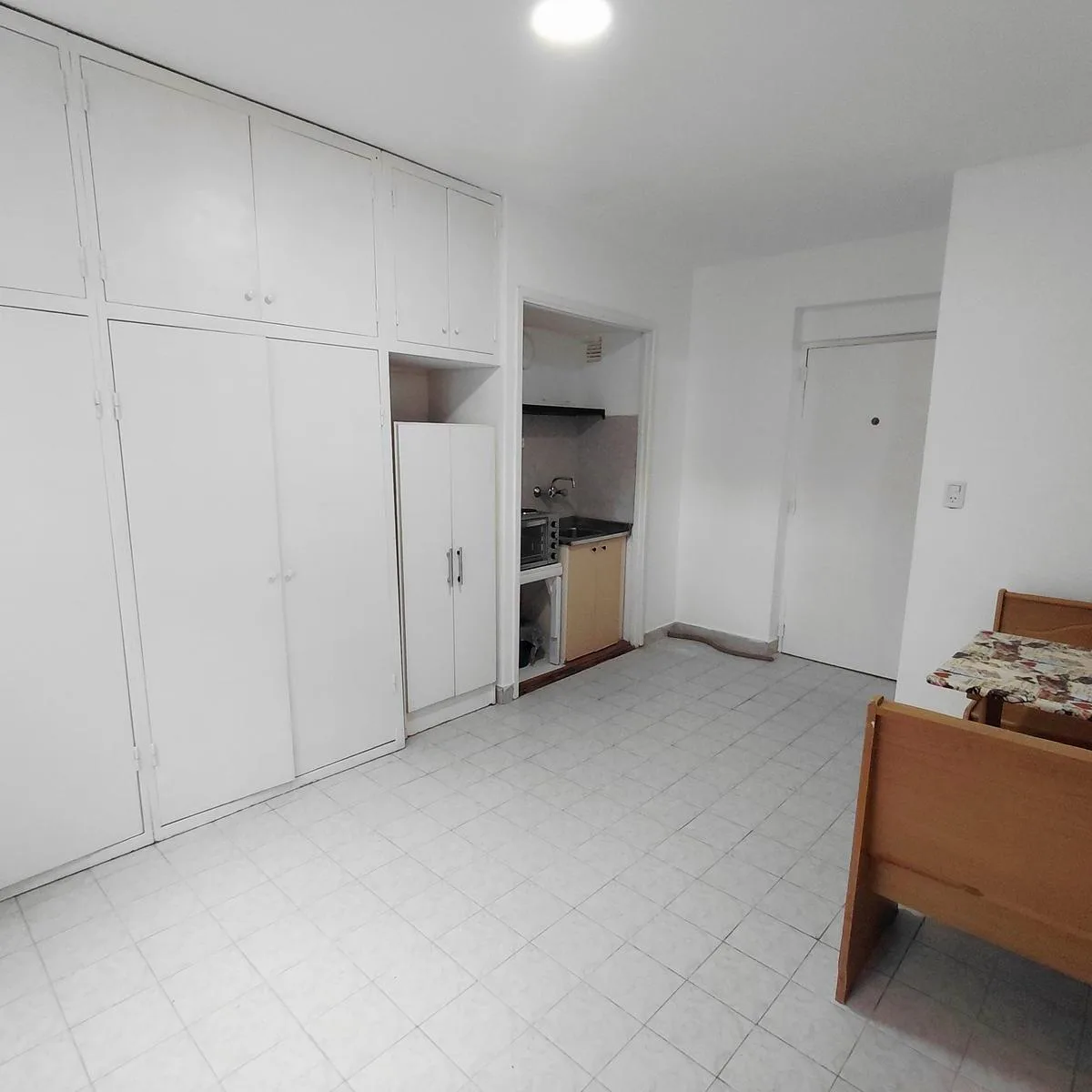 Kitnet para aluguel em Balvanera, no contrafrente. Cozinha tipo kitchenette com forno e fogão elétrico (anafe). Banheiro completo e armário embutido (placard). Foi recentemente pintada e está em bom estado para morar. O condomínio (expensas) é de $ 53.000; o aluguel é de $ 5.178; a ABL é de $ 17.583.