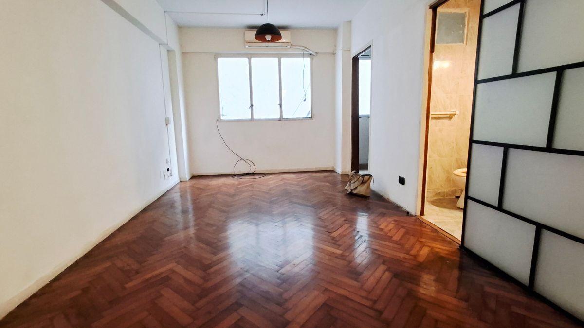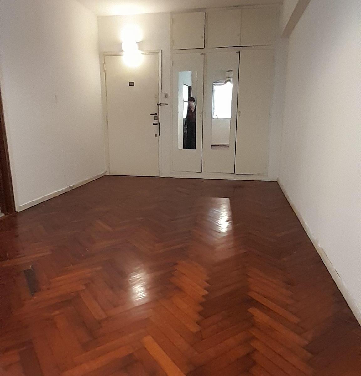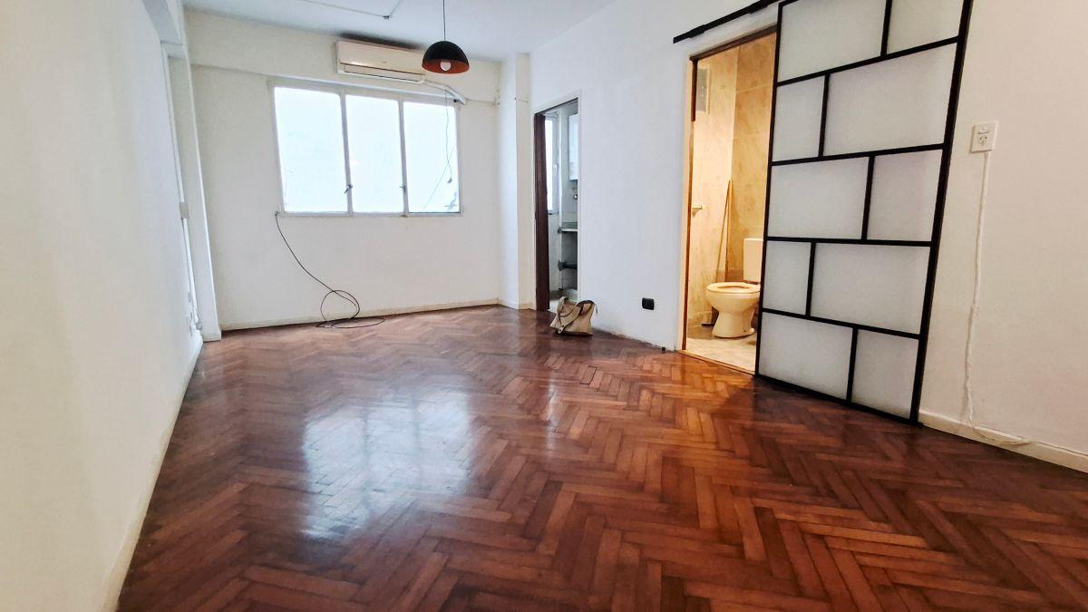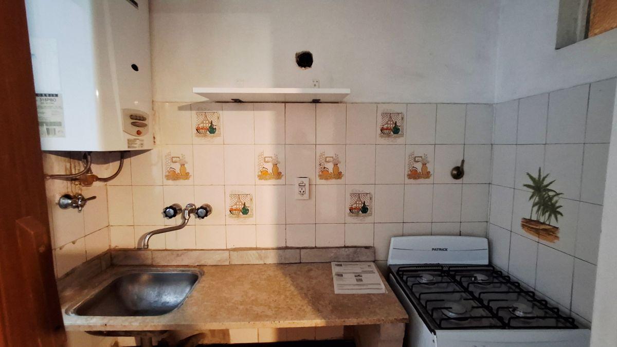 Kitnet de 1 ambiente em Barracas, de esquina, com 1 quarto e cozinha independente. Possui armário embutido, depósito (baulera) na parte alta, piso de parquet e janela voltada para o exterior. Cozinha com forno a gás e armários inferiores e aéreos; banheiro com multifaz.