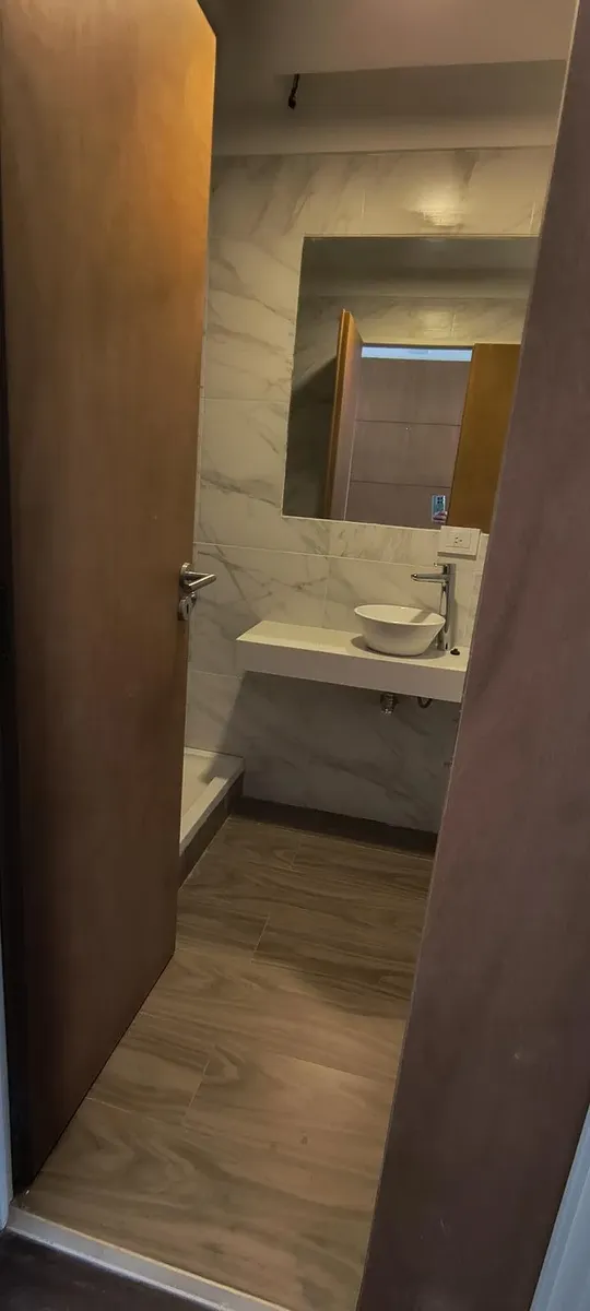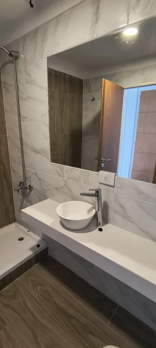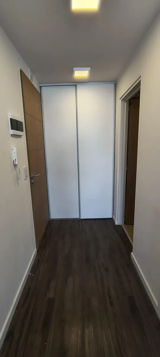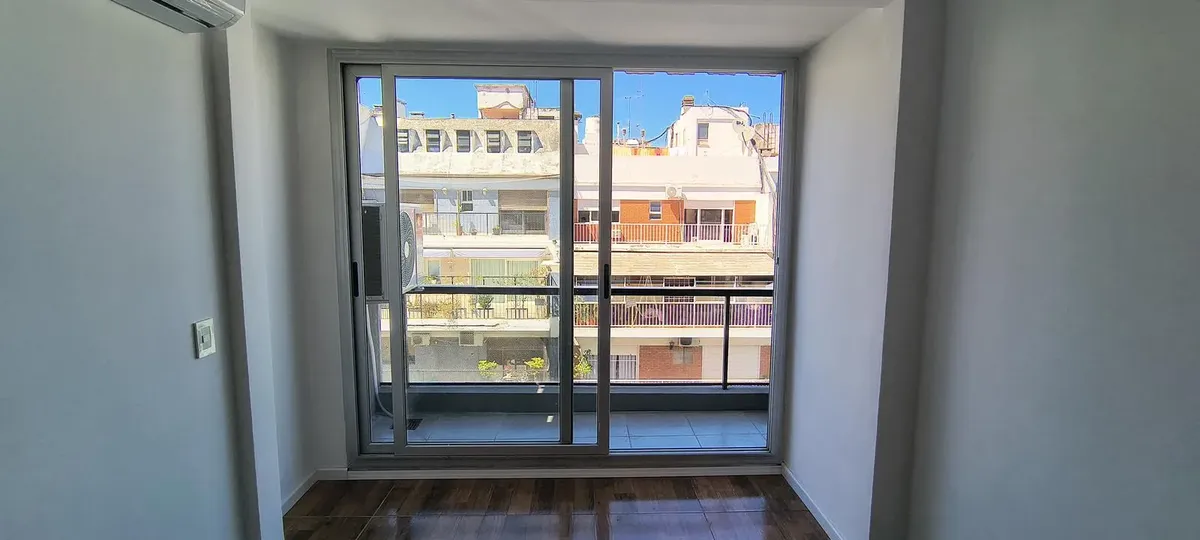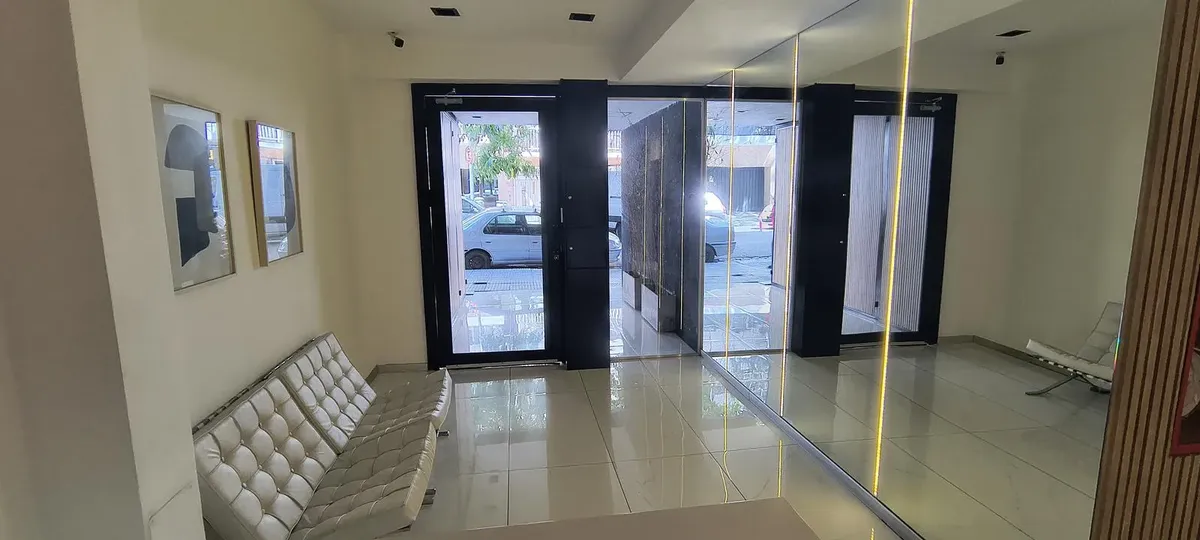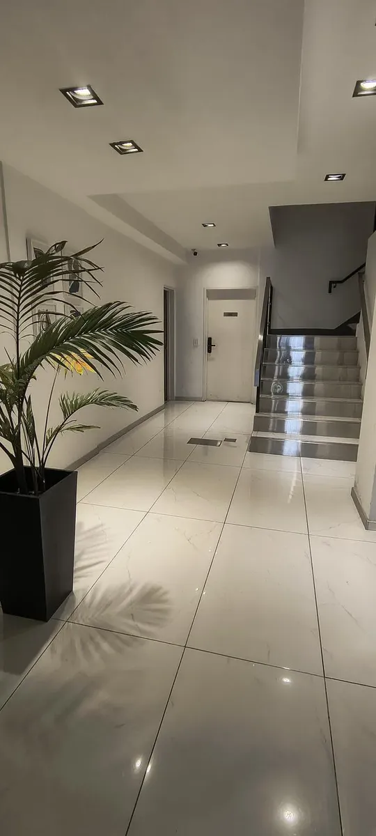 Kitnet (studio) novo, no alto, de frente para a rua, com varanda e vista panorâmica. O imóvel tem hall de entrada de 1,8 m x 1,3 m com armário, ambiente principal de 6 m x 3 m com saída para varanda de 3 m x 1 m, e cozinha integrada separada por uma bancada. Inclui mobília completa, balcão em Siletone, espaço para geladeira e lavadora, cooktop vitrocerâmico e forno elétrico, além de banheiro completo com bancada em Silestone e revestimento em porcelanato. O prédio tem SUM no térreo, terraço com