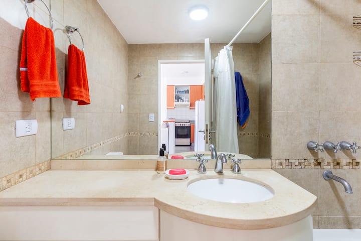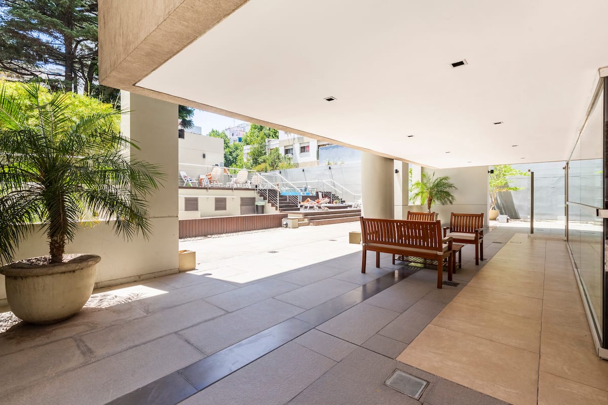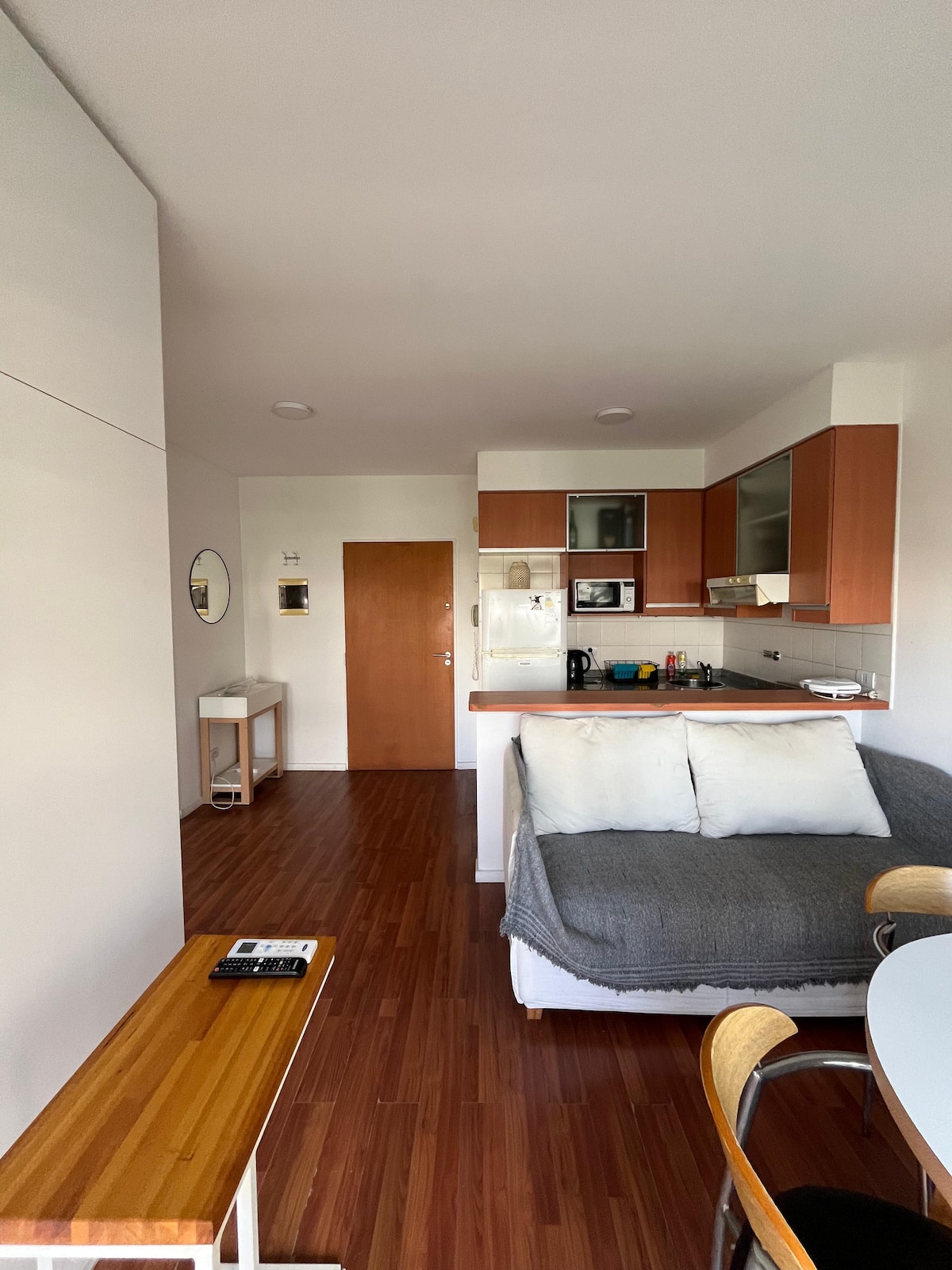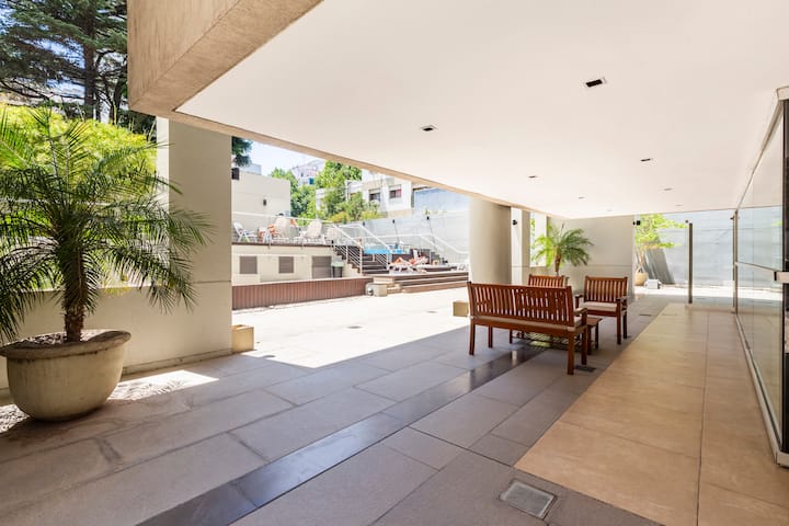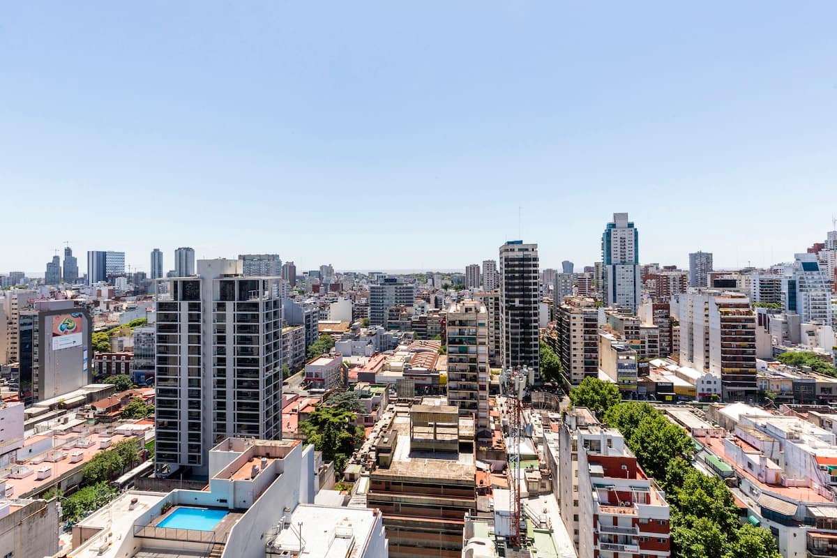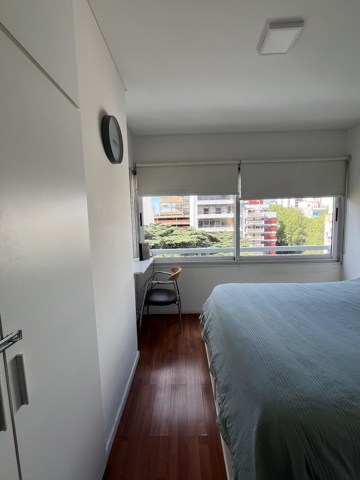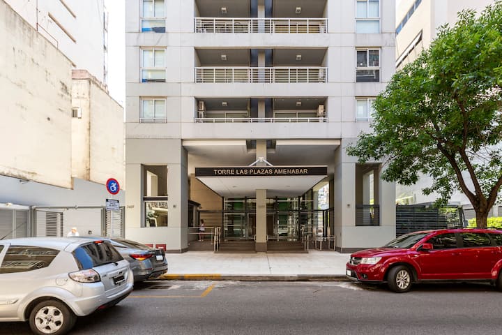 Kitnet em Belgrano, Buenos Aires. O prédio tem segurança 24 horas, piscina, academia e escritório. Fica a 4 quadras da linha D do metrô e a 2 quadras do Metrobus na Avenida Cabildo. O acesso do hóspede é feito com chave na porta e com indicação do apartamento 5F do endereço citado, com elevadores na parte frontal.