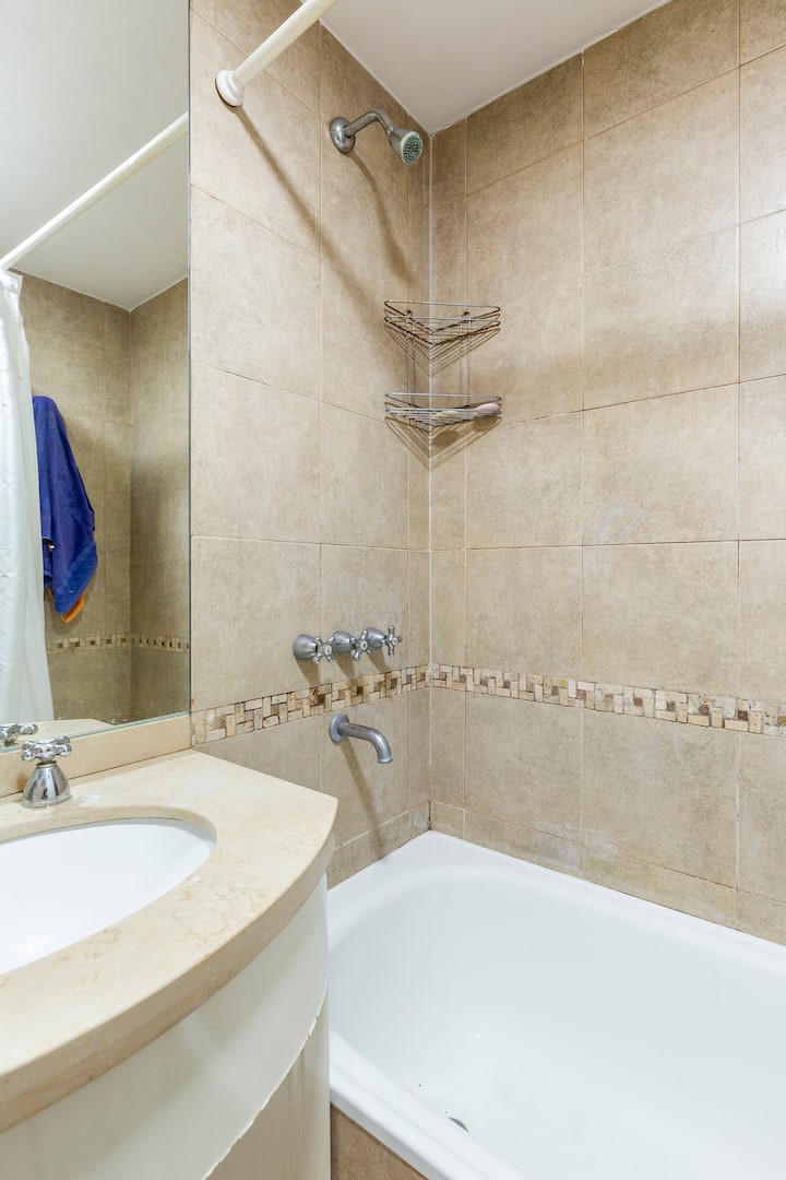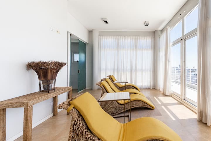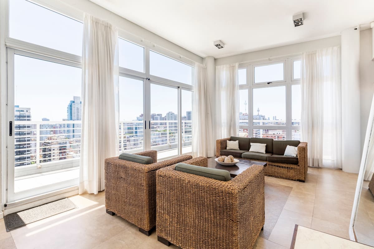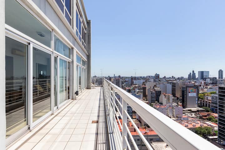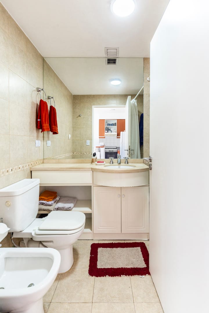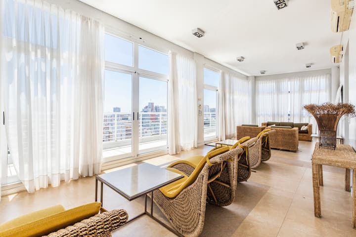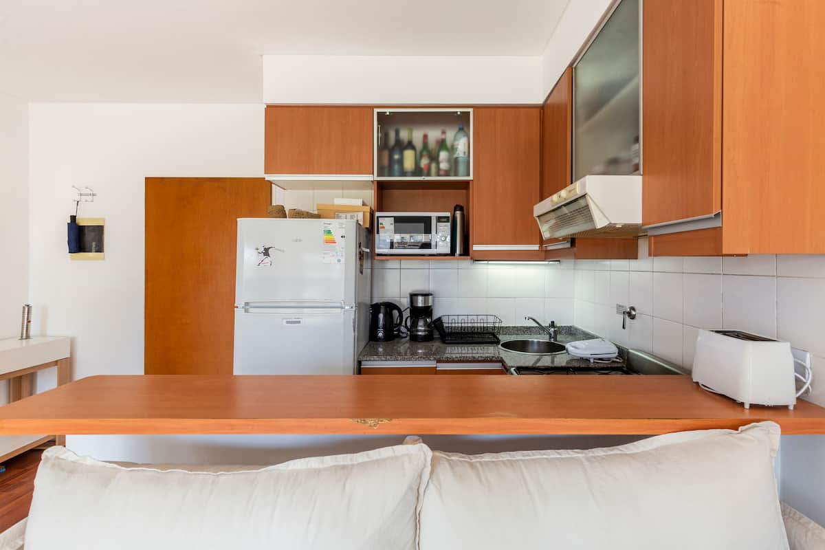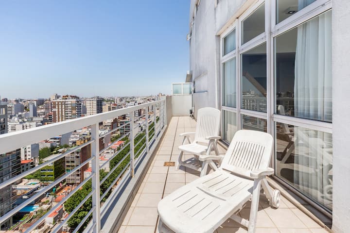 Kitnet em Belgrano, Buenos Aires. O prédio tem segurança 24 horas, piscina, academia e escritório. Fica a 4 quadras da linha D do metrô e a 2 quadras do Metrobus na Avenida Cabildo. O acesso do hóspede é feito com chave na porta e com indicação do apartamento 5F do endereço citado, com elevadores na parte frontal.