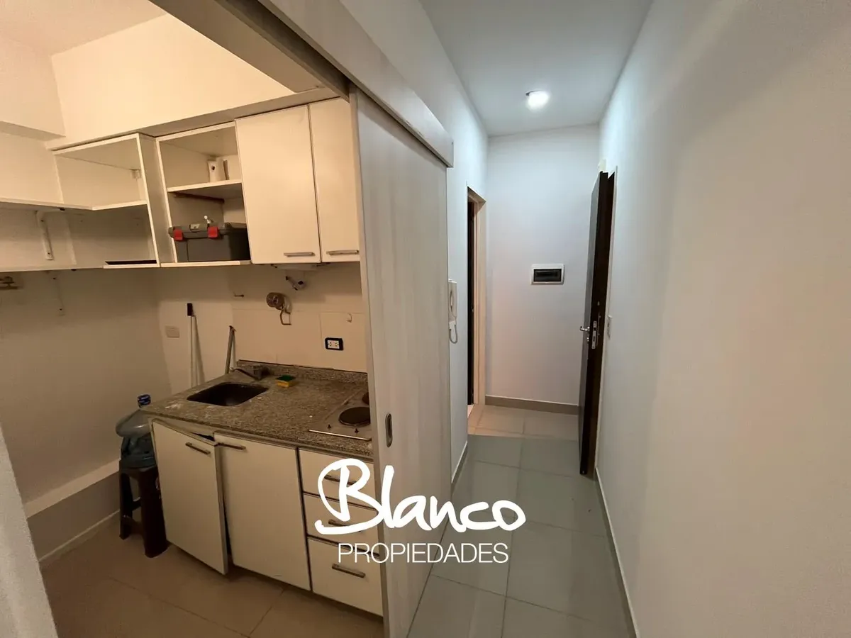 Apartamento tipo kitnet com layout dividido em dois espaços de trabalho, em edifício apto para uso profissional com segurança 24 horas e controle de acesso. O acesso é feito por um corredor que leva ao banheiro e à cozinha, e ao primeiro espaço de trabalho; uma divisória com porta dá acesso ao segundo espaço. O prédio tem academia, salão de festas, lavanderia e piscina a céu aberto com solário.