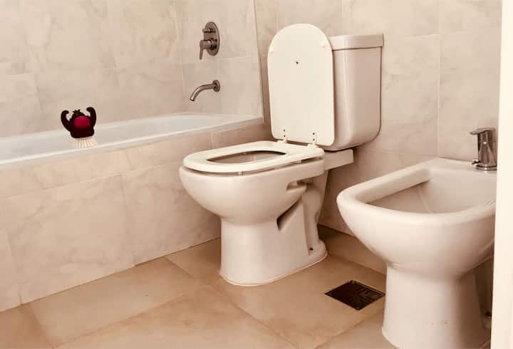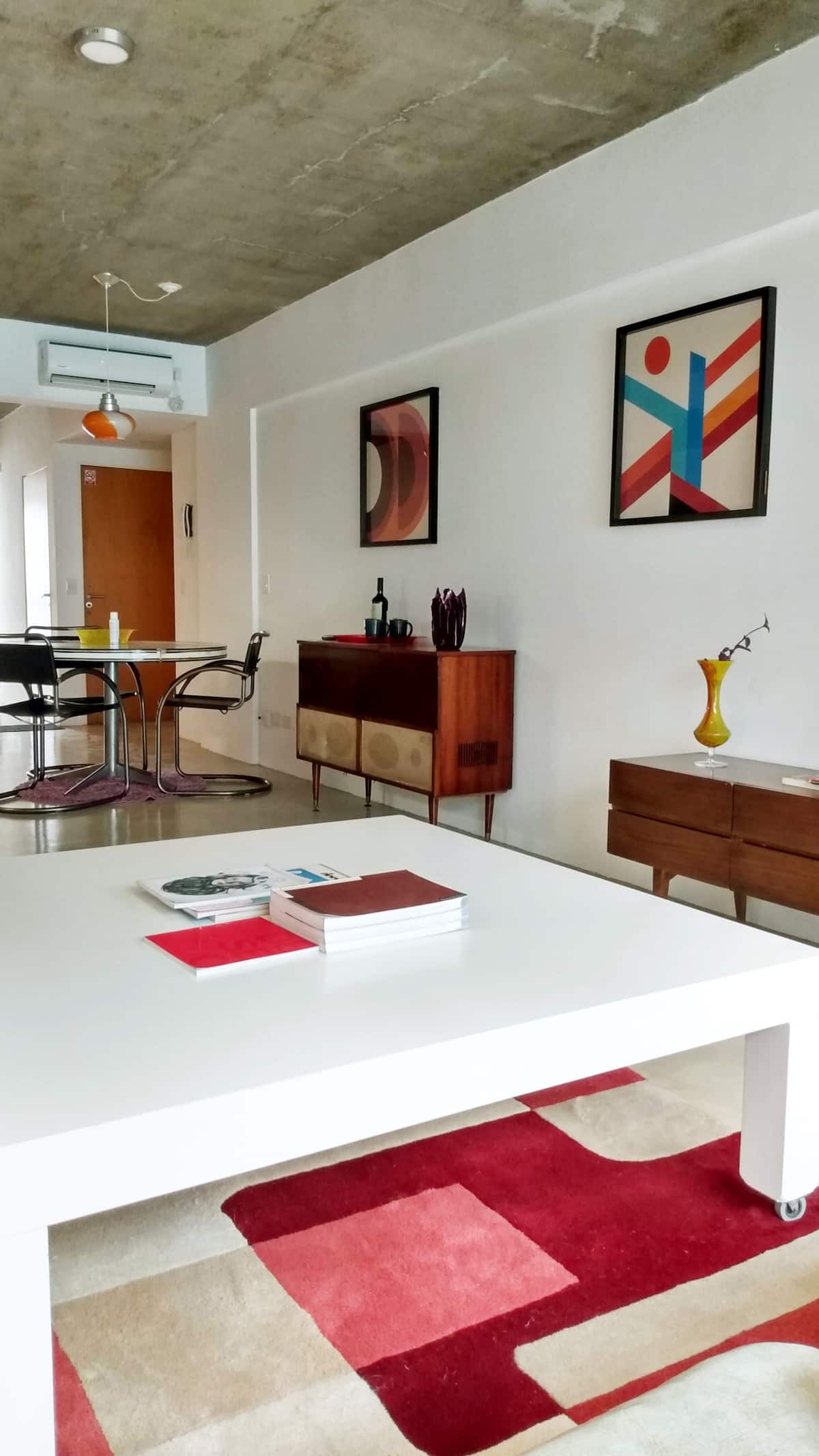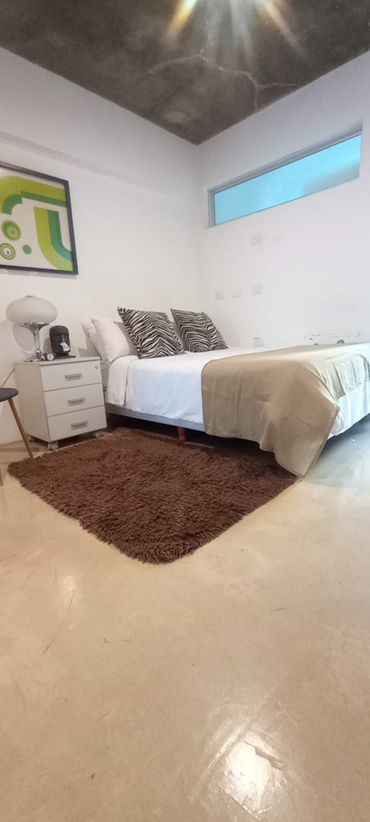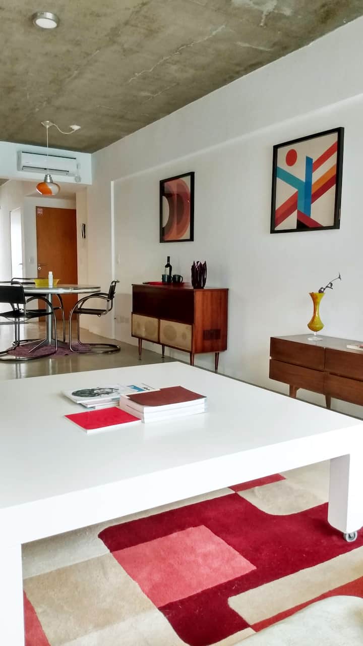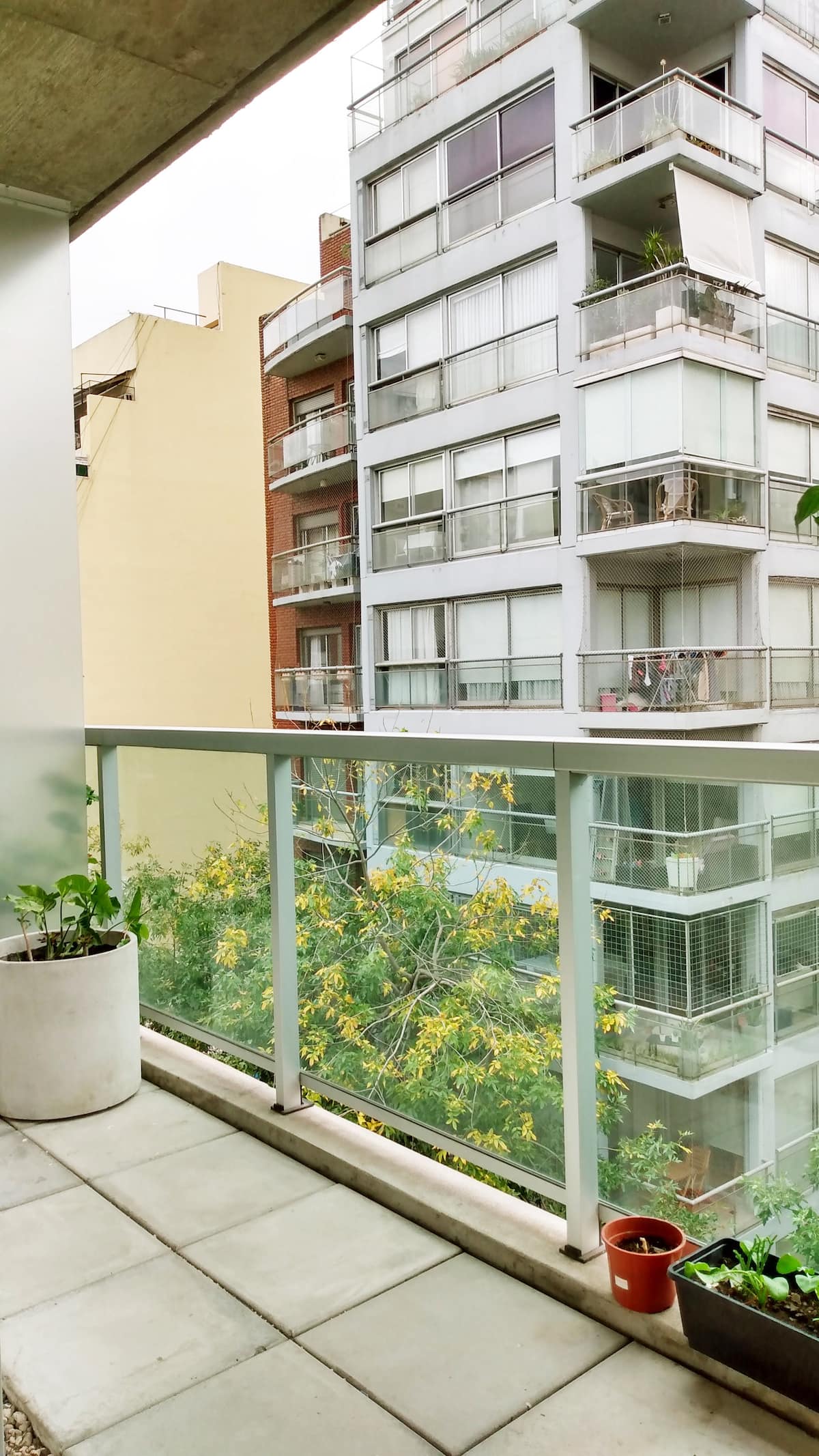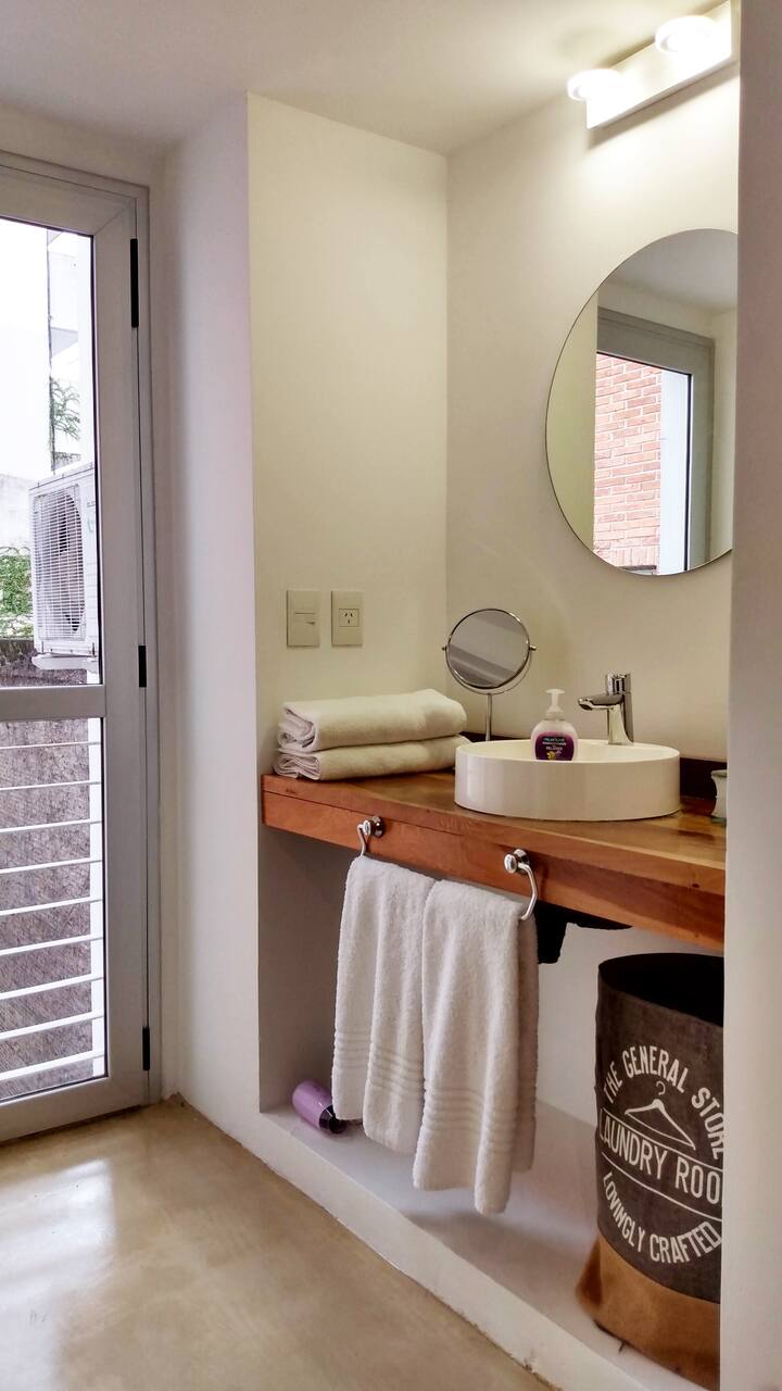Apartamento de um único ambiente em Belgrano. Unidade mobiliada e equipada, em prédio com terraço no último andar. O prédio dispõe de área de churrasco no terraço, compartilhada com os vizinhos; é proibido fumar no apartamento e nas áreas comuns. O texto cita que há opção de lavanderias na região com lavagem e secagem em 24 horas, com uma próxima ao edifício.