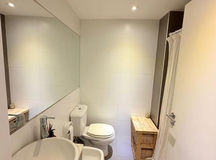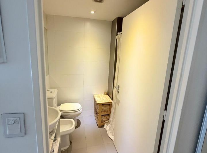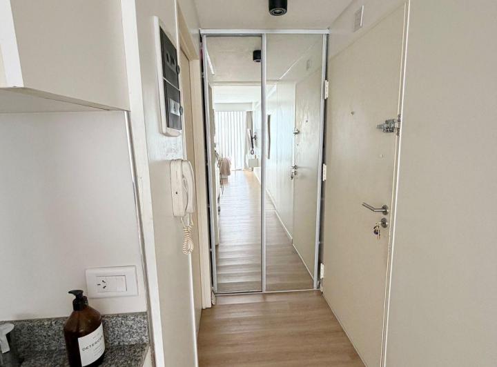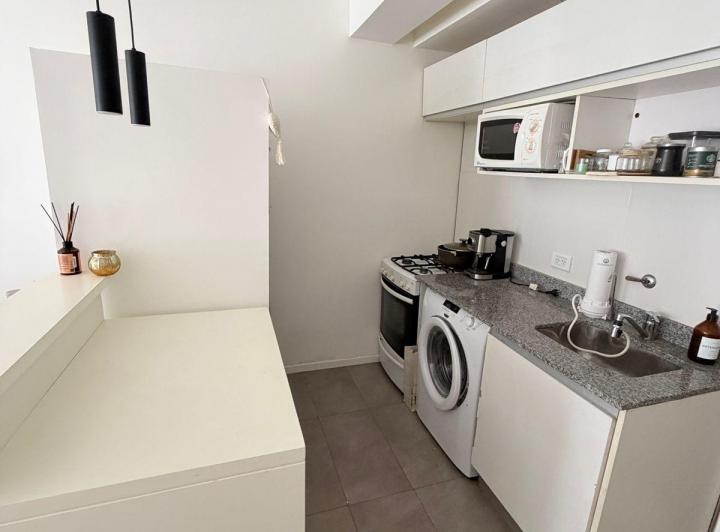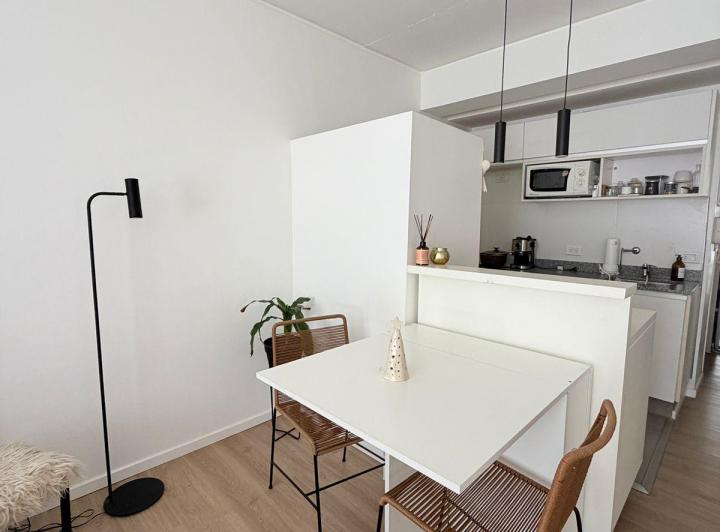 Kitnet com entrada independente, de fundos (contrafrente), em Belgrano. O edifício tem terraço com área de churrasco, estacionamento no subsolo e coberto, e lavanderia. Há ar-condicionado frio/quente e aquecimento por piso radiante; o apartamento tem opção de instalar lavadora. O aluguel pode incluir vaga de garagem.