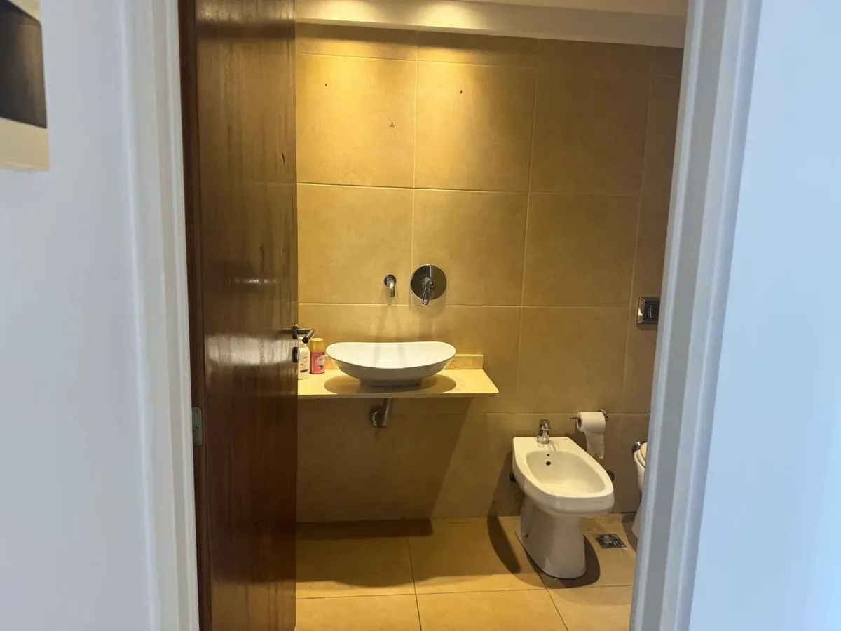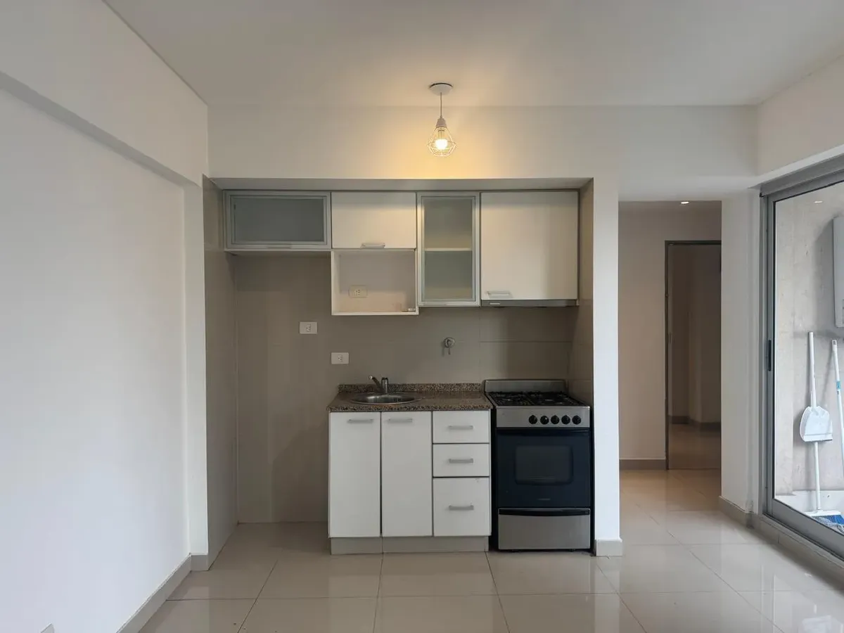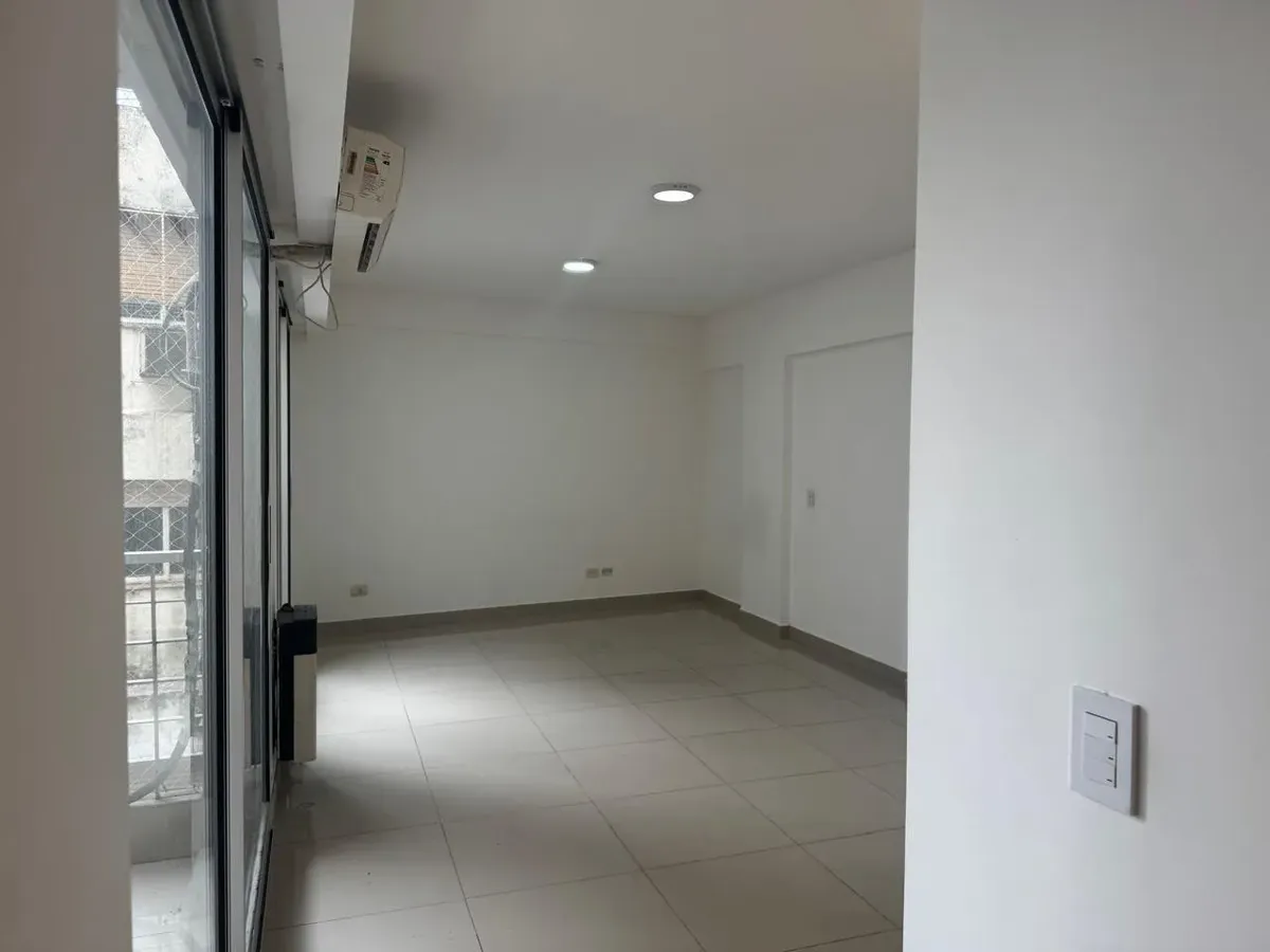 Kitnet de 1 ambiente de fundos (contrafrente) com 6º andar em edifício. Cozinha a gás, aquecimento por estufa de tiro balanceado e ar-condicionado frio. Banheiro completo, armário e piso de porcelanato; entrega com pintura recente. Requisitos: comprovantes de renda (holerites ou certificação), 1 mês de adiantamento e 1 mês de depósito; garantia de aluguel com garantia de Capital. Início de contrato em $ 650.000, atualização trimestral por ICL, contrato de 24 meses e máximo de 2 pessoas.