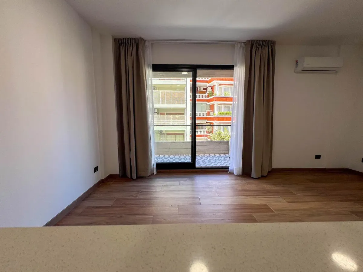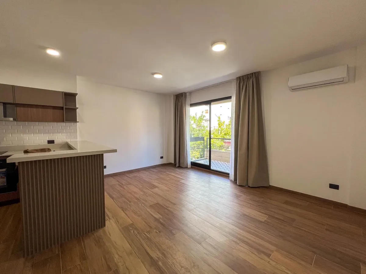 Apartamento de 1 ambiente com balcão, em Caballito, de frente para a rua. Cozinha integrada com forno e cooktop elétricos, conexão para lavadora, banheiro completo e armário. Aquecimento e água quente central, ar-condicionado frio/quente e piso de porcelanato com aparência de madeira. A referência do anúncio indica Miró, entre R.L.Falcón e Av. Juan B. Alberdi, a 150 m da Av. Rivadavia e a 200 m da Av. Goyena. Condomínio referente a fevereiro com vencimento em março de 2026 ainda não foi definido