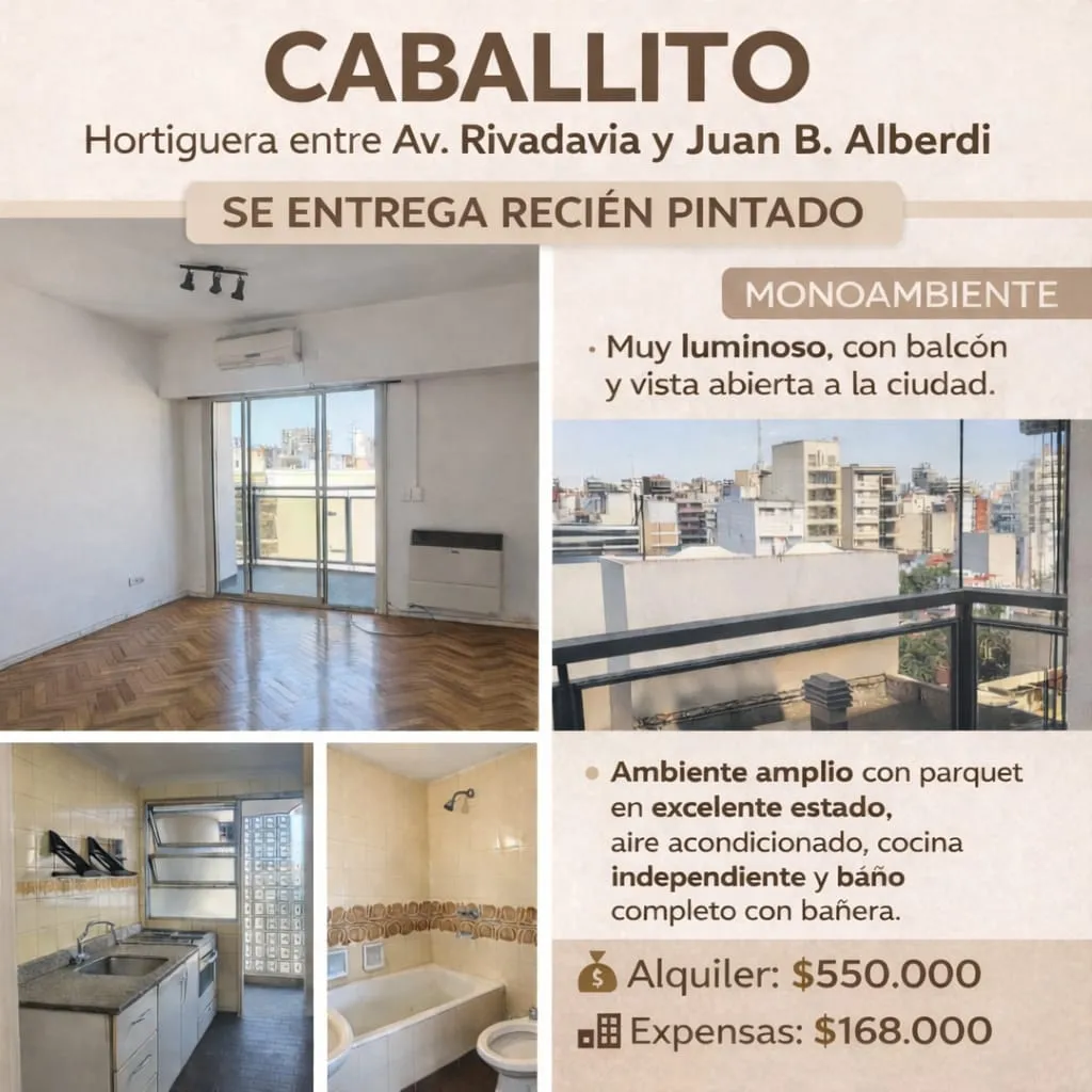 Kitnet (monoambiente) em Caballito. Imóvel de estúdio, em zona descrita como “excelente” no anúncio.