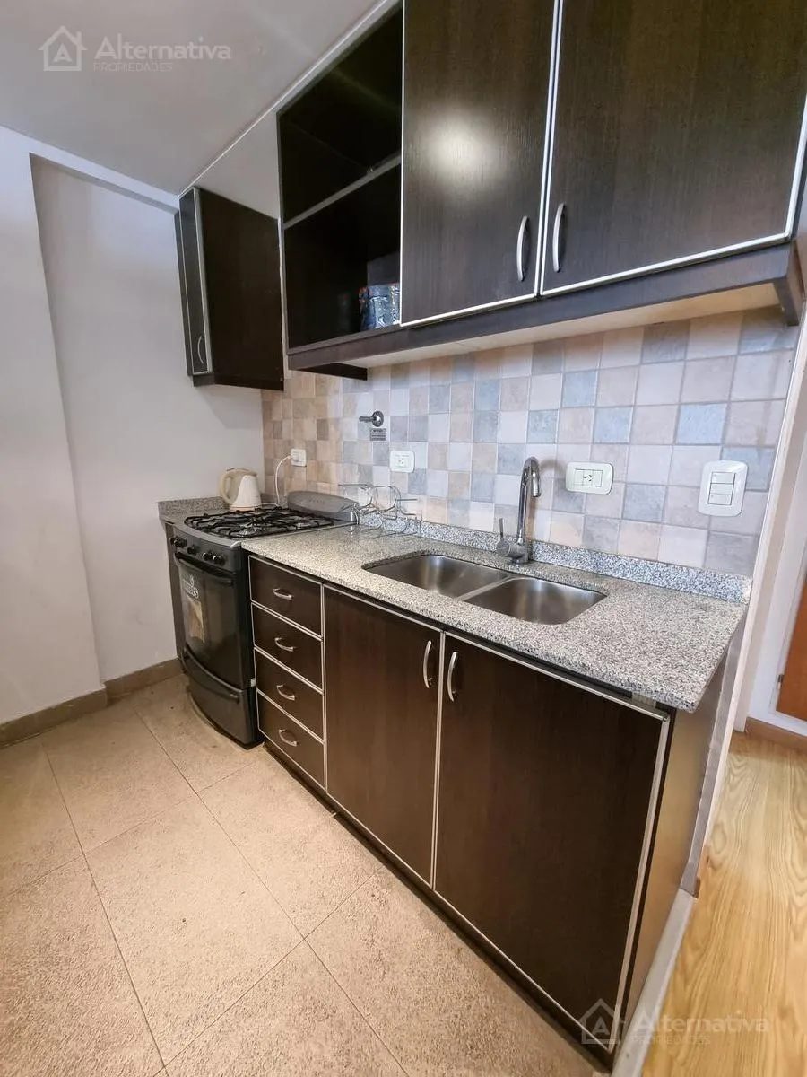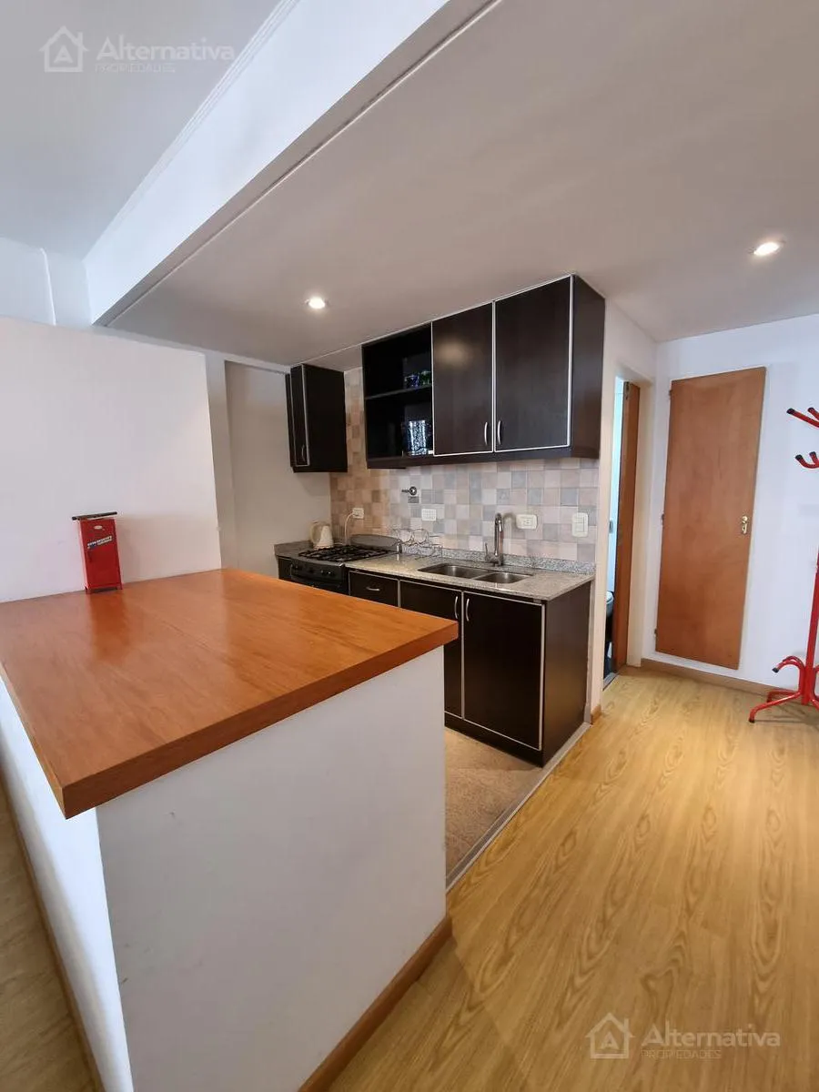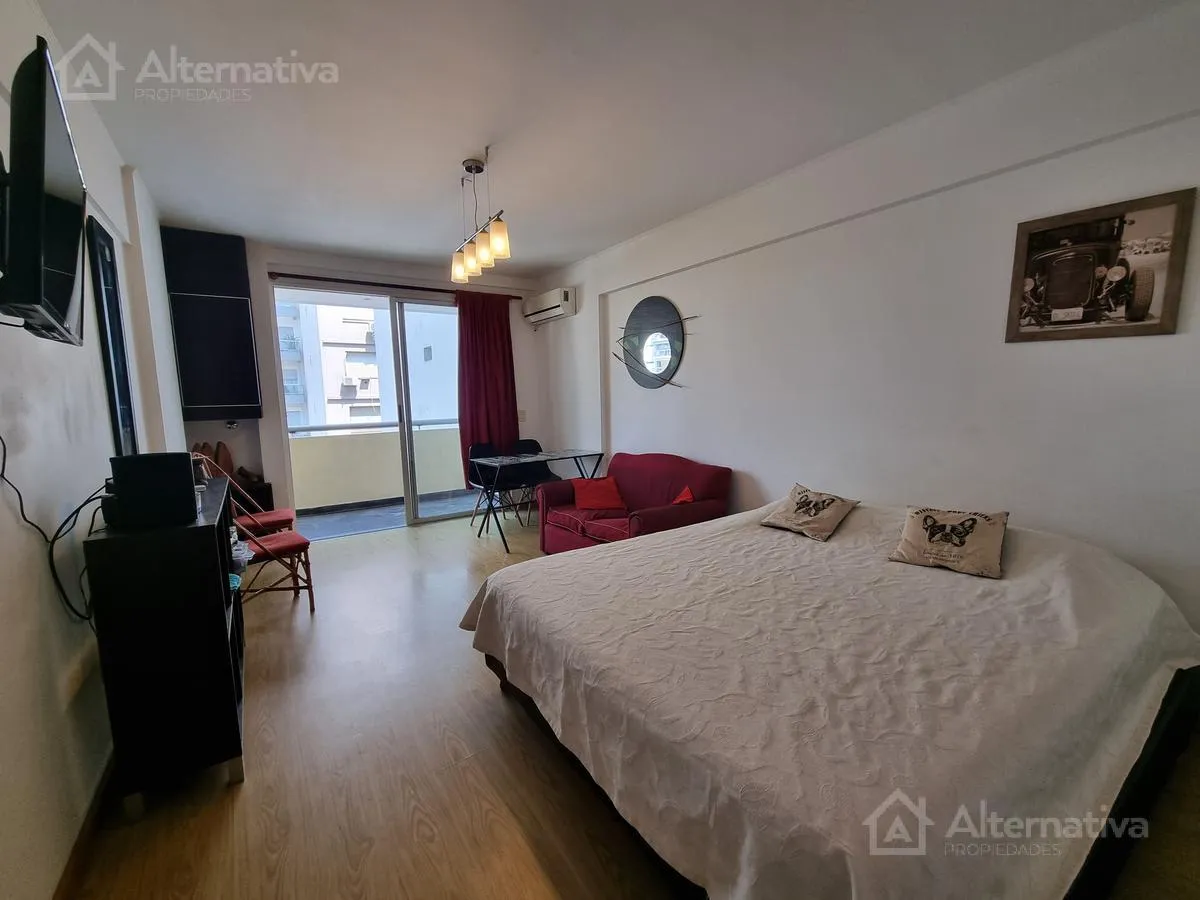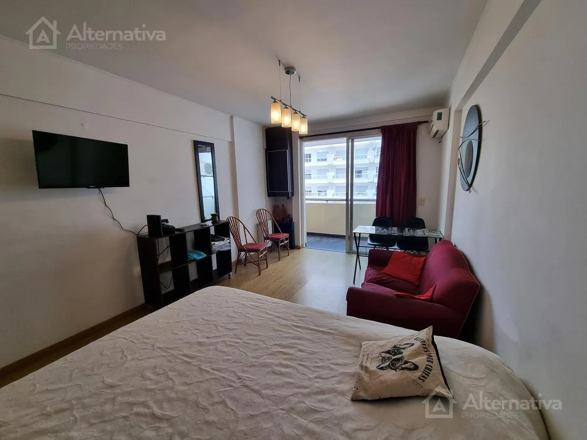 Kitnet mobiliado em Caballito, com 1 ambiente. O living conta com mesa e 4 cadeiras, sofá de dois lugares, rack com TV, ar-condicionado, Wi-Fi e acesso à varanda com vista para o contrafrente. A cozinha é semintegrada, com geladeira com freezer, fogão de 4 bocas e forno, além de chaleira elétrica. O setor de dormitório tem sommiers de casal. Banheiro privativo completo com banheira. O preço inclui condomínio e serviços com limite de consumo; o imóvel é entregue com roupas de cama (blanquería).