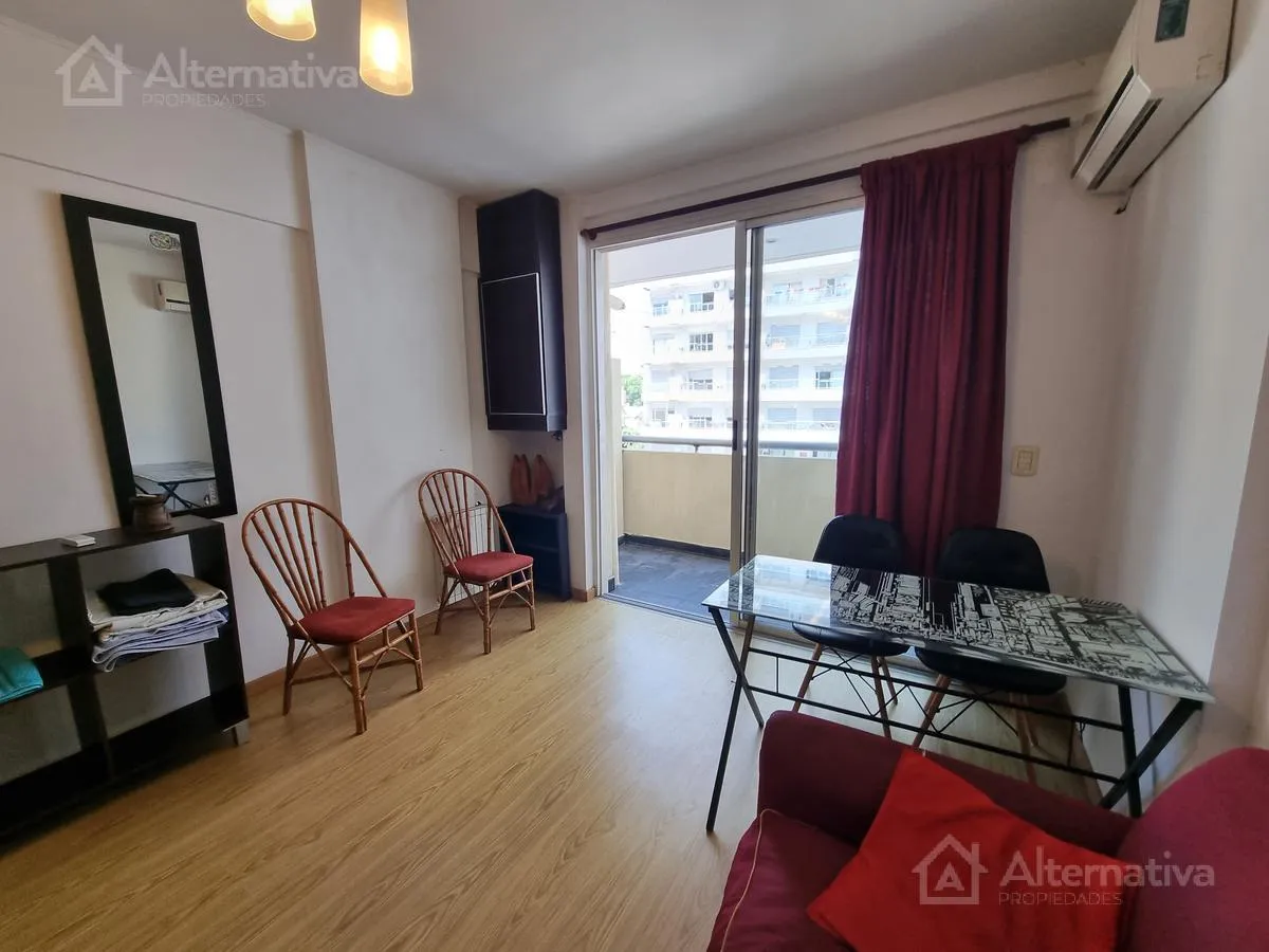 Kitnet mobiliada em Caballito, para aluguel temporário, com estadia mínima de 3 meses até 1 ano (renovável). O ambiente conta com área de estar e jantar com mesa e 4 cadeiras, sofá de dois lugares, rack com TV, ar-condicionado, Wi-Fi e acesso à varanda com vista para o fundo do quarteirão. A cozinha é semi integrada e inclui geladeira com freezer, fogão de 4 bocas, forno e chaleira elétrica; a área de dormir tem sommier de casal. Banheiro privativo completo com banheira. O valor inclui condomíni