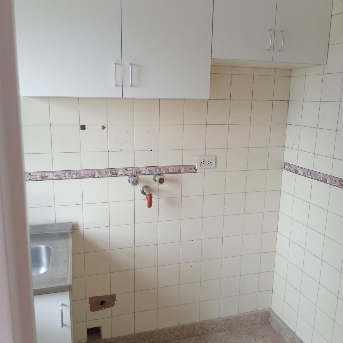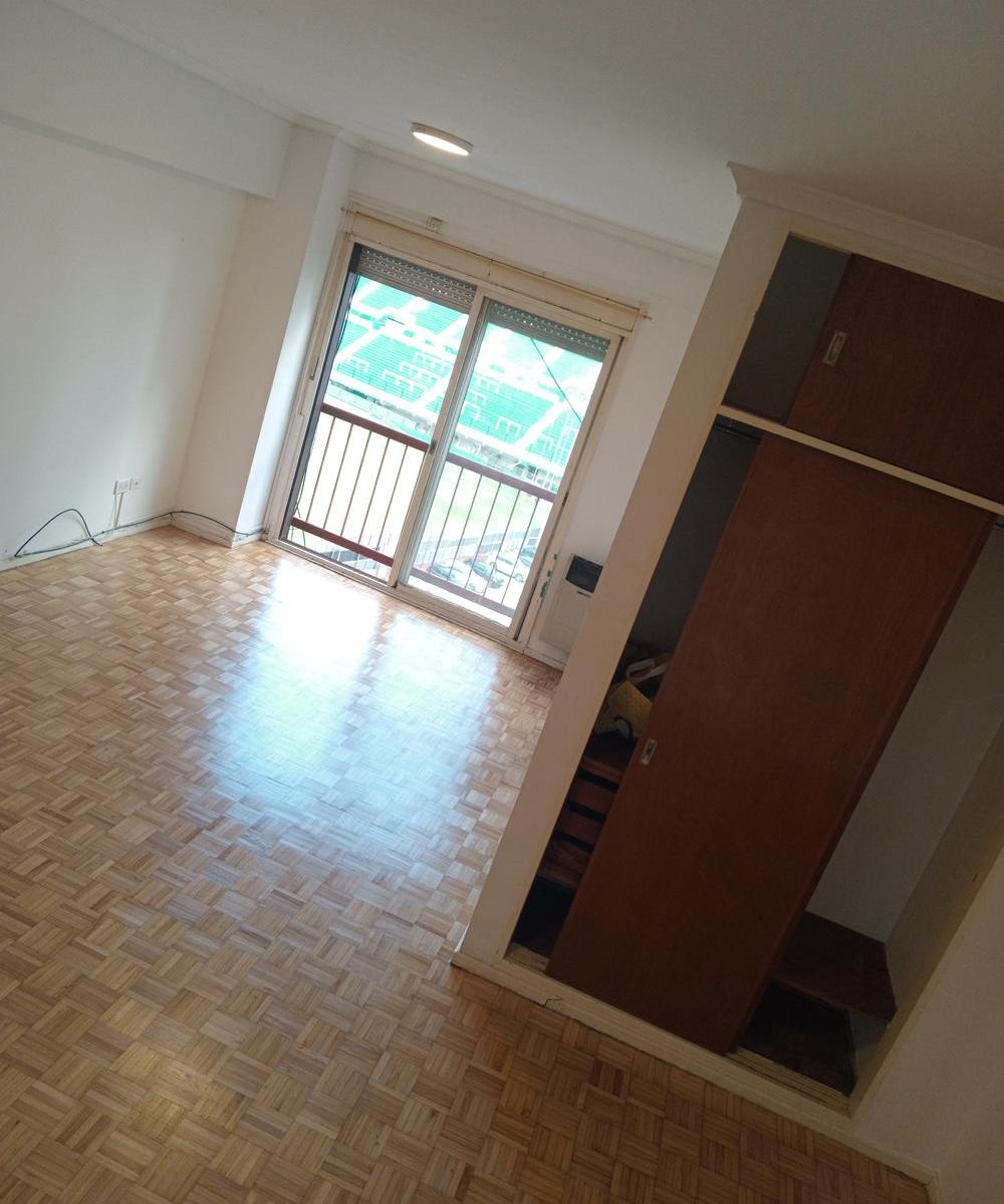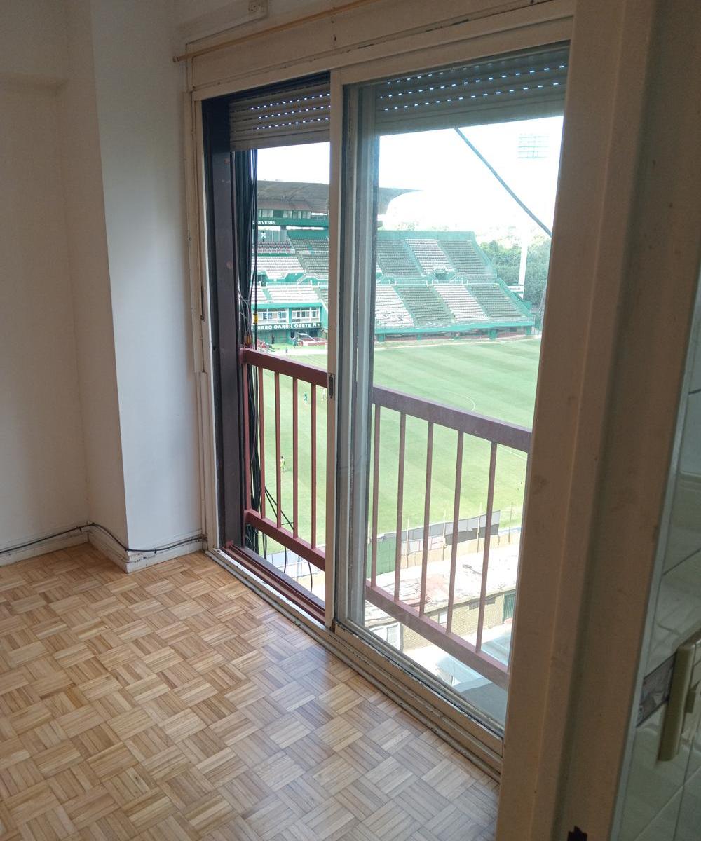 Kitnet de um único ambiente em formato de L. Banheiro amplo com banheira e bidê. Cozinha com espaço para máquina de lavar e geladeira, com armários novos. Possui gás e fogão; vista direta para a Cancha de Ferro.