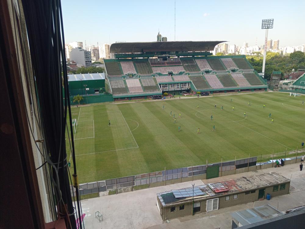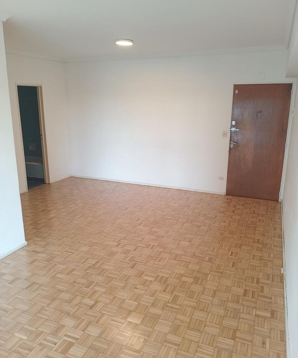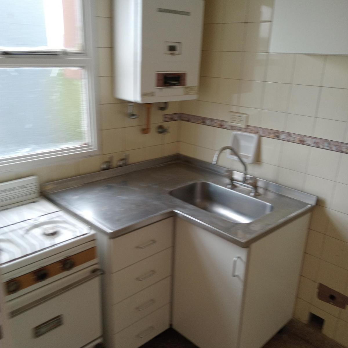 Kitnet de um único ambiente em formato de L. Banheiro amplo com banheira e bidê. Cozinha com espaço para máquina de lavar e geladeira, com armários novos. Possui gás e fogão; vista direta para a Cancha de Ferro.