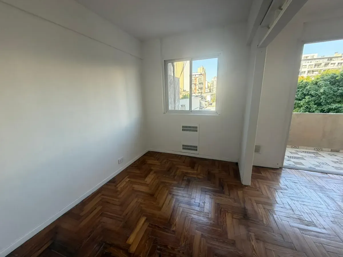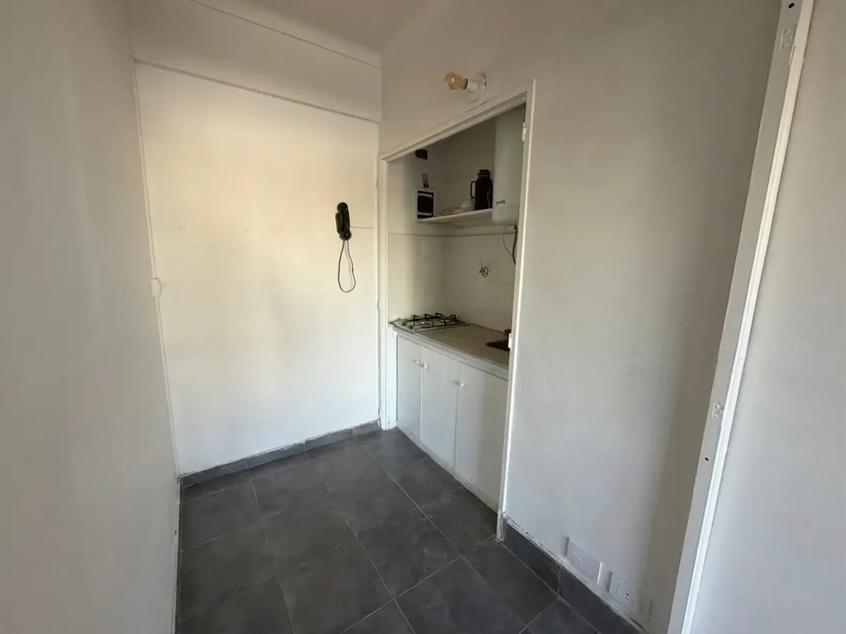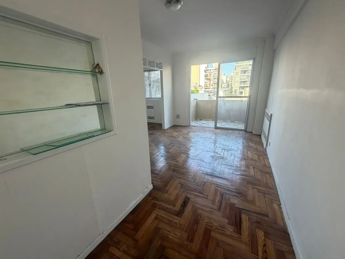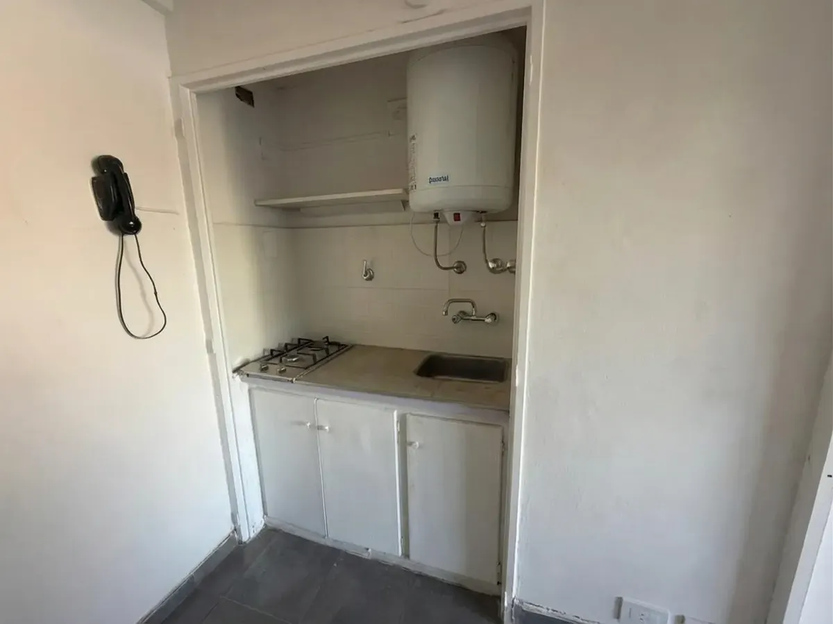Kitnet divisível em Caballito, com 31 m² totais, no 3º andar. Varanda de fundos com vista aberta e orientação com sol direto de manhã. Cozinha semi integrada com fogão a gás de 2 bocas e aquecedor elétrico de água, além de banheiro com ducha. Prédio com 60 anos, torre com 8 andares, 2 blocos e 4 unidades por bloco, com zelador com residência; unidade sem mobília e pronta para entrega imediata.