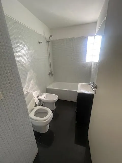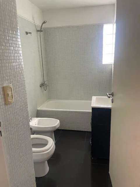 Kitnet de 1 ambiente para alugar em Caballito, com 1 grande janela e acesso à varanda. Fica de fundos (contrafrente), com vista aberta e ambiente silencioso. Cozinha integrada com desayunador, com fogão e aquecedor (anafe) a gás. Banheiro amplo com luz natural. Possui serviços individuais de luz e gás; o condomínio inclui a AYSA. O prédio é moderno, com elevador amplo, terraço com área de churrasco e encarregado com moradia.