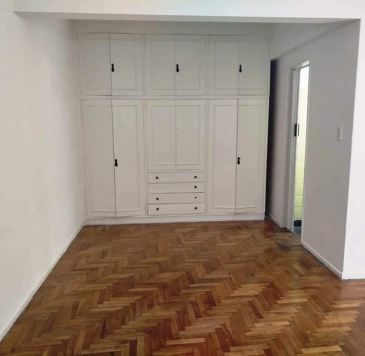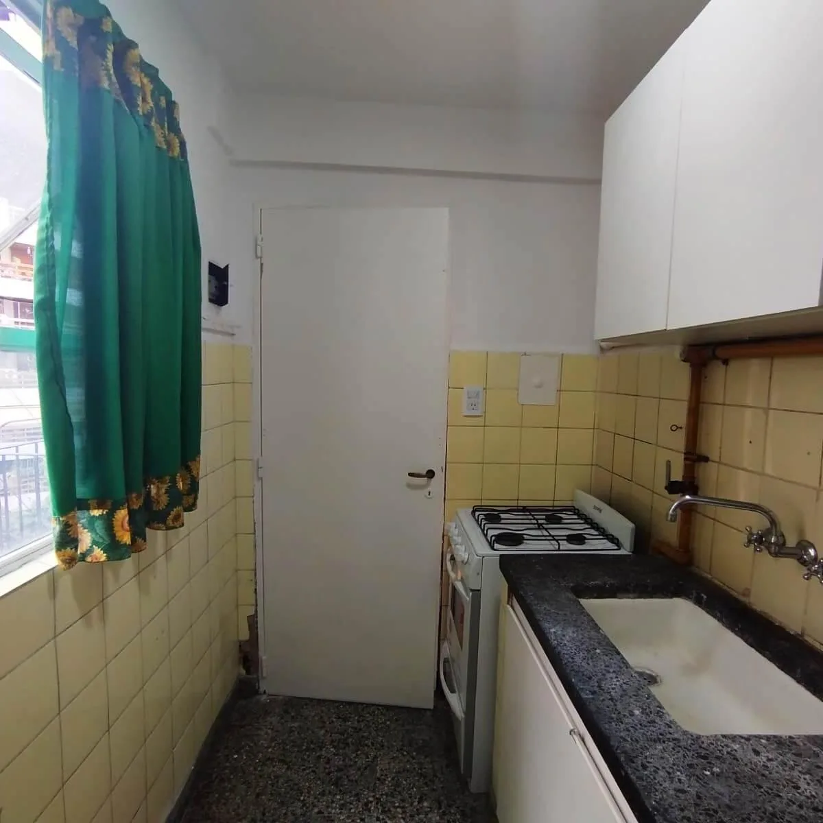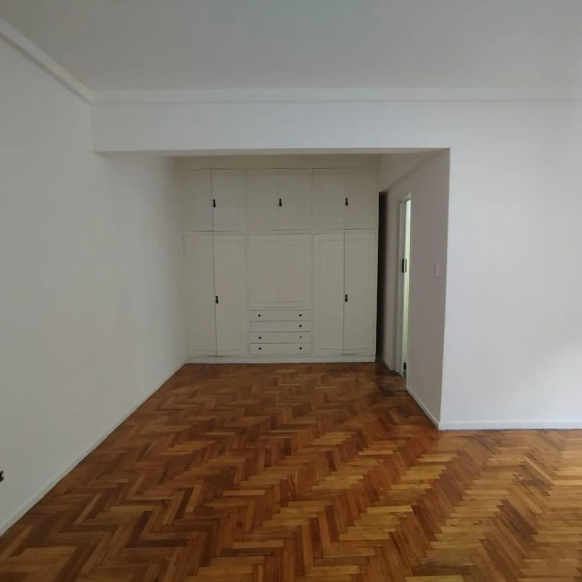 Kitnet de 1 ambiente, de frente para a rua, com 33 m². Possui roupeiro e saída para a varanda. Inclui cozinha e banheiro com ventilação do tipo multifaz. Não são aceitos animais de estimação.