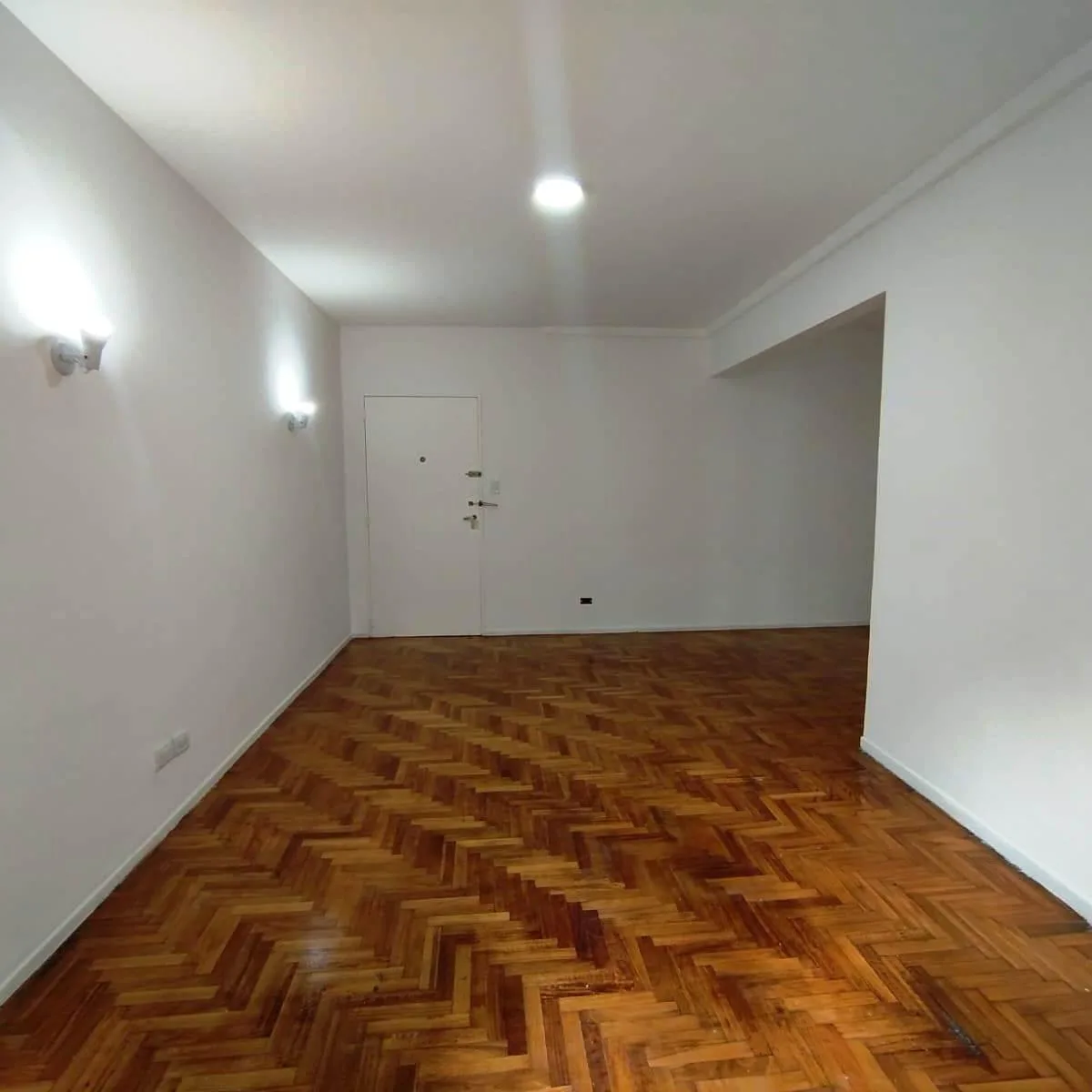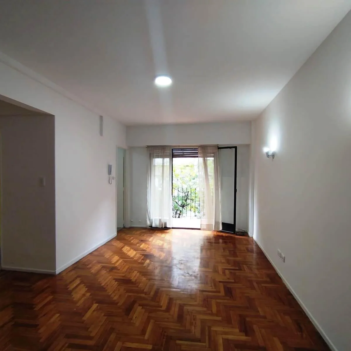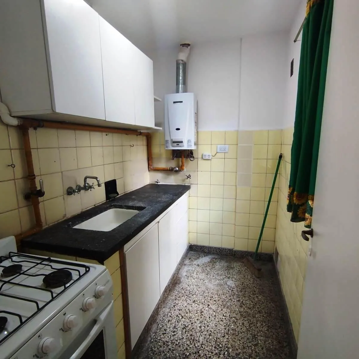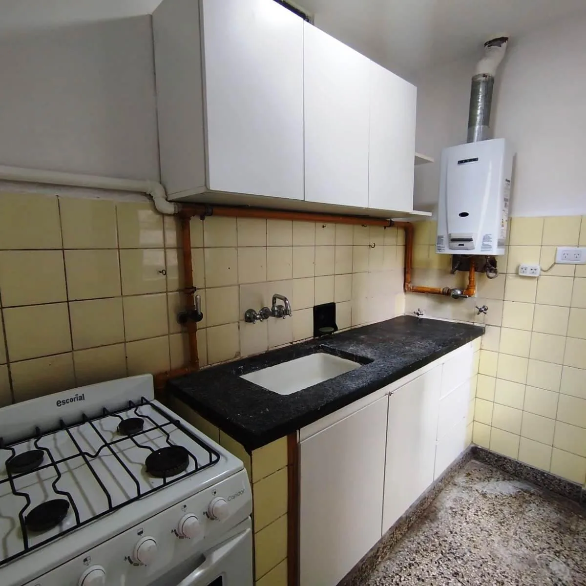 Kitnet de 1 ambiente, de frente para a rua, com 33 m². Possui roupeiro e saída para a varanda. Inclui cozinha e banheiro com ventilação do tipo multifaz. Não são aceitos animais de estimação.