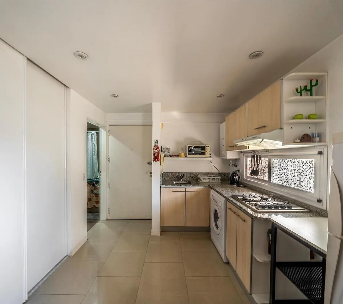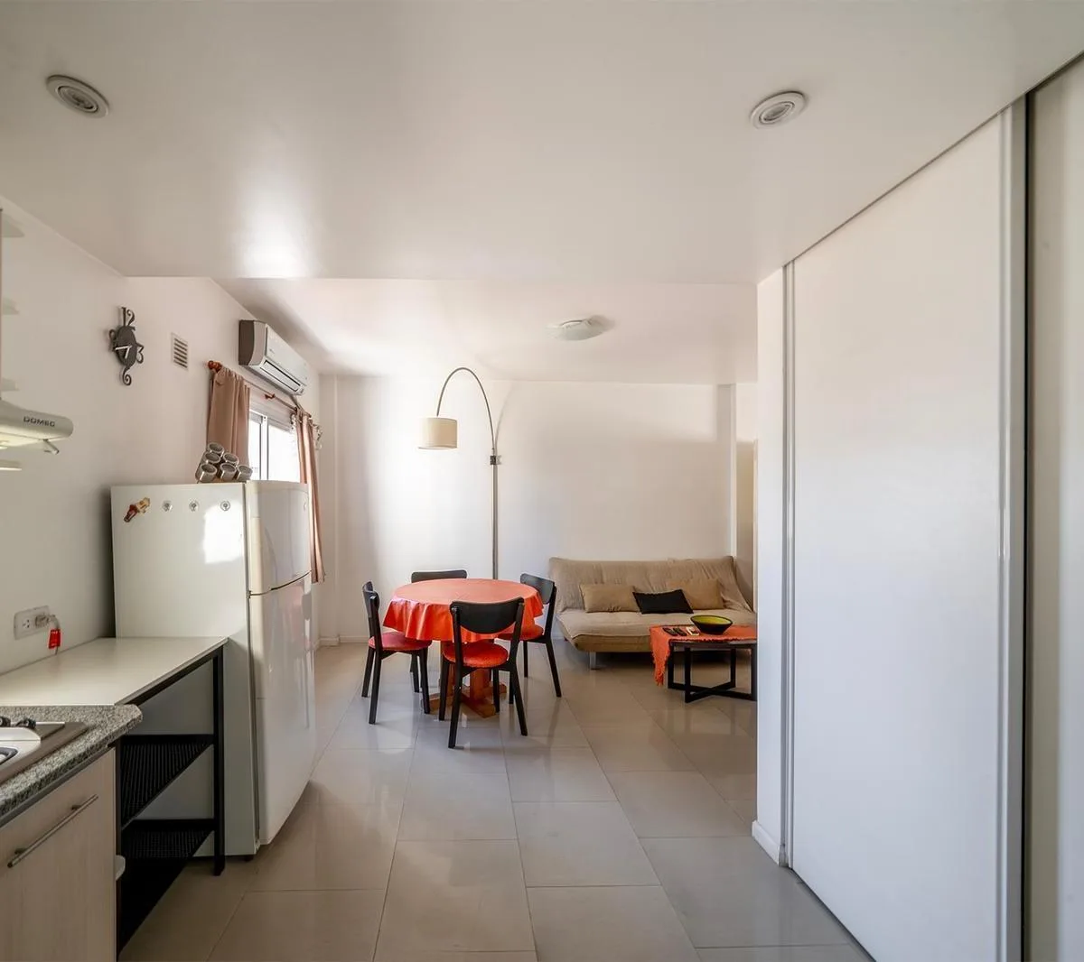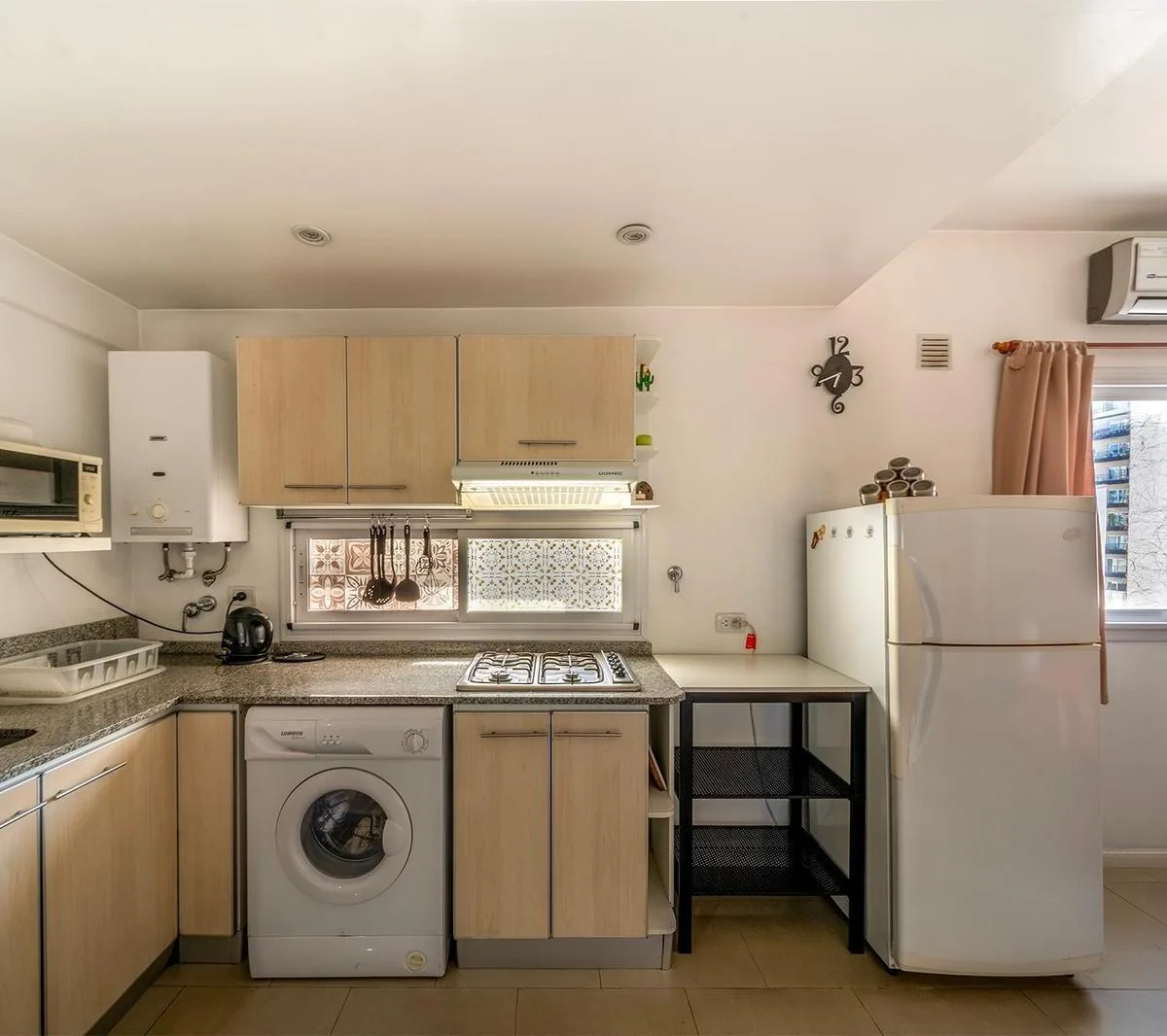 Apartamento de um ambiente (kitnet) mobiliado para aluguel temporário em Caballito, em prédio na esquina, com ventilação cruzada e luz natural. Possui varanda, ar-condicionado, lavadora (lavarropas) e TV LED. Fica na rua Ramos Mejía, a 2 quadras das Av. Díaz Vélez e Av. Ángel Gallardo, e a meia quadra do Parque Centenario; o valor do aluguel inclui condomínio, água, ABL e internet.