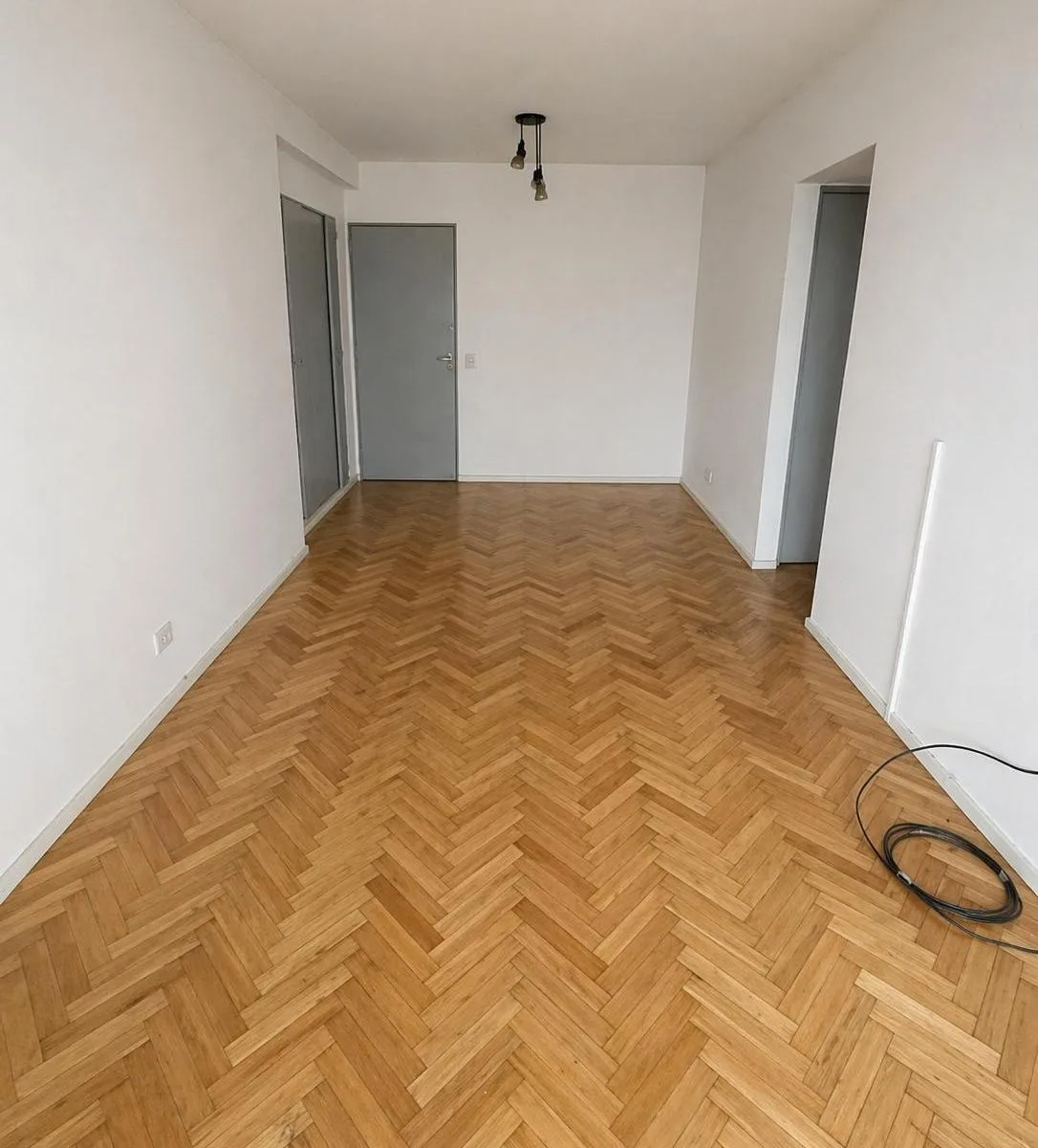 Kitnet (monoambiente) em Caballito, Ambiente com piso de madeira e armário embutido. Cozinha separada com capacidade de armazenamento, área de serviço com lavanderia e varanda; varanda em estilo terraço. Contrato de 24 meses com reajuste trimestral pelo IPC; permitido para 1 pessoa e aceita gato.