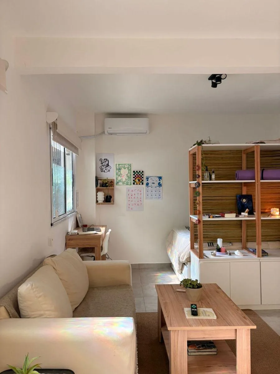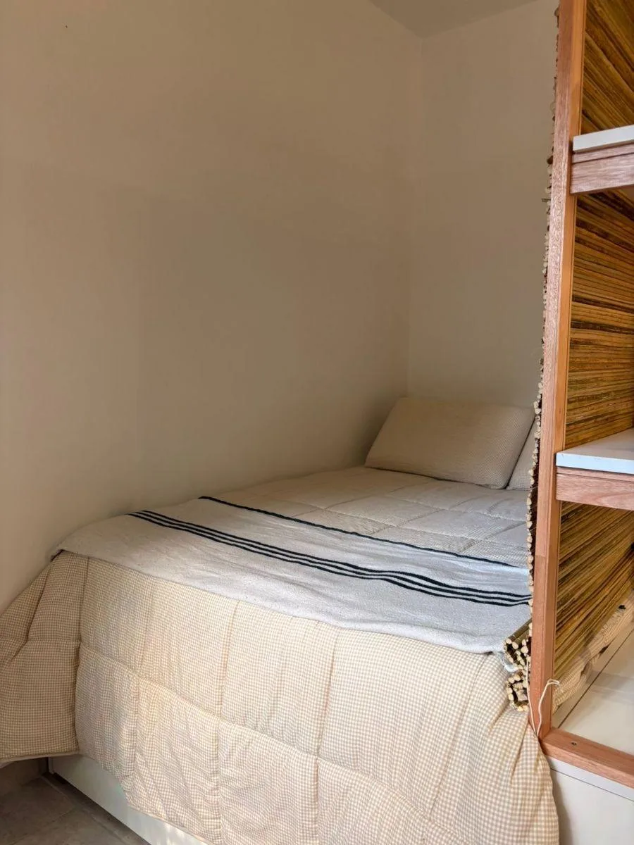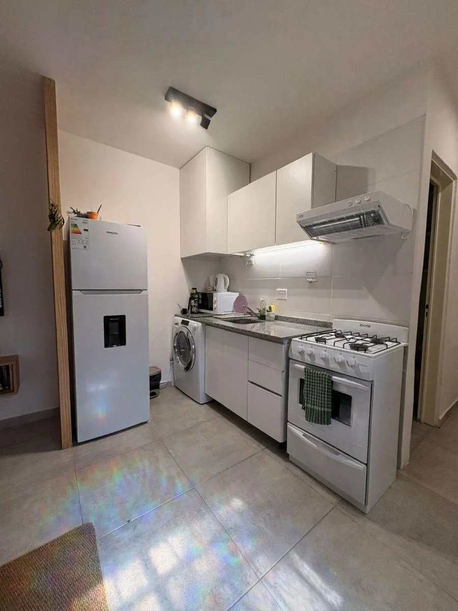 Kitnet mobiliada para aluguel, em boas condições. Disponível a partir de 11/05. Possui área de lavanderia com máquina de lavar (lavarropas), cama de duas praças e cozinha a gás.