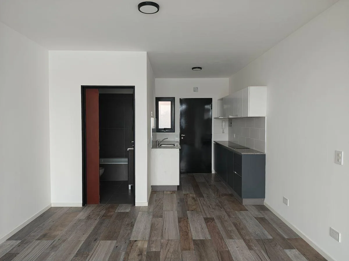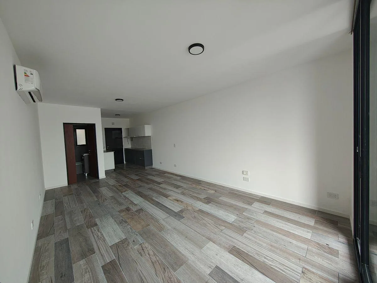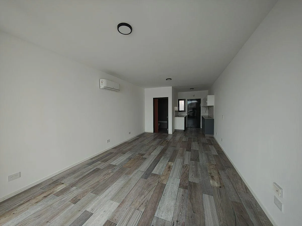 Apartamento tipo kitnet com área não informada, novo (a estrenar), com varanda ampla de fundos. Unidade reformada no banheiro, com pintura nova e luminárias instaladas. Possui ar-condicionado frio e quente; o prédio tem cerca de 4 anos. O condomínio inclui salão de festas com área de churrasco, solário e minipiscina. Há opção de vaga de garagem por valor adicional; contrato de 2 anos com atualização trimestral pelo IPC.