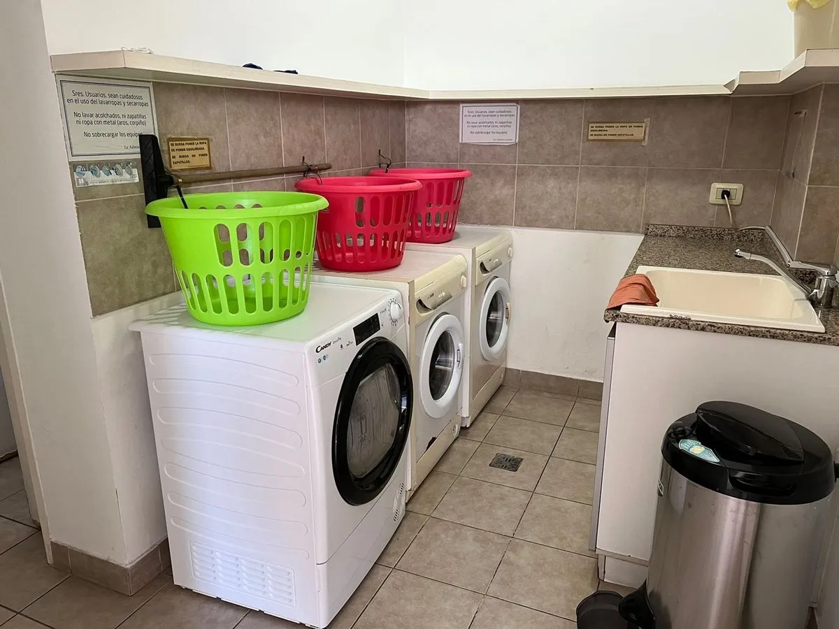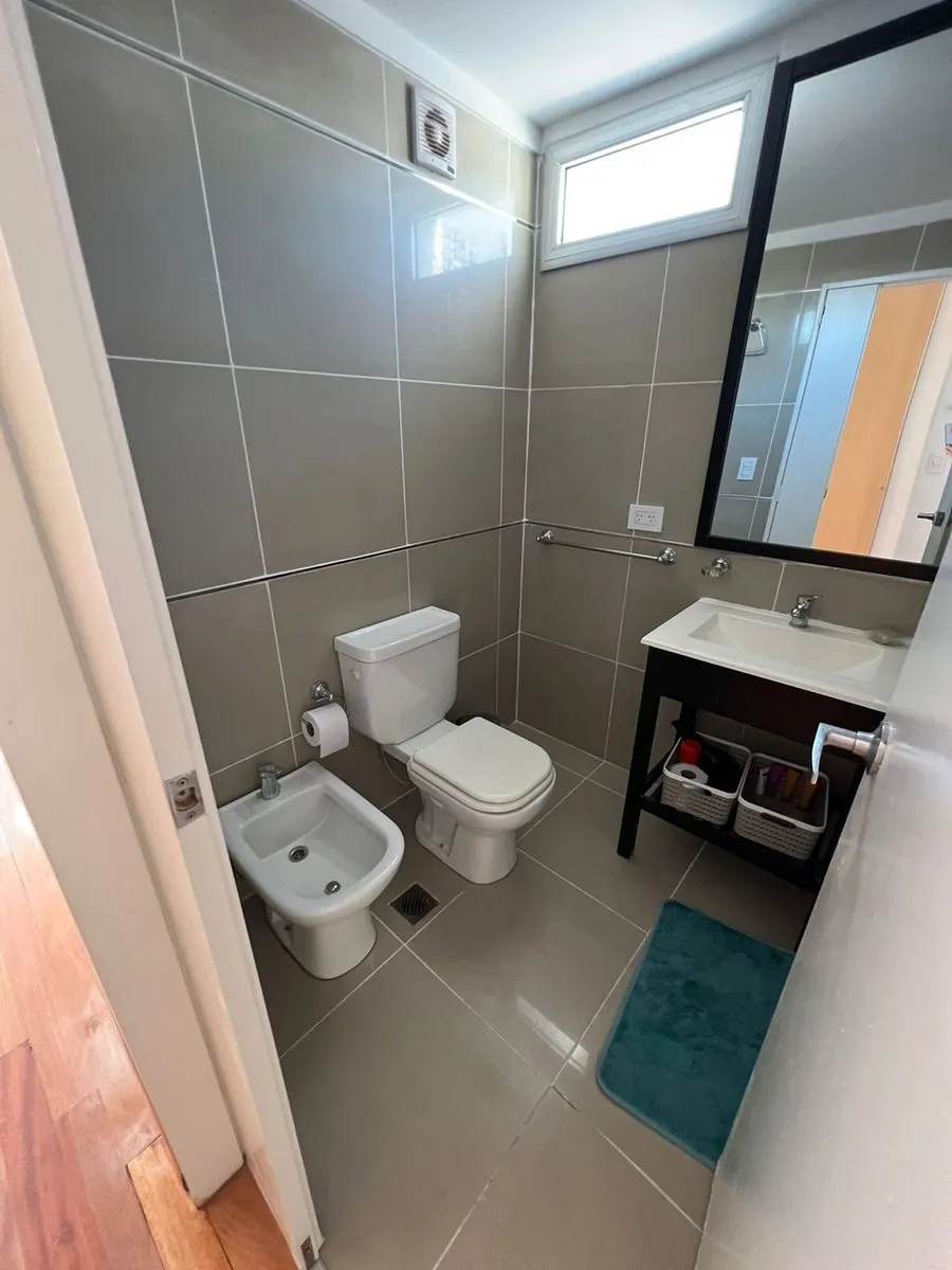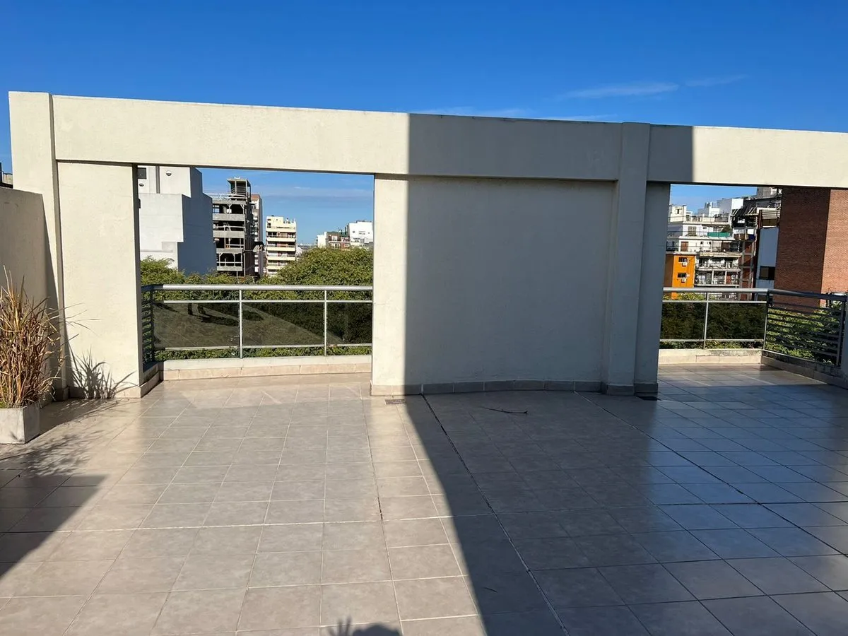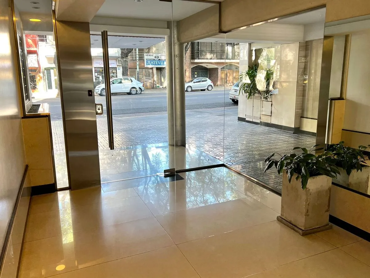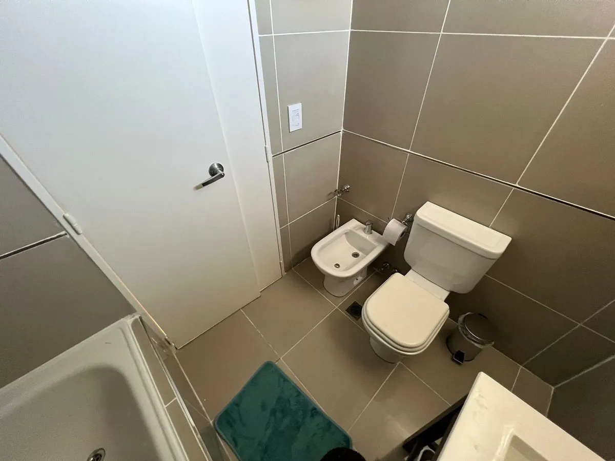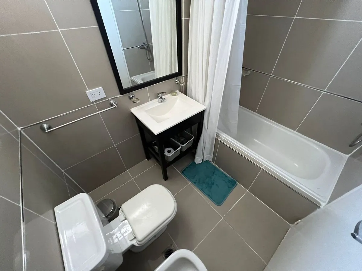 Kitnet mobiliada em Caballito, no 4º andar de um prédio com 7 andares, com orientação norte e vista de fundos (contrafrente). A unidade é elétrica, com ar-condicionado frio e quente instalado, pisos de madeira e porcelanato, banheiro com banheira e luz natural, cozinha integrada com barra, armários e geladeira pequena; há fogão elétrico com forno e 4 bocas (sem gás), além de 2 armários embutidos. O prédio dispõe de piscina, lavanderia e área de churrasco de uso comum; a unidade tem varanda (3 x