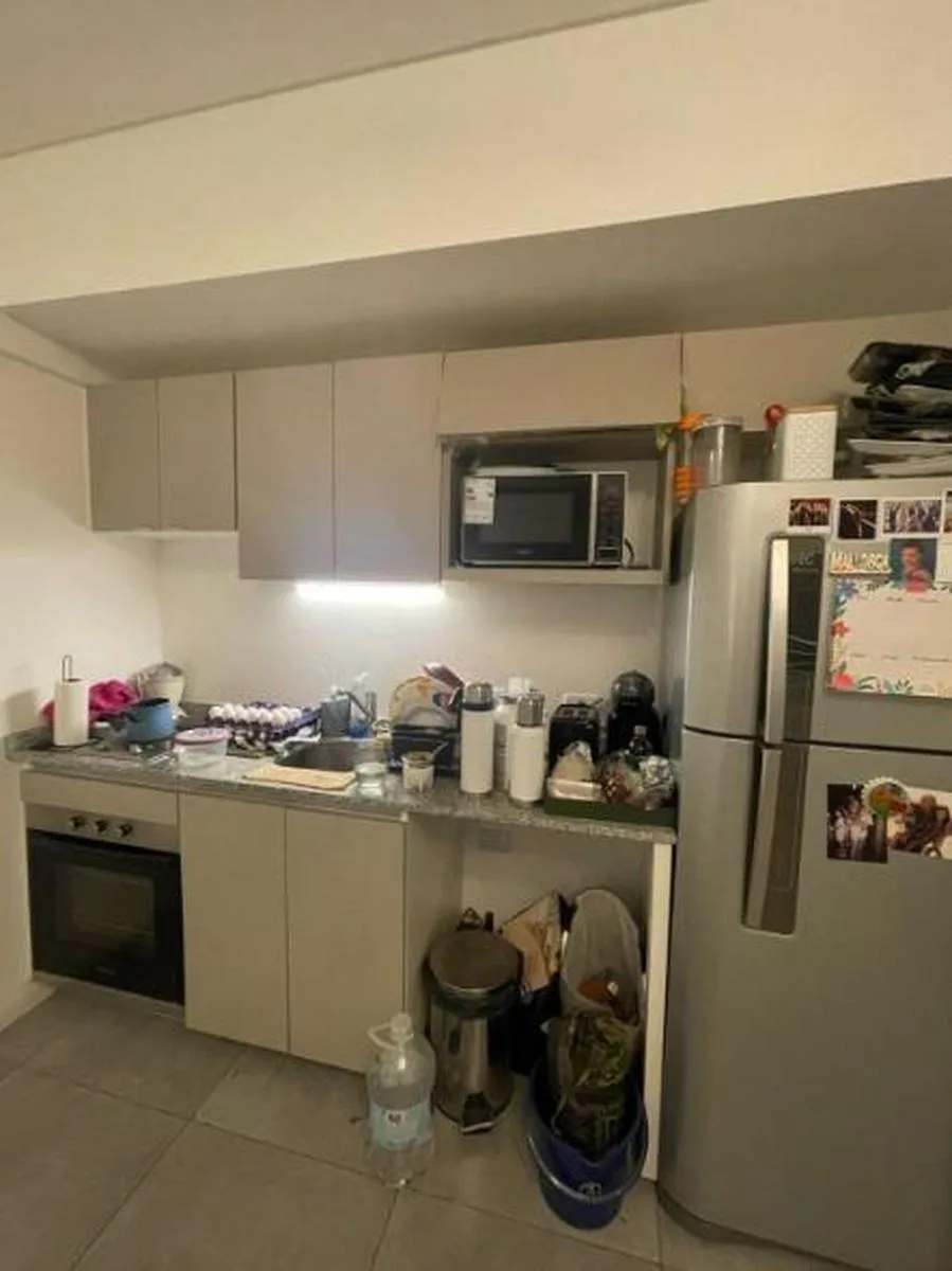 Kitnet para aluguel com 1 banheiro, cerca de 37 m² no total, sendo 32 m² cobertos. Fica em andar alto com elevador, de fundos (disposição contra frente) e orientação ao nordeste. Cozinha com móveis planejados na parte superior e inferior, espaço principal com nichos de armazenamento embutidos e banheiro completo. Condomínio de cerca de $180.000 em 09/04/2026.